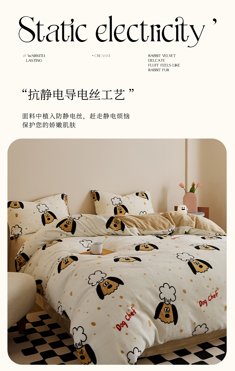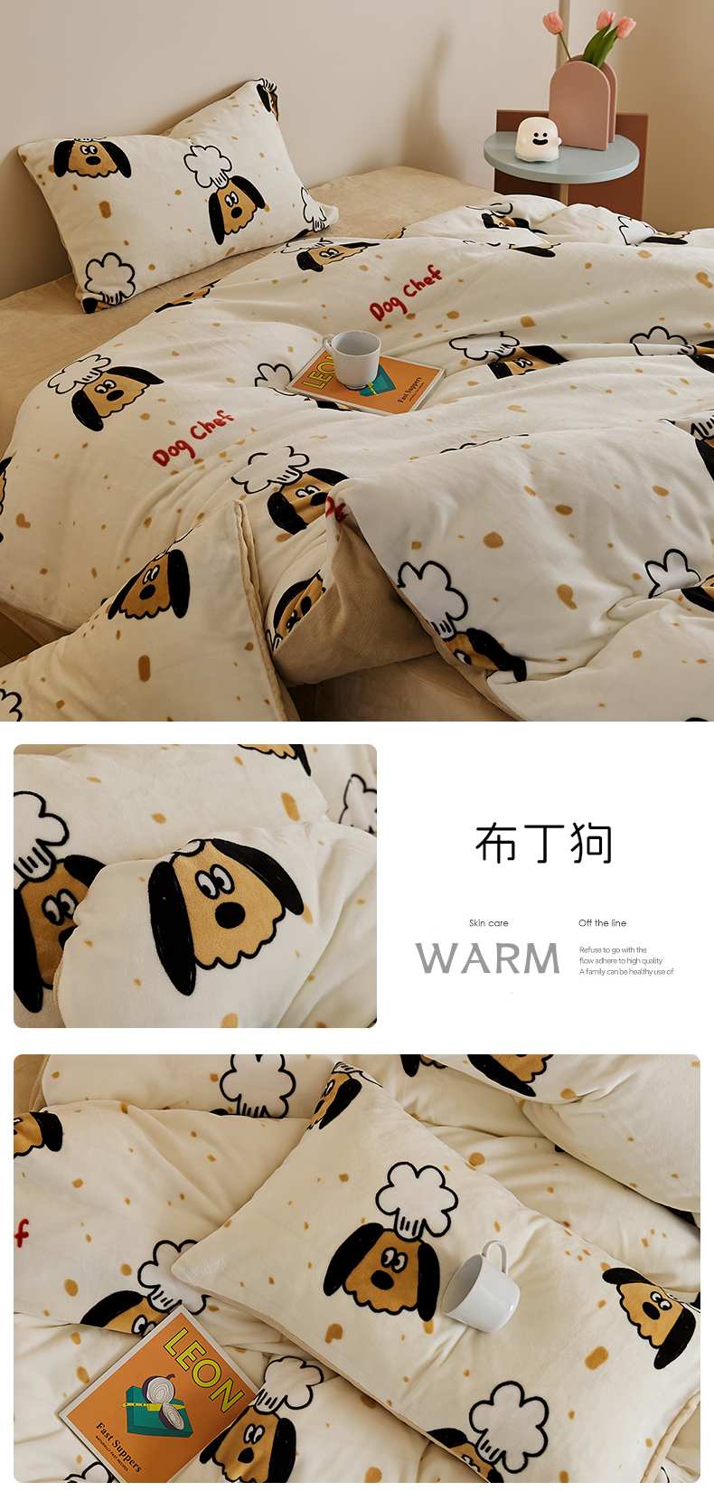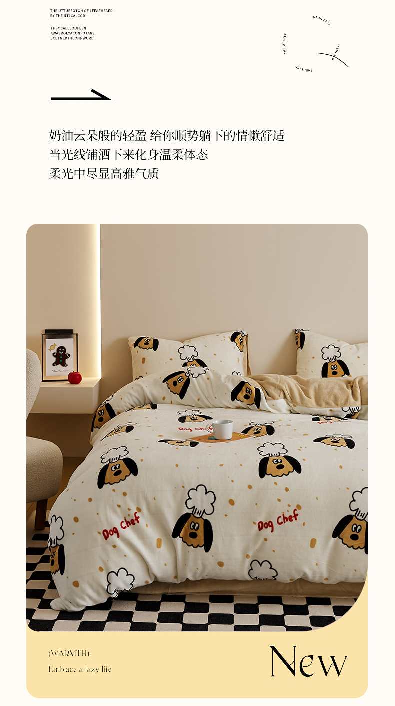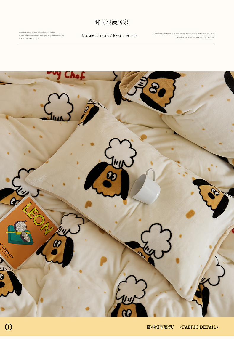 当前位置: 91家纺网 > 商品网购 > 床品套件 > 四件套 > 牛奶绒四件套 > 时光里 2024新款230克牛奶绒印花四件套 布丁狗