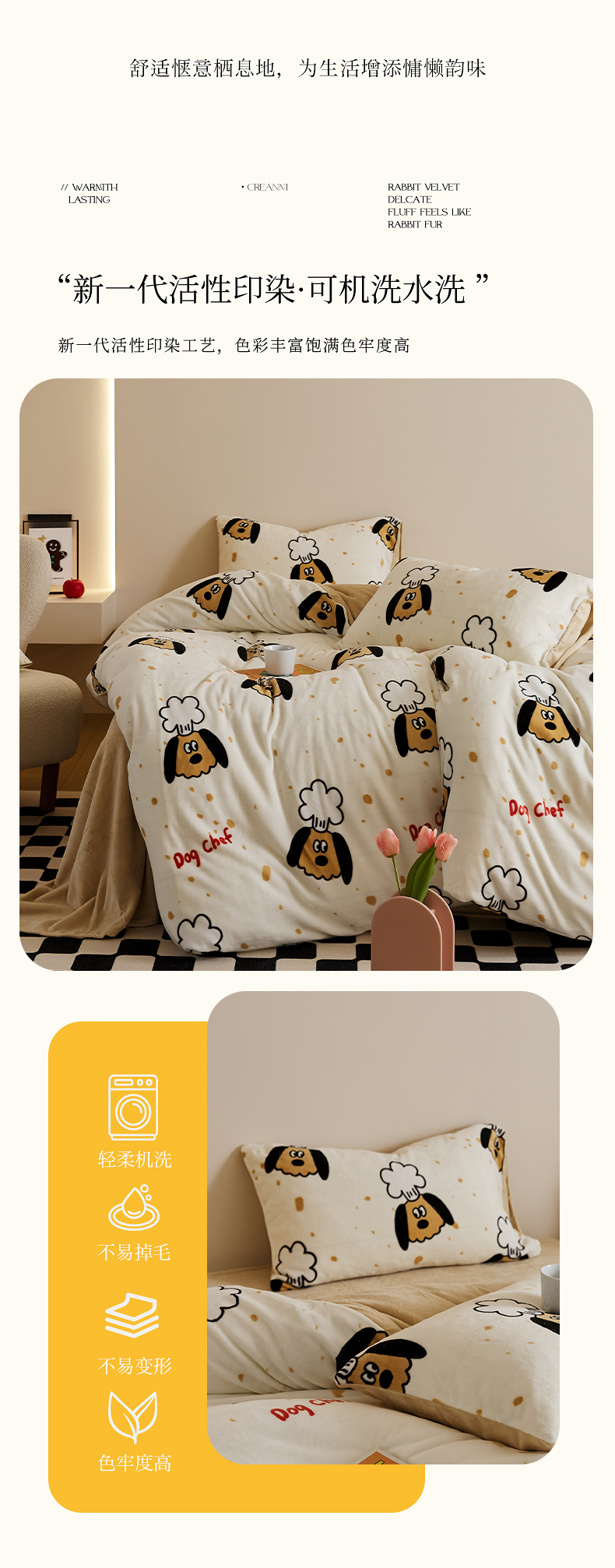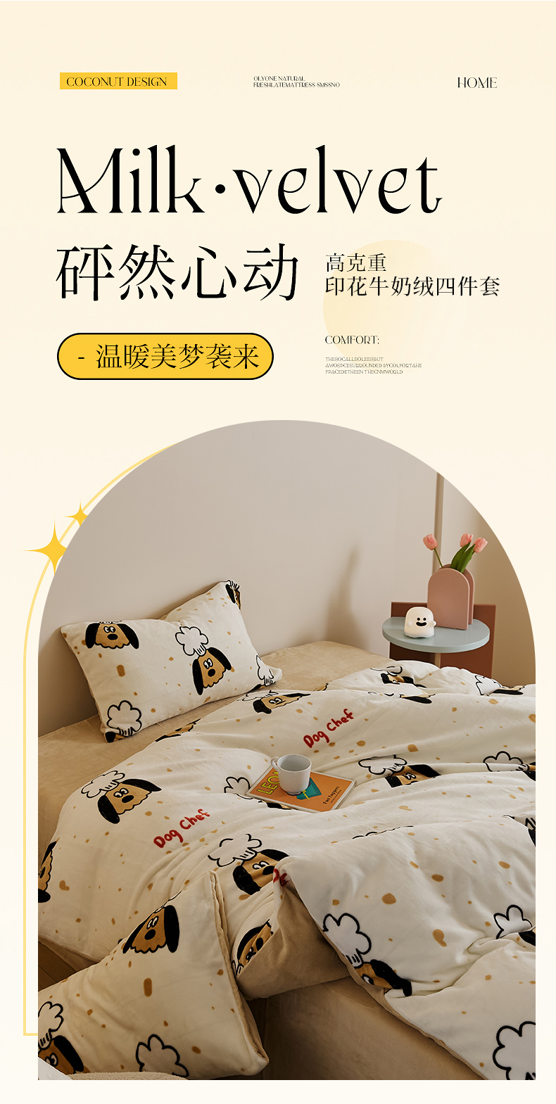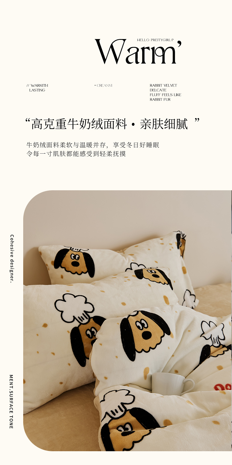 当前位置: 91家纺网 > 商品网购 > 床品套件 > 四件套 > 牛奶绒四件套 > 时光里 2024新款230克牛奶绒印花四件套 布丁狗