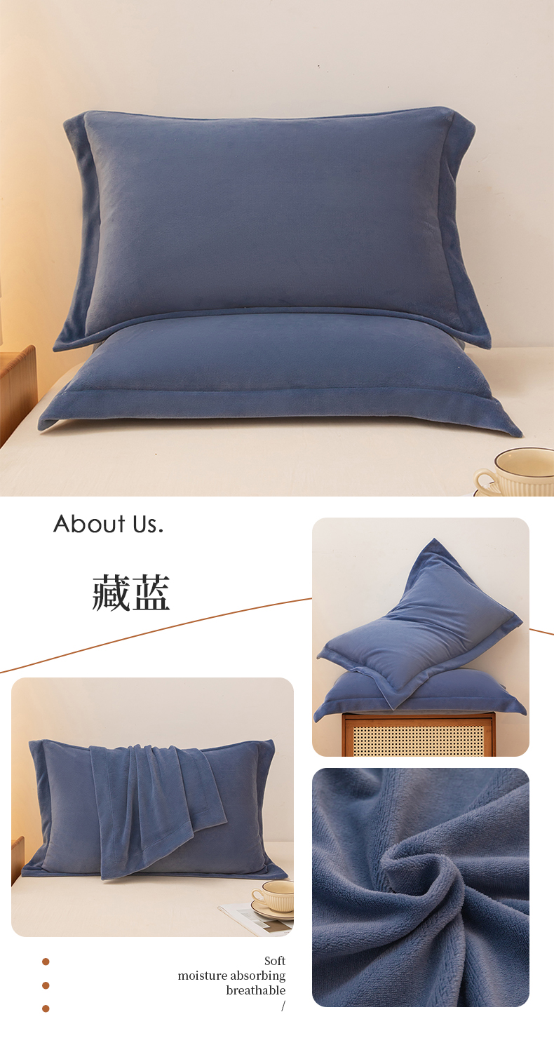 商品名称:金喜 2024秋冬爆款枕套高克重细密牛奶绒宽边枕套拉链款枕套秋冬枕套 藏蓝