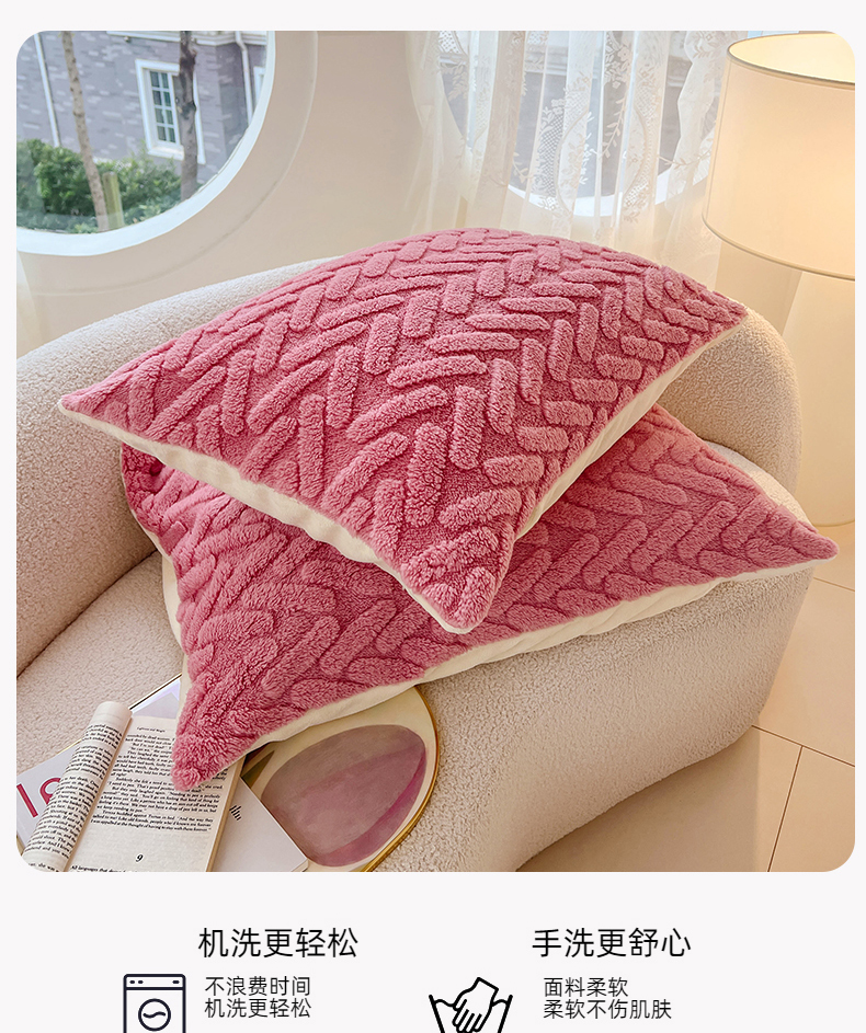 锦润家纺 2024新款双面塔芙绒枕套一对 塔芙绒-豆沙