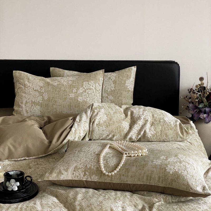 (总)赫帛 2025新款60支全棉色织提花磨毛四件套-腰果花,腰果花-灰咖色,腰果花-绿米色,腰果花-奶咖色