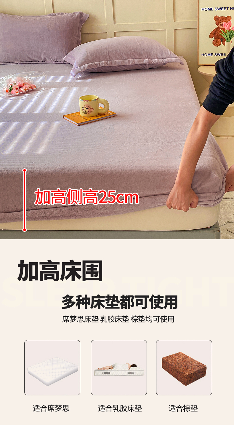 恬澳家纺 2025 200g牛奶绒床笠外贸跨境电商亚马逊速卖通床笠三件套欧美尺寸多多跨境平台TEMU SHEIN 暖阳-芋泥紫