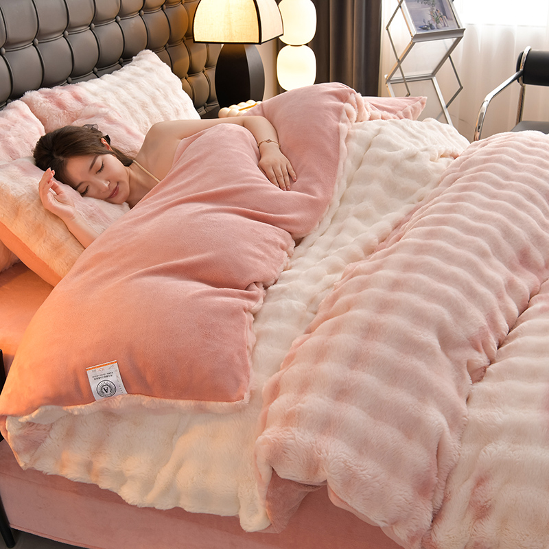 商品名称:爱上家居 2024新款AB版兔兔绒牛奶绒四件套 粉色