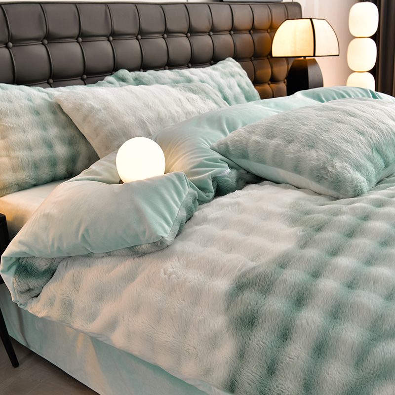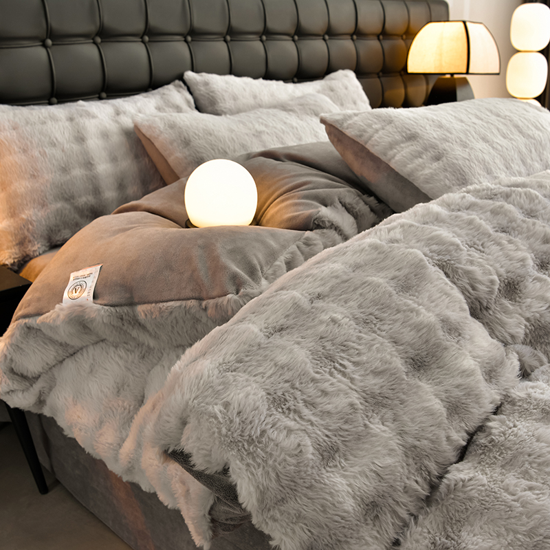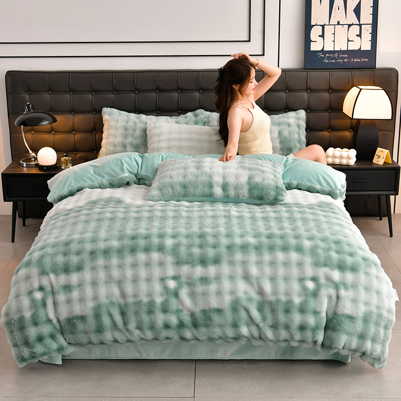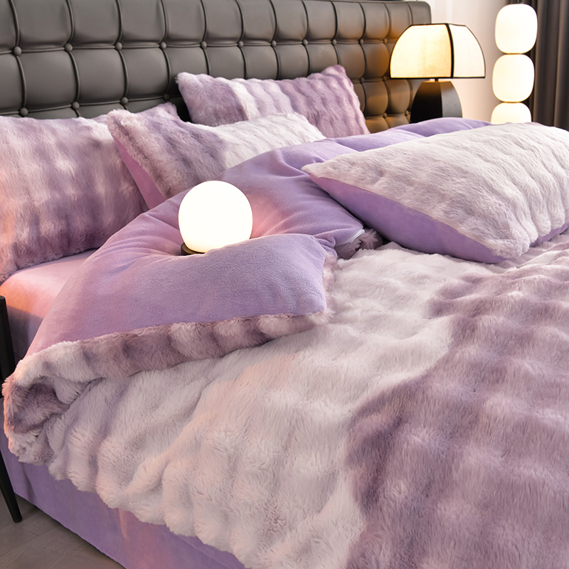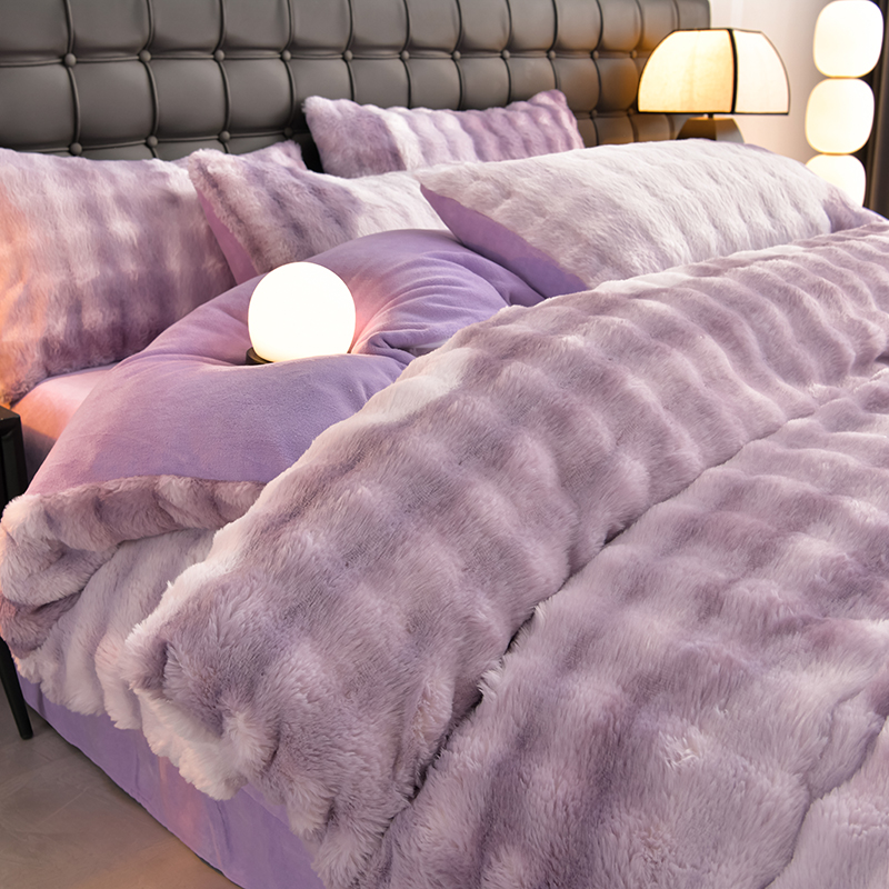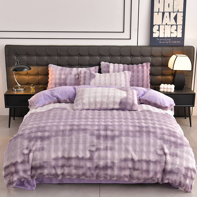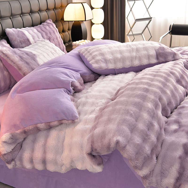 (总)爱上家居 2024新款AB版兔兔绒牛奶绒四件套,粉色,灰色,绿色,驼色,紫色