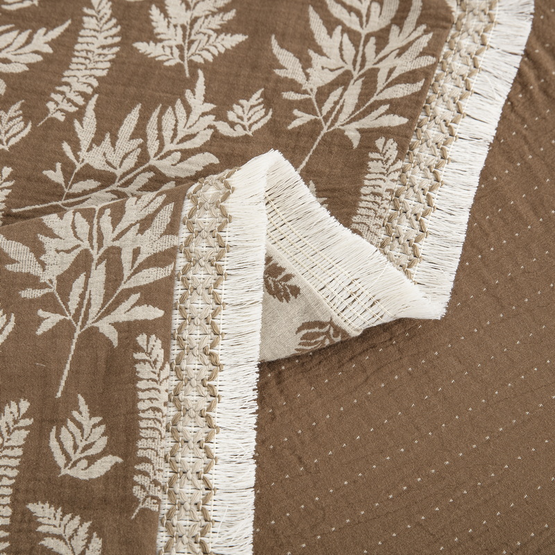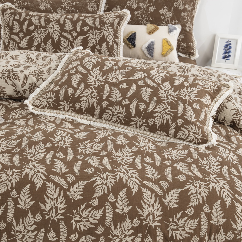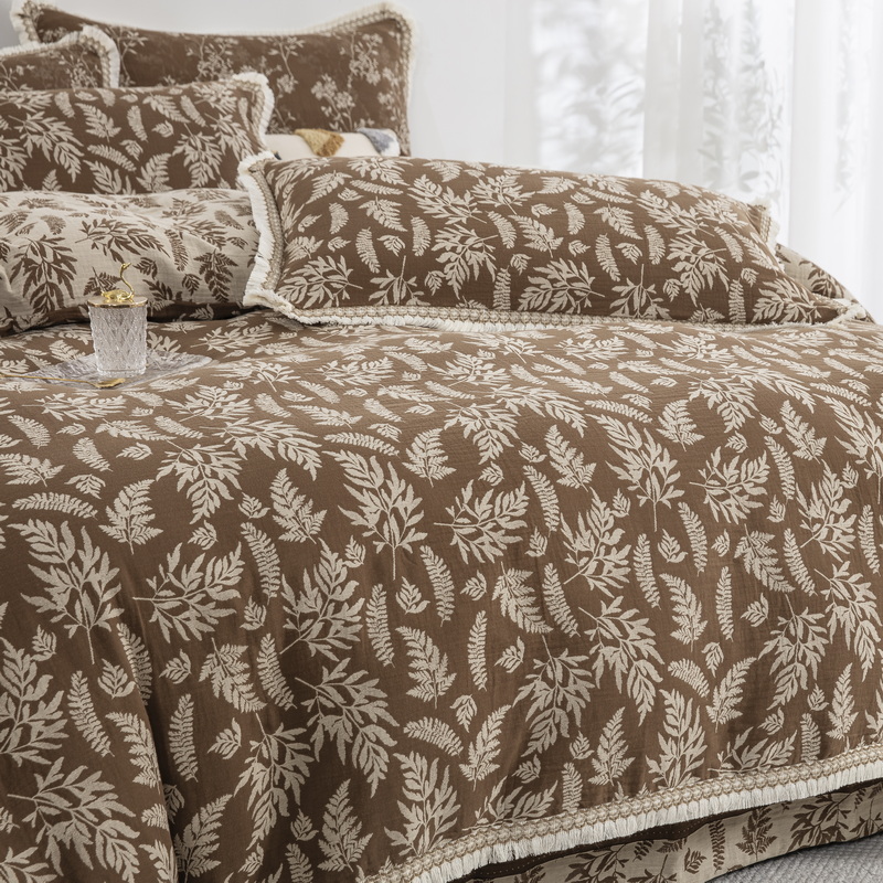 商品名称:鲁爱 2025新款全棉色织双层纱布流苏款四件套 扶苏-浅咖