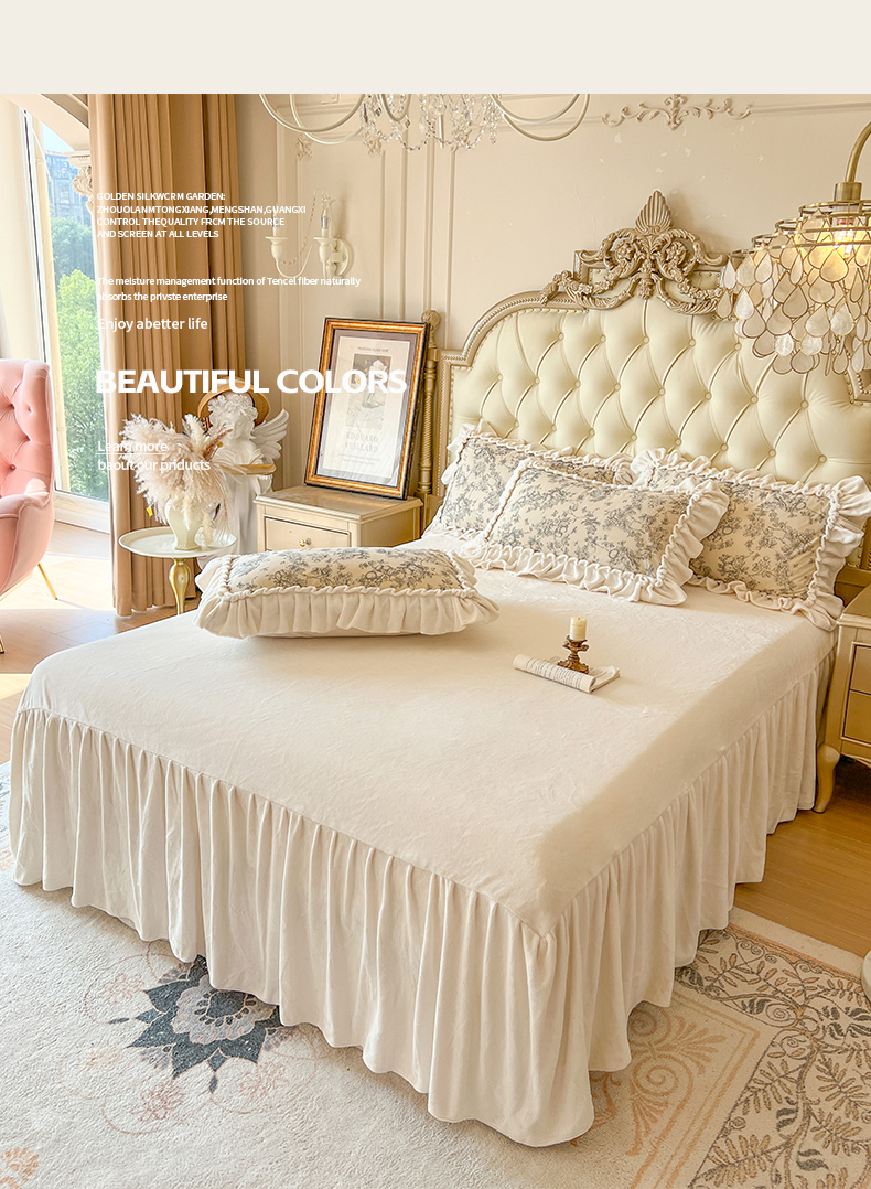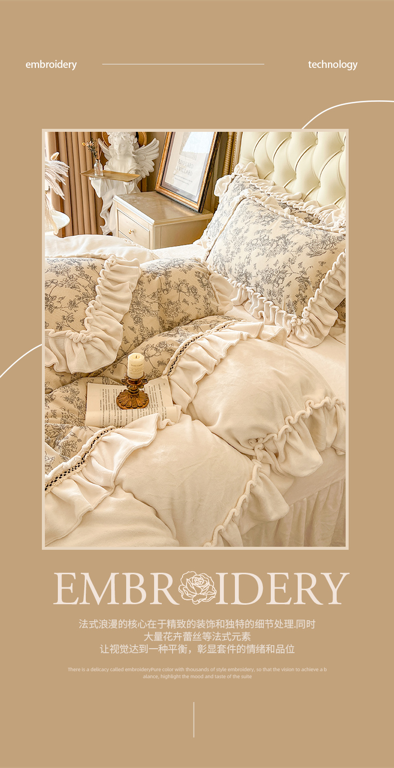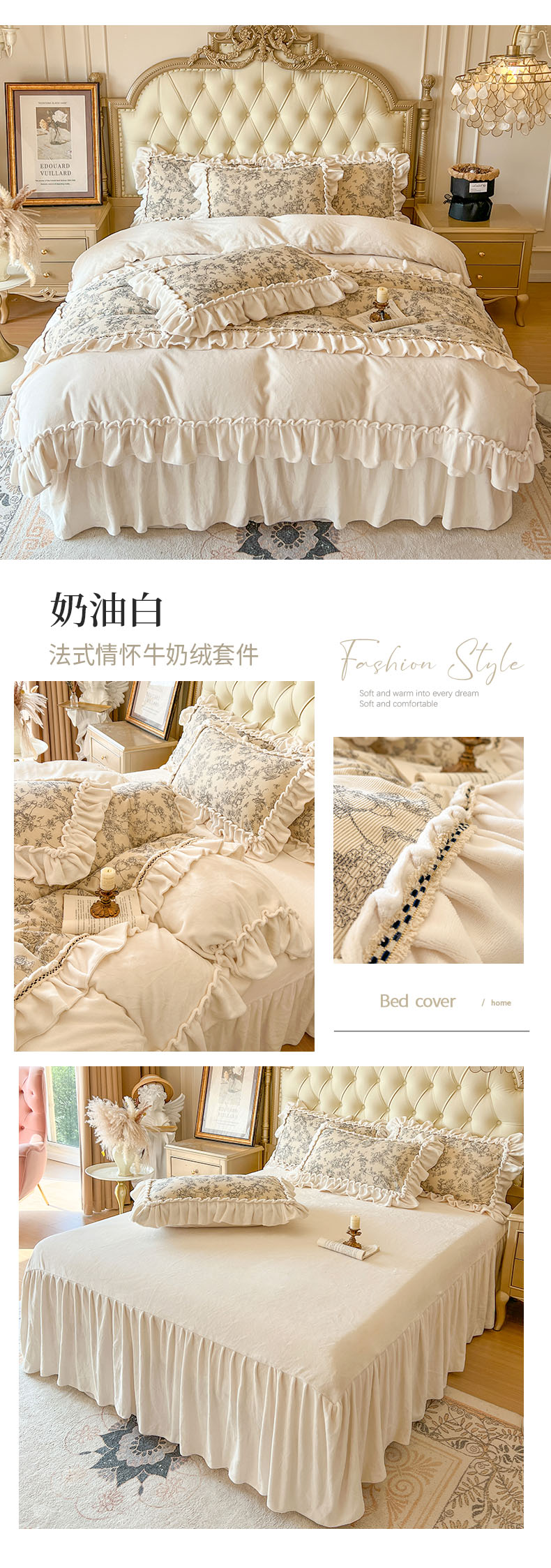 当前位置: 91家纺网 > 商品网购 > 床品套件 > 四件套 > 牛奶绒四件套 > 亲亲公主 2025新款高克重牛奶绒花边四件套-法式情怀 奶油白