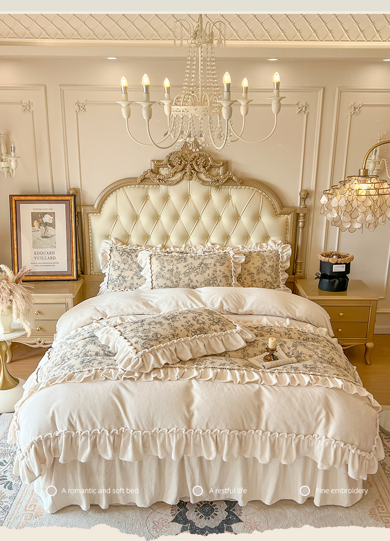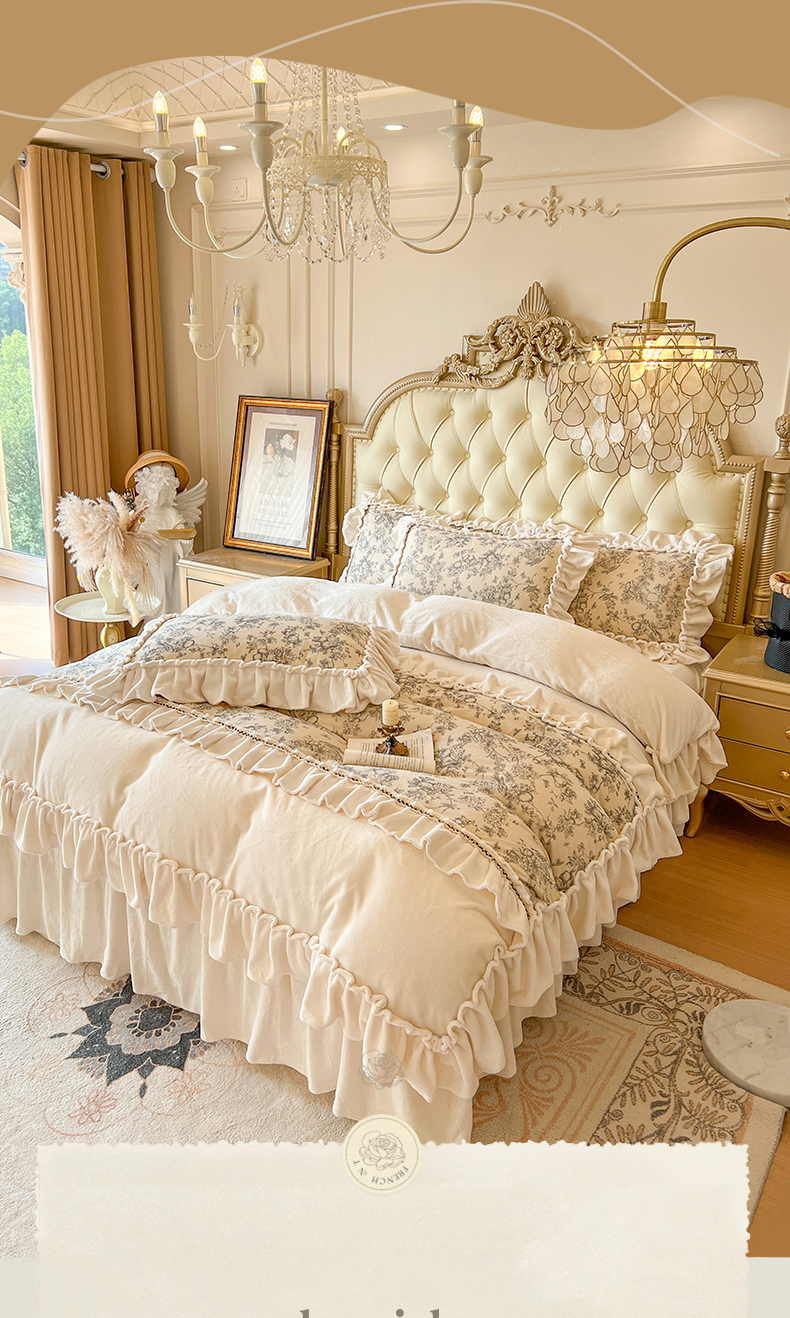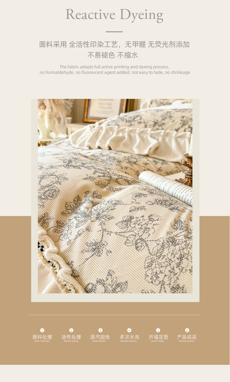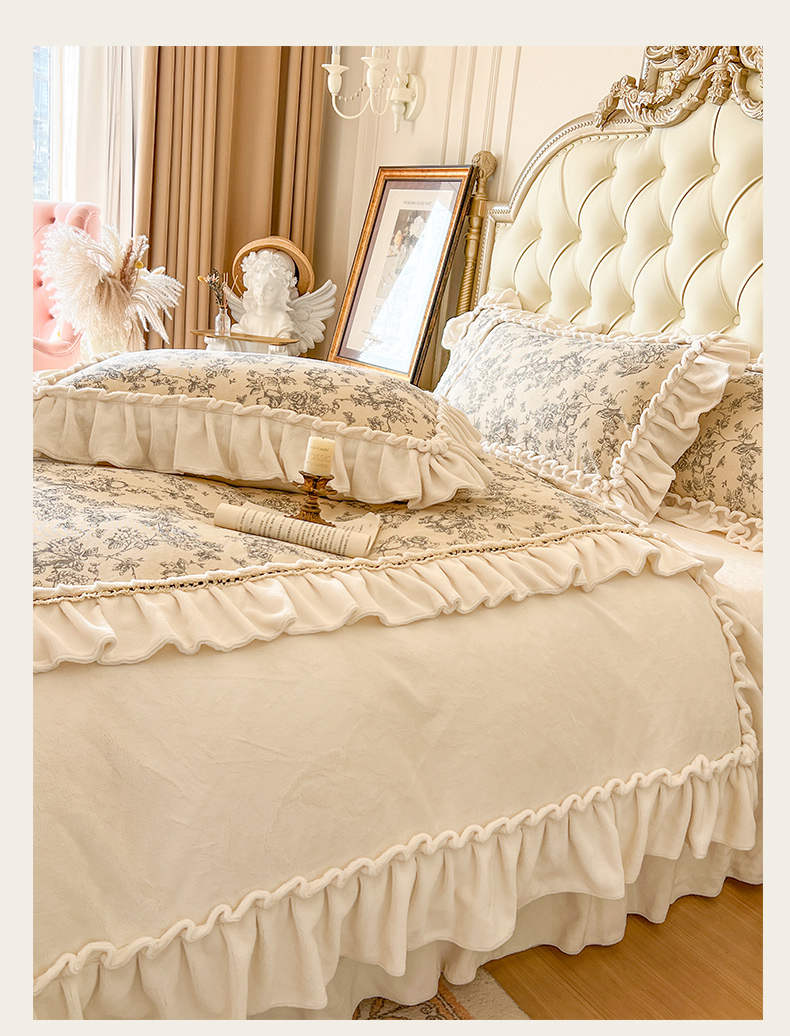 当前位置: 91家纺网 > 商品网购 > 床品套件 > 四件套 > 牛奶绒四件套 > 亲亲公主 2025新款高克重牛奶绒花边四件套-法式情怀 奶油白