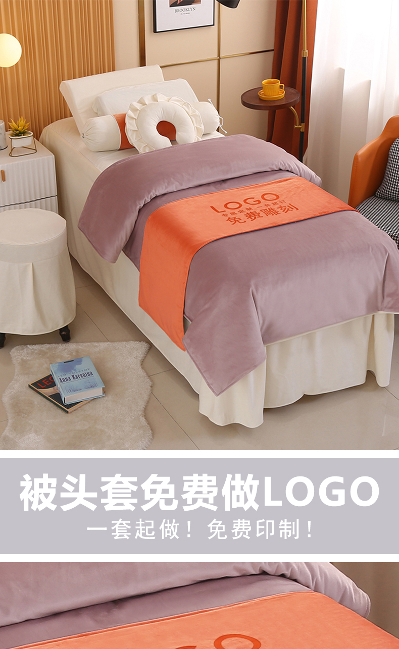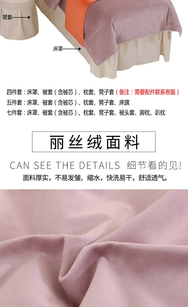 琪宝阁 2024新款立丝绒美 容床罩套件-欧若拉 豆沙