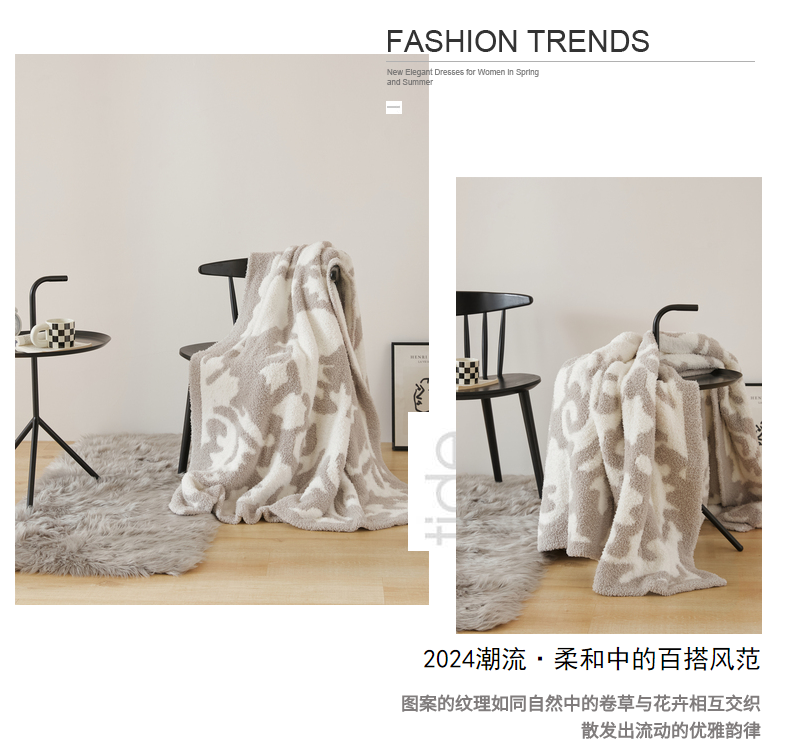 (总)暖绵绵家纺 2025新款针织盖毯--弗罗瑟,弗罗瑟-驼色,弗罗瑟-银灰