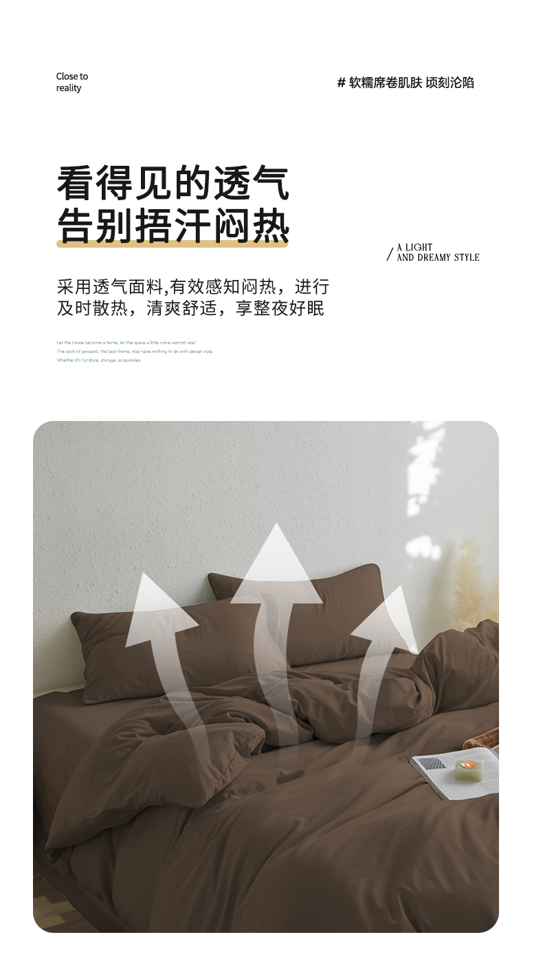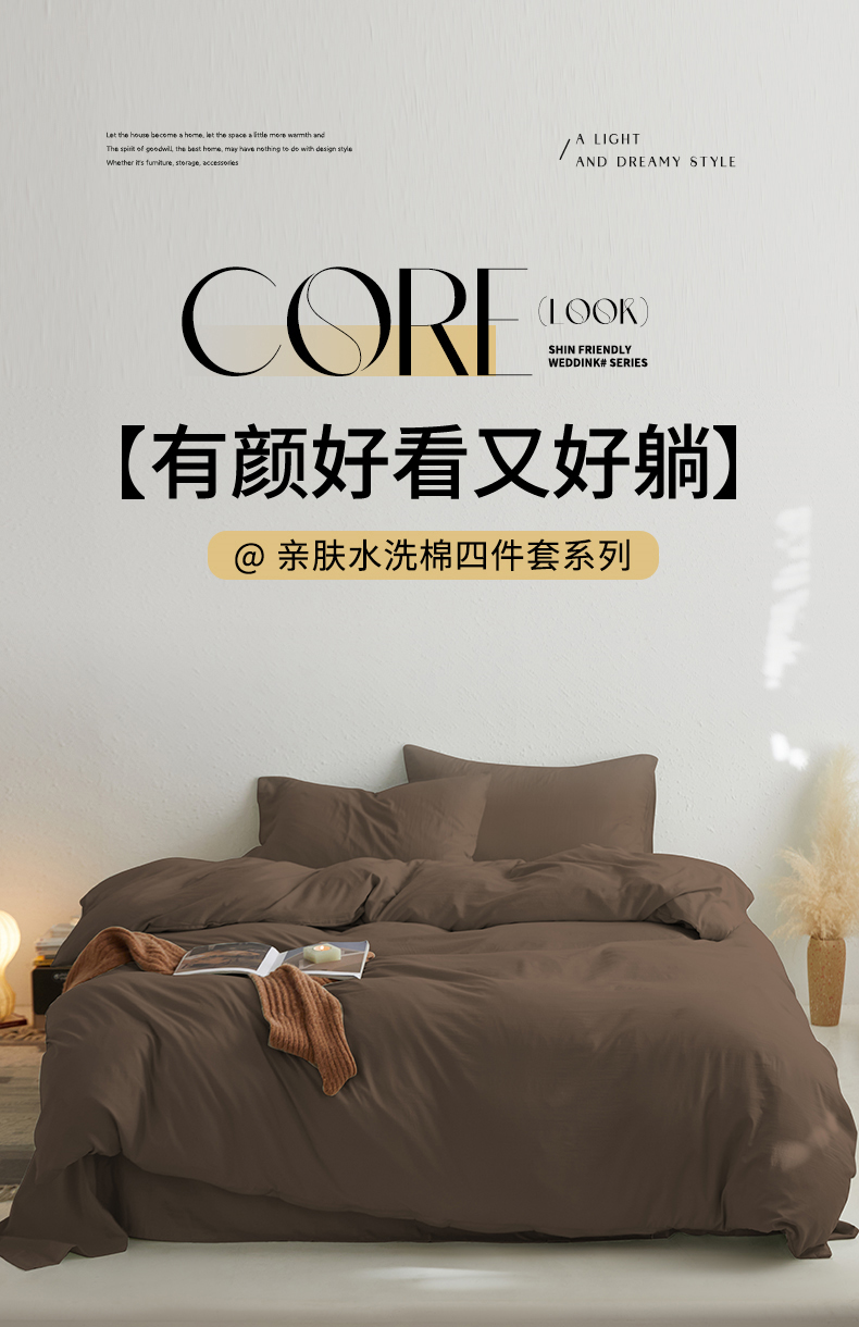 当前位置: 91家纺网 > 商品网购 > 床品套件 > 四件套 > 水洗棉四件套 > 沃朴家居 2024新款亲肤水洗棉四件套禾风咖
