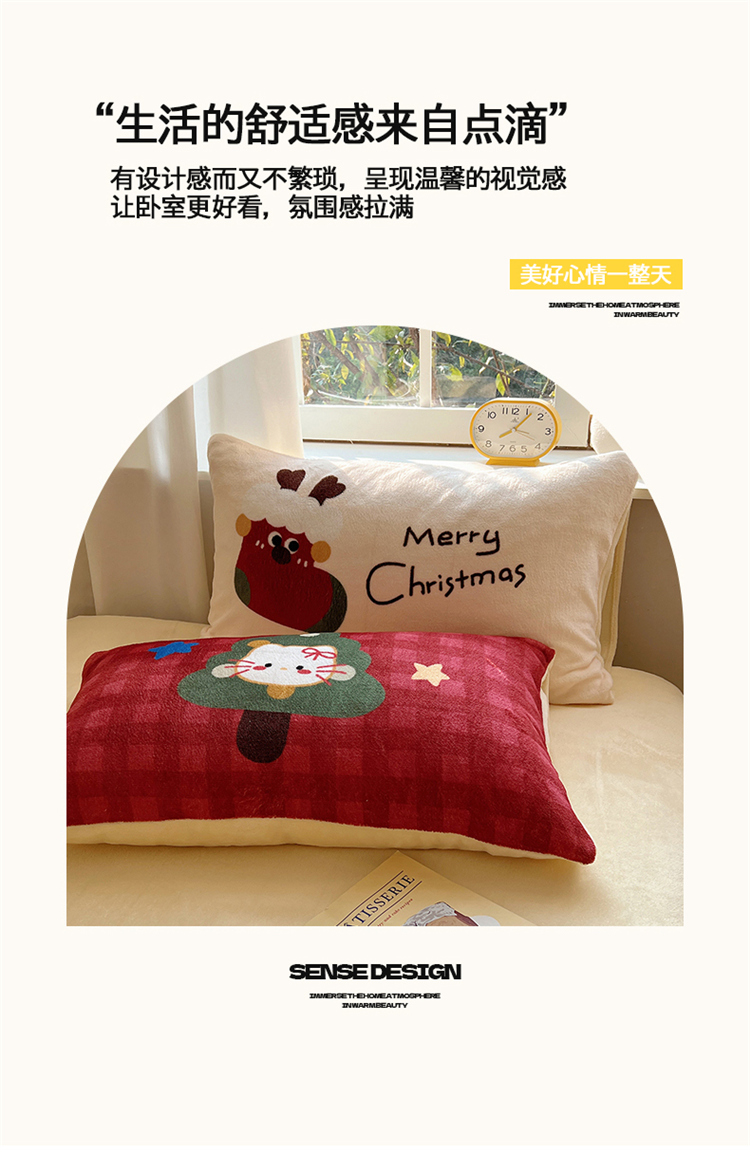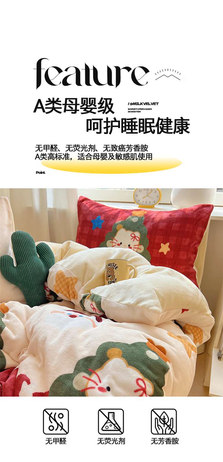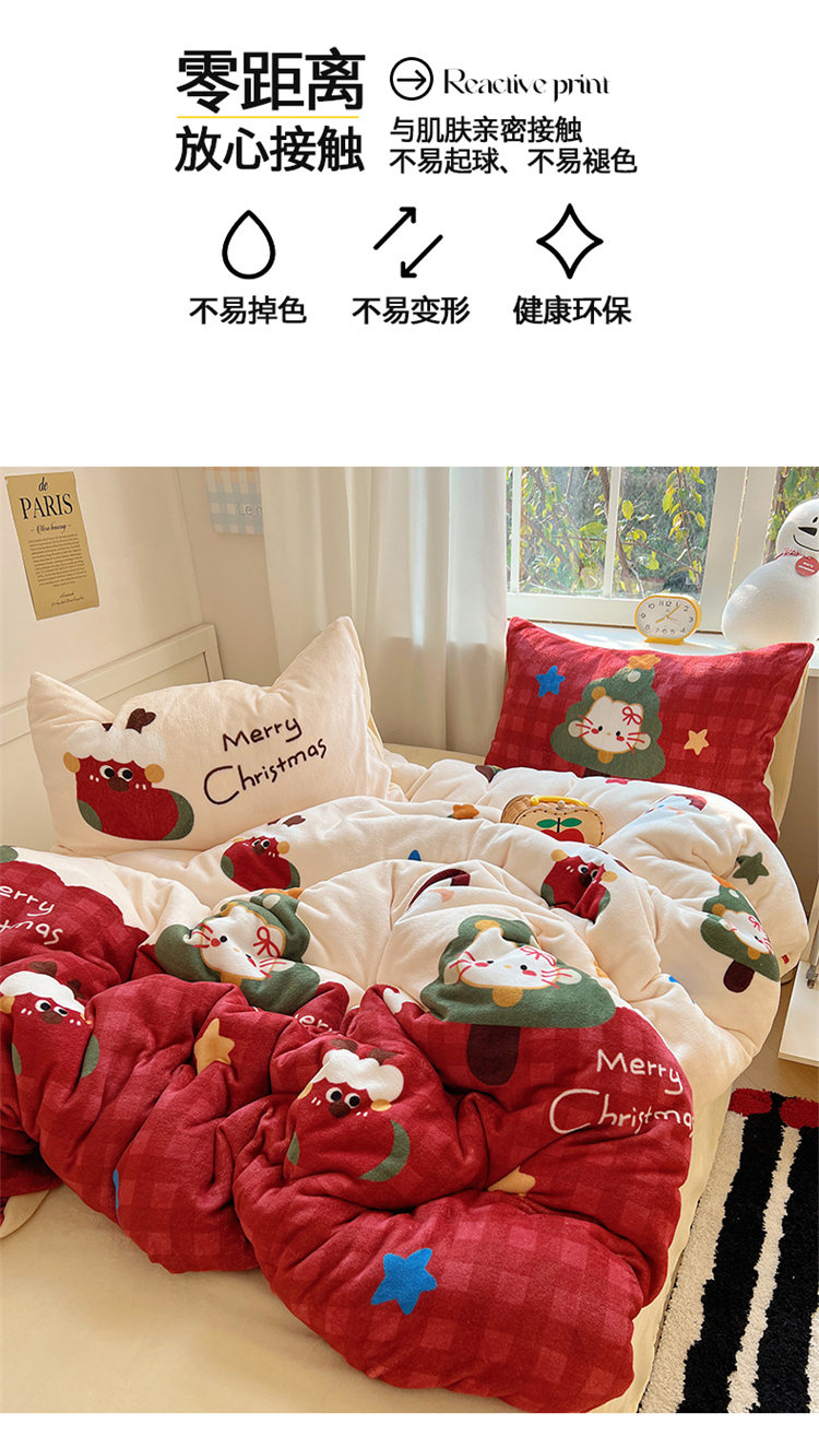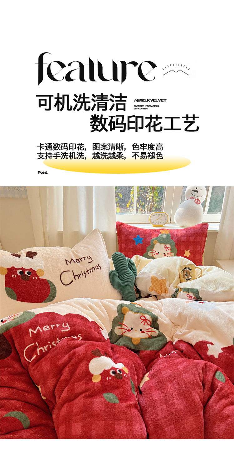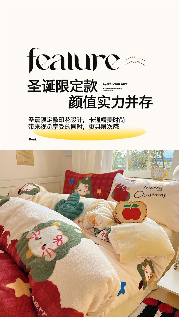 商品名称:2025新款A类数码印花圣诞新年限定款猫咪小熊加厚牛奶绒系列四件套 绒-圣诞猫咪