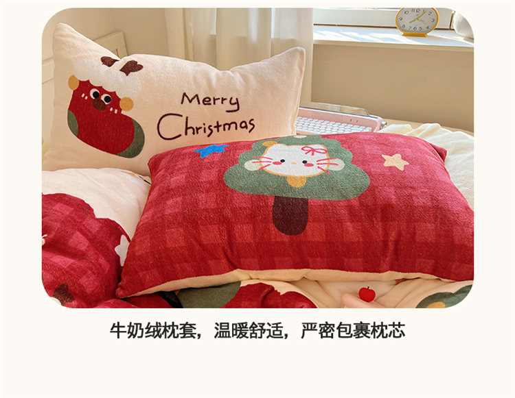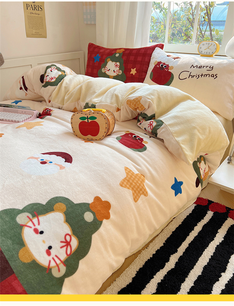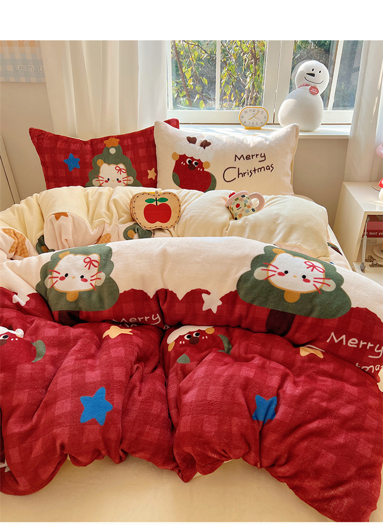 2025新款A类数码印花圣诞新年限定款猫咪小熊加厚牛奶绒系列四件套 绒-圣诞猫咪