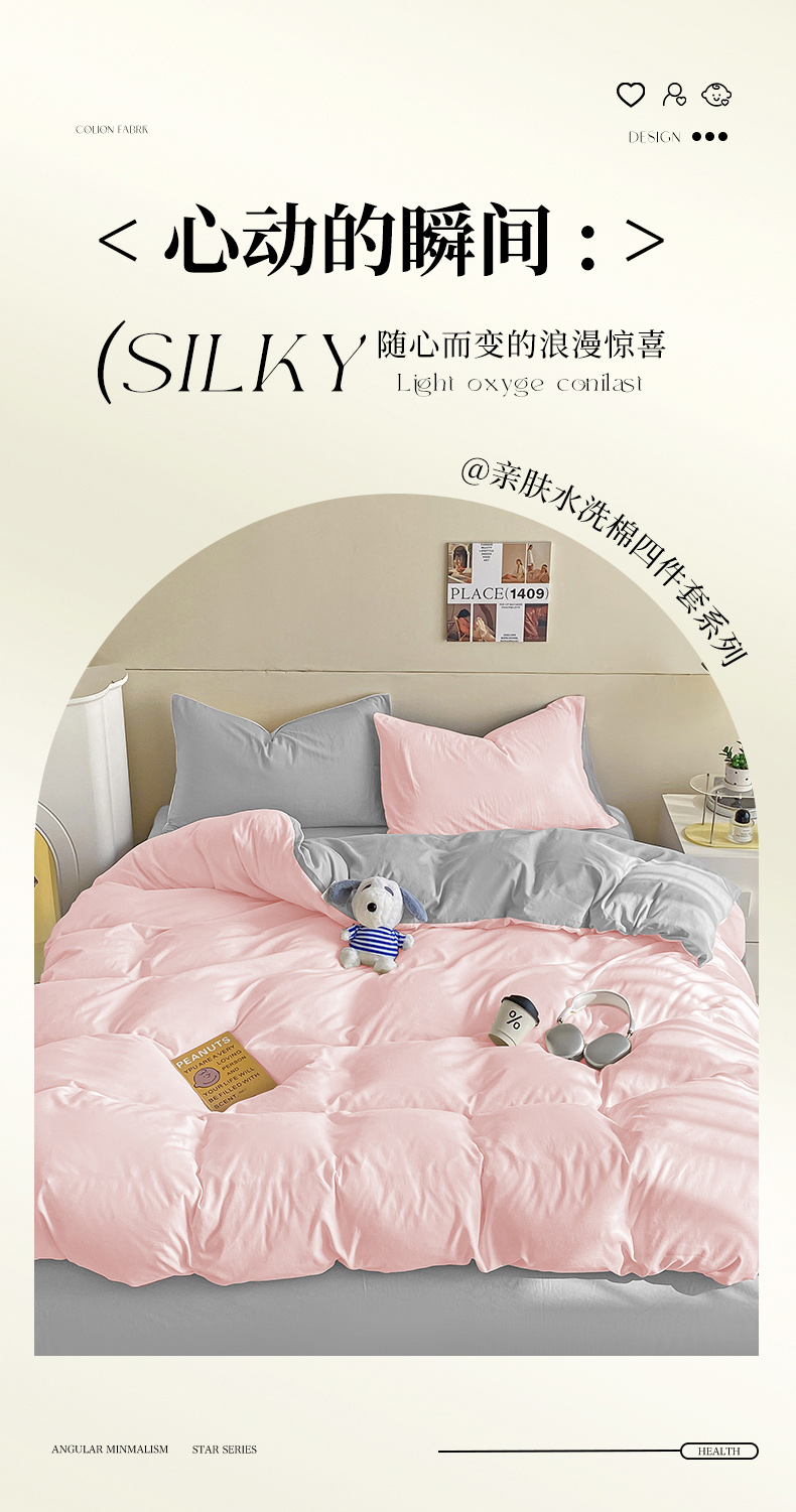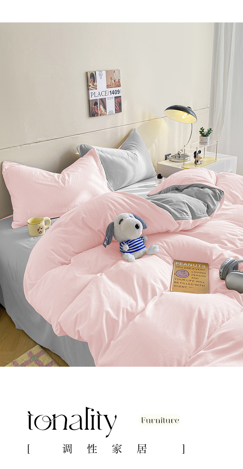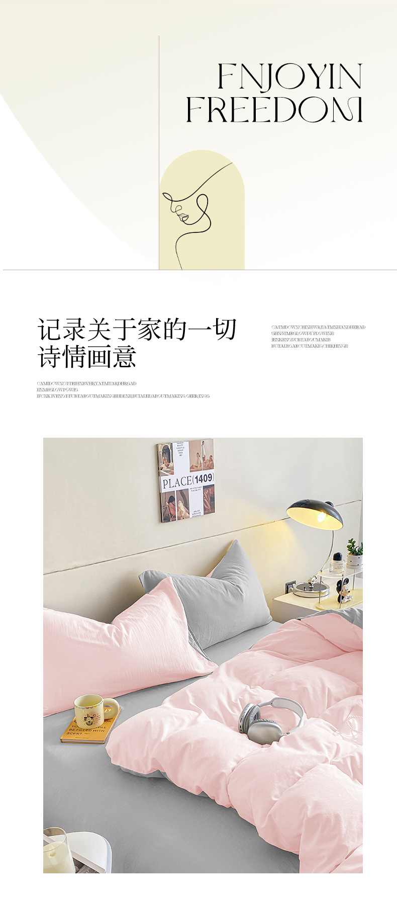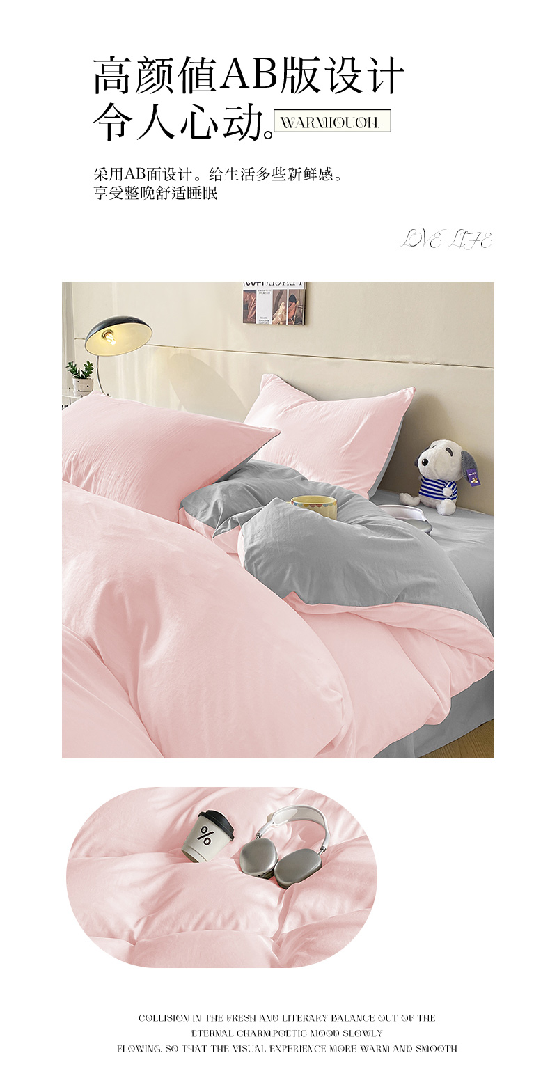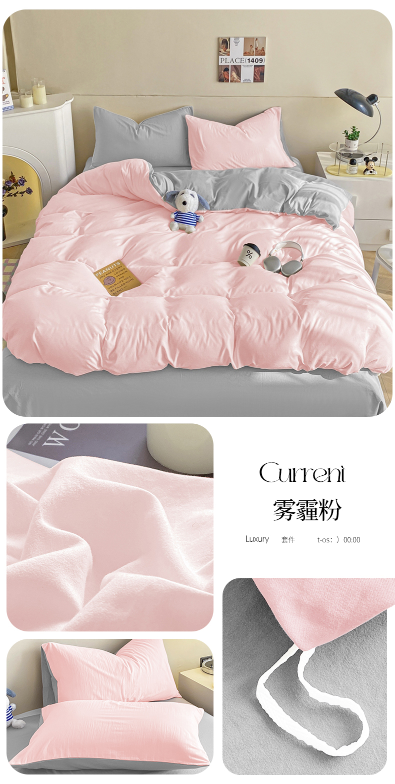 当前位置: 91家纺网 > 商品网购 > 床品套件 > 四件套 > 水洗棉四件套 > 沃朴家居 2024新款亲肤双拼水洗棉四件套学生三件套 雾霾粉