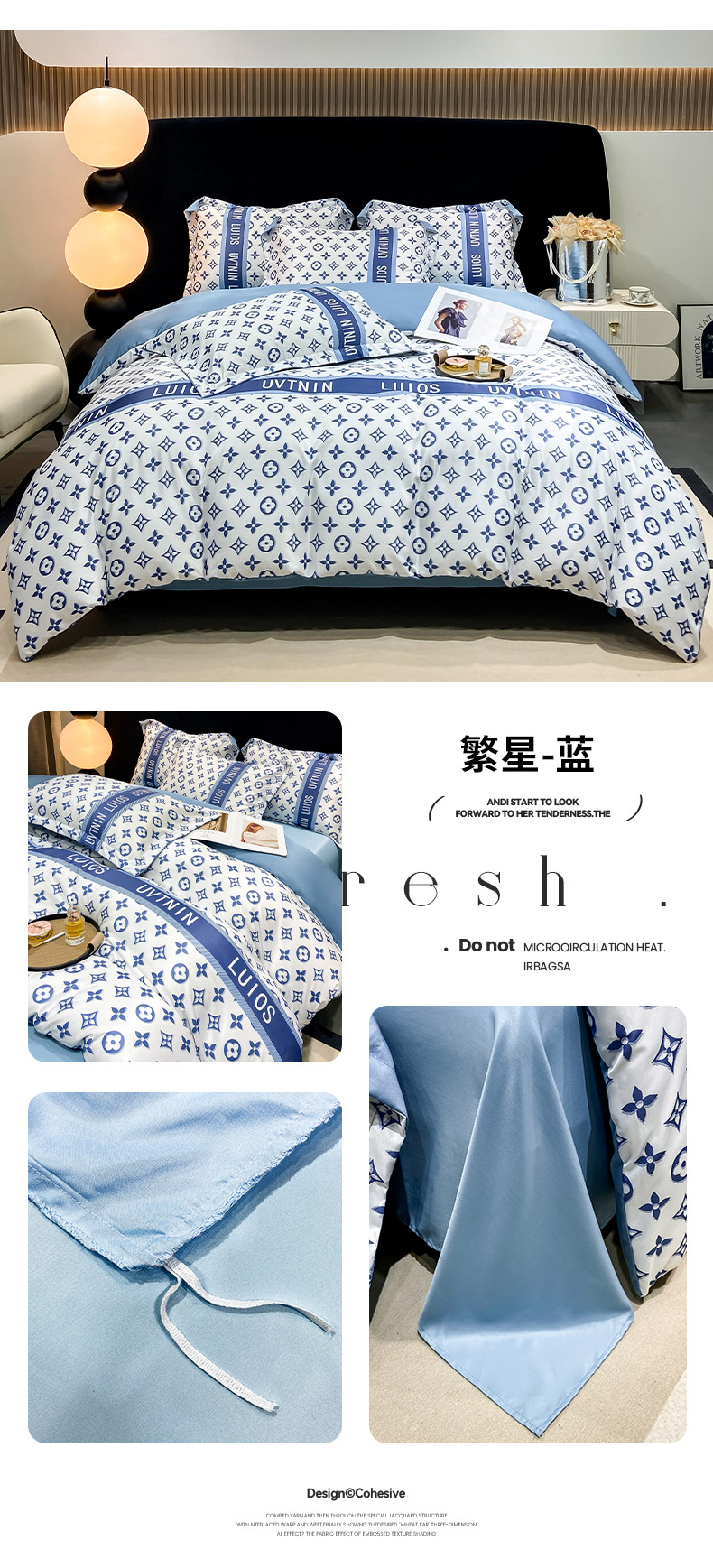 商品名称:(买家秀 爆款花型不断货)A类母婴级兰精天丝四件套兰精水洗天丝四件套高端莱赛尔天丝床上用品四件套真丝 繁星-蓝