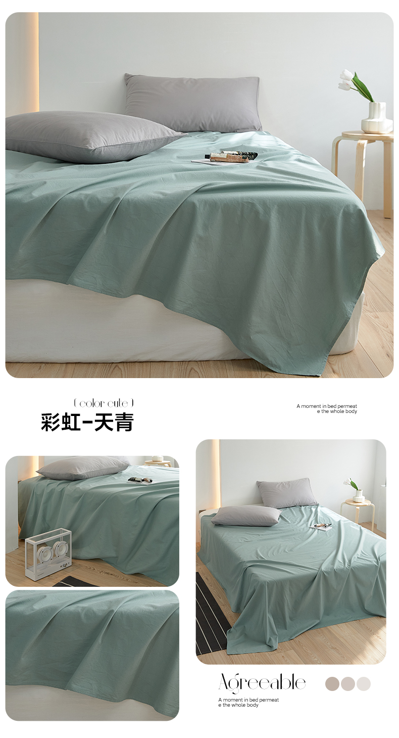 • 91家纺网 家纺一手货源 找家纺 40支纯色彩虹糖系列单品床单 彩虹-天青