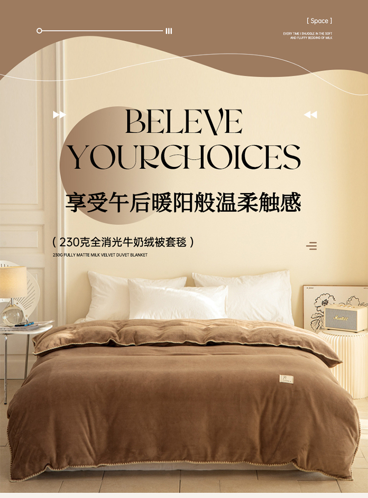 商品名称:法芙娜 2025新款牛奶绒被套毯 咖色