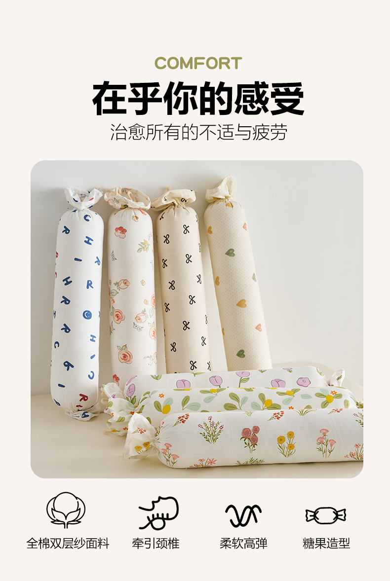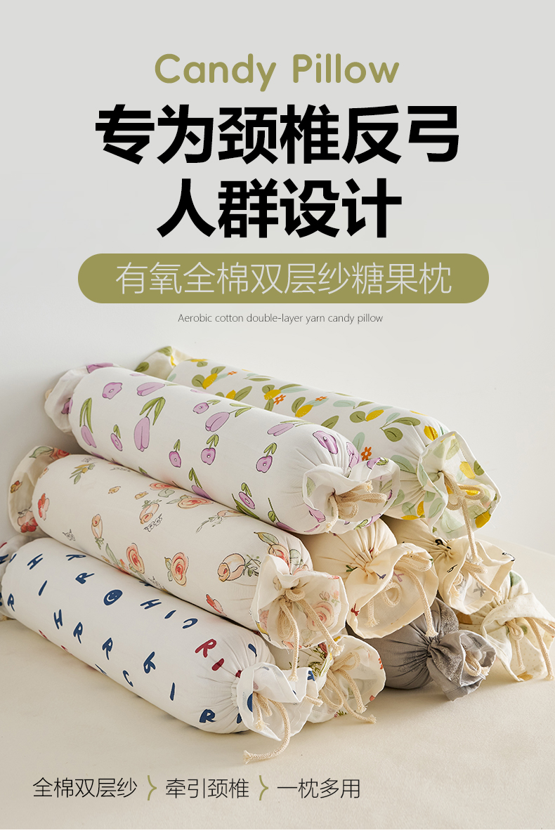 商品名称:(总)2025新款有氧全棉双层纱糖果枕 枕头枕芯