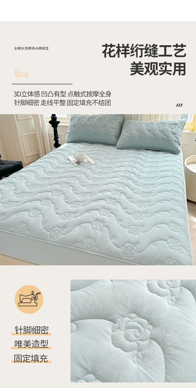 (总)3C 2025新款全棉水洗棉抗菌夹棉床垫褥子床护垫,波浪格-抹茶绿,波浪格-浅卡其,波浪格-清新粉,波浪格-天空蓝,波浪格-星空灰,波浪格-云朵白