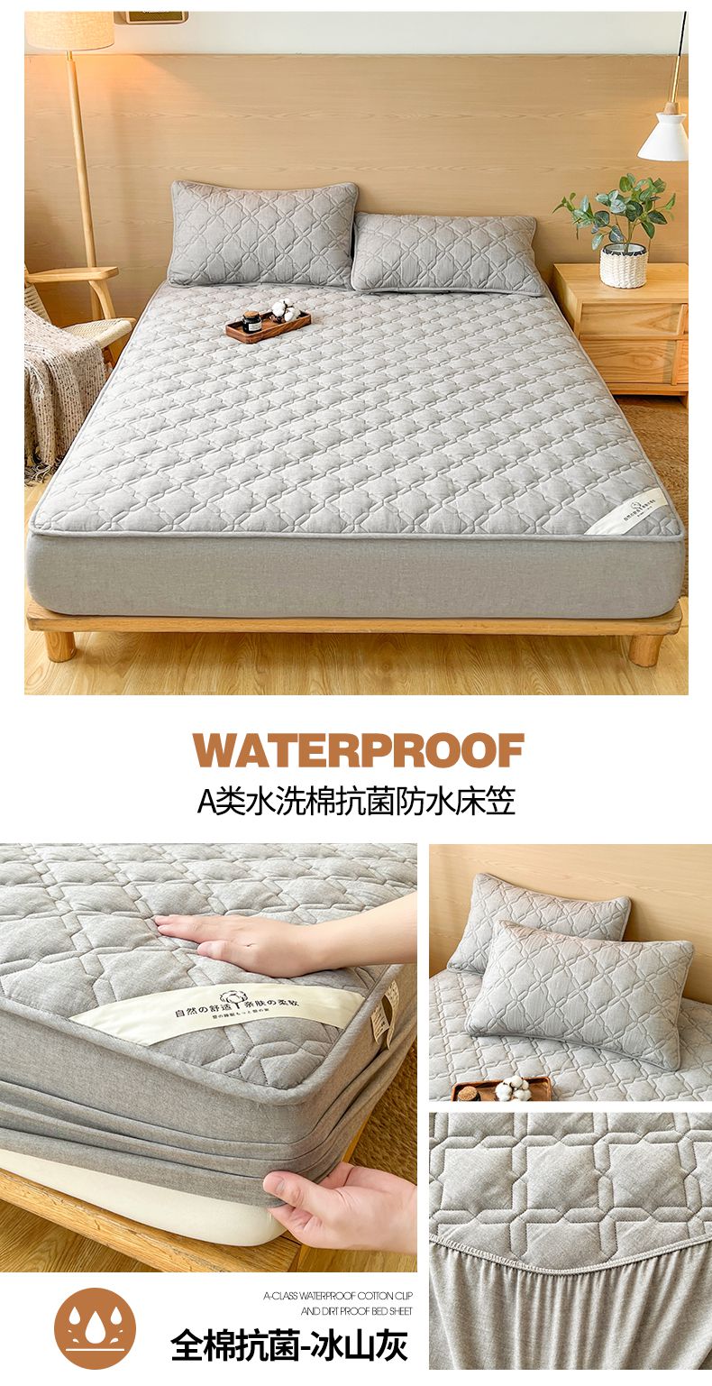• 91家纺网 家纺一手货源 找家纺 3C 2024新款A类全棉抗菌防水床笠 全棉防水-冰山灰
