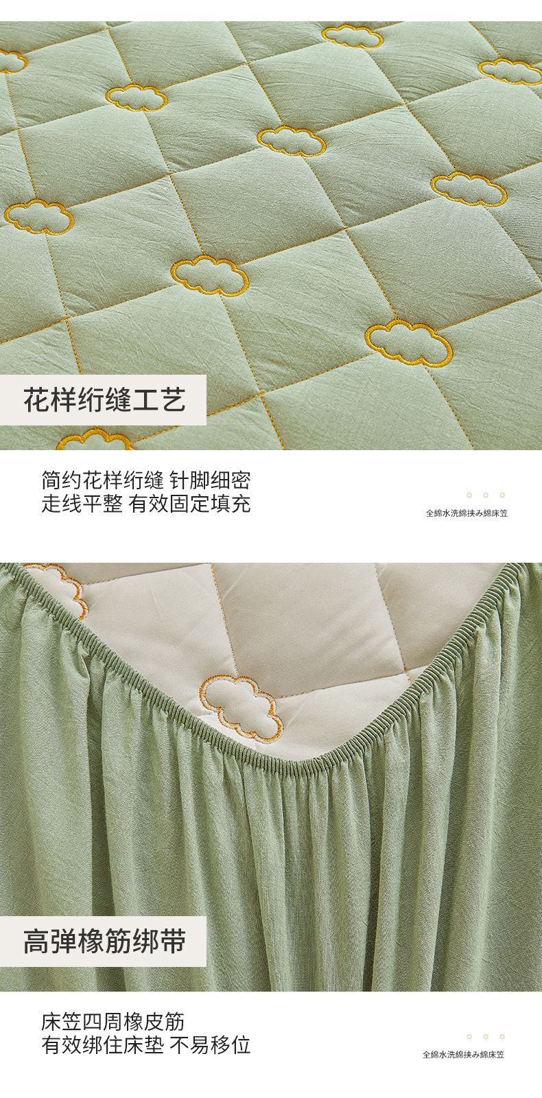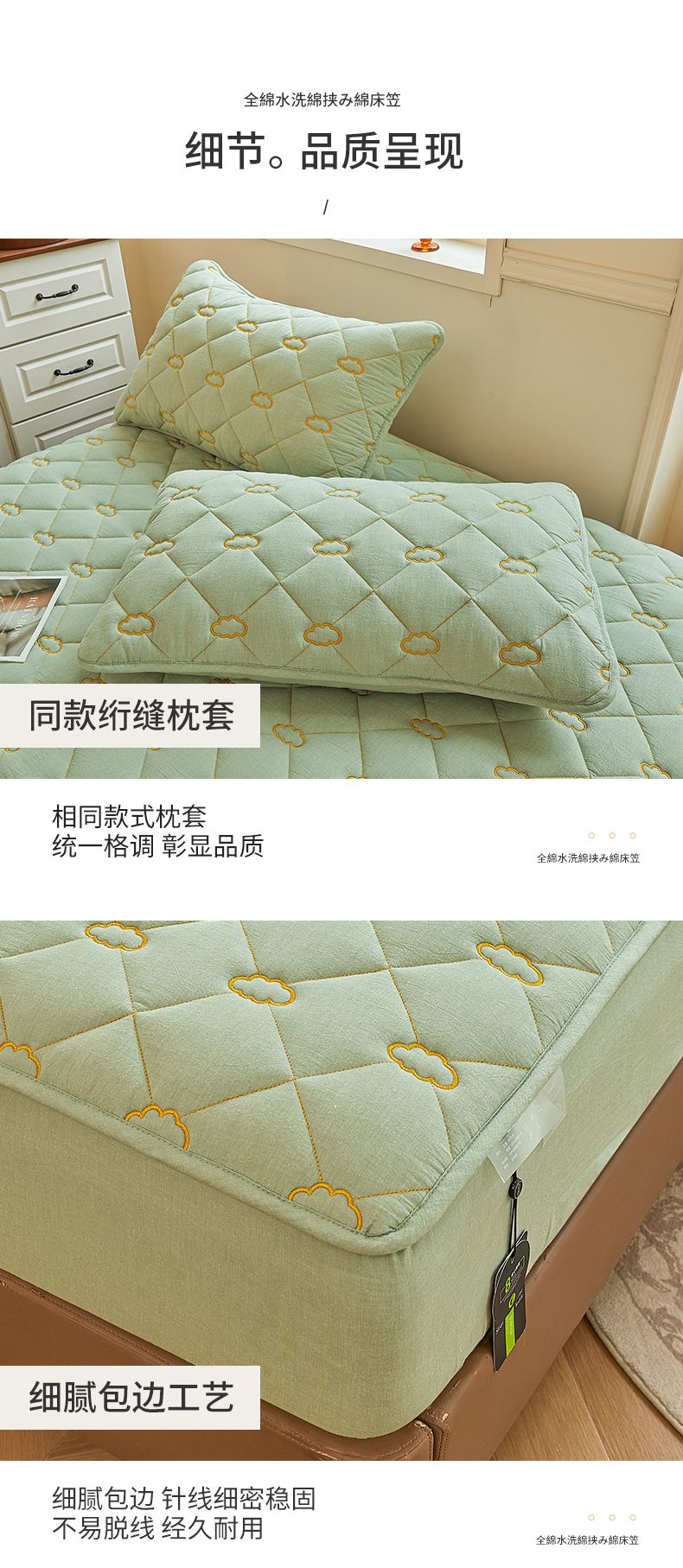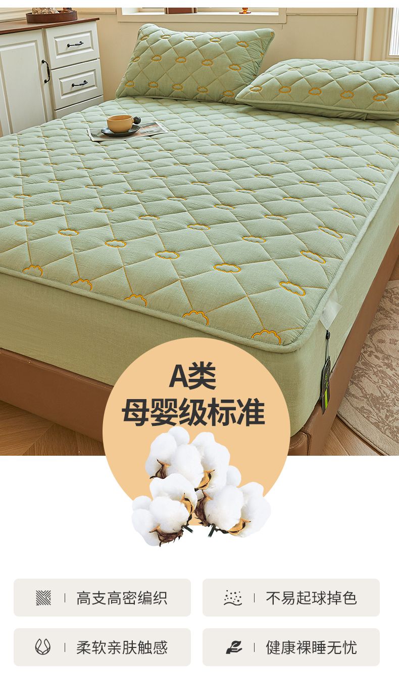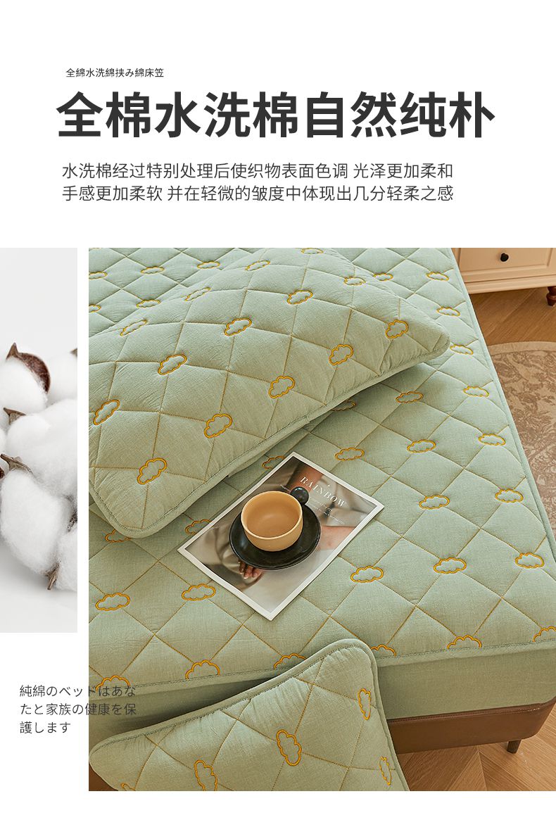 • 91家纺网 家纺一手货源 找家纺 3C 2024新款云朵全棉水洗棉床笠 云朵 抹茶绿