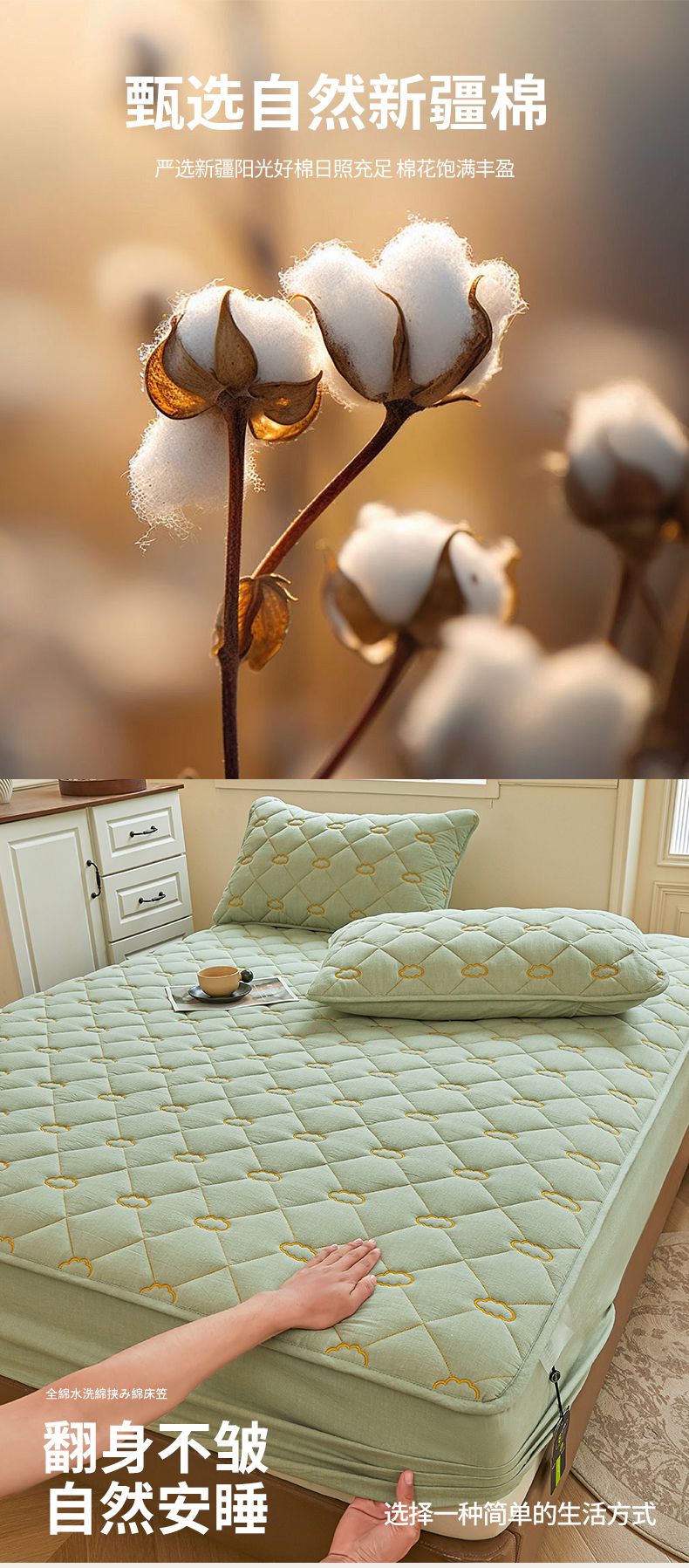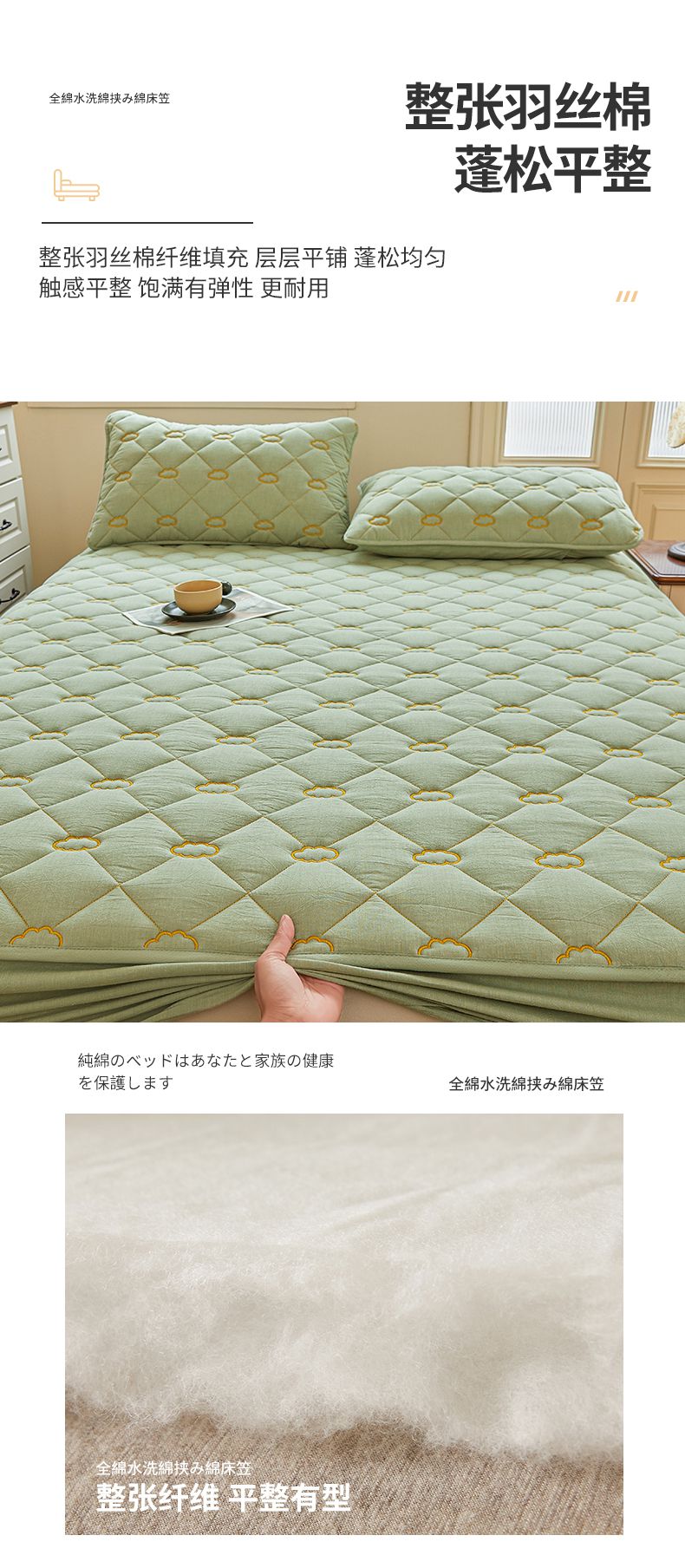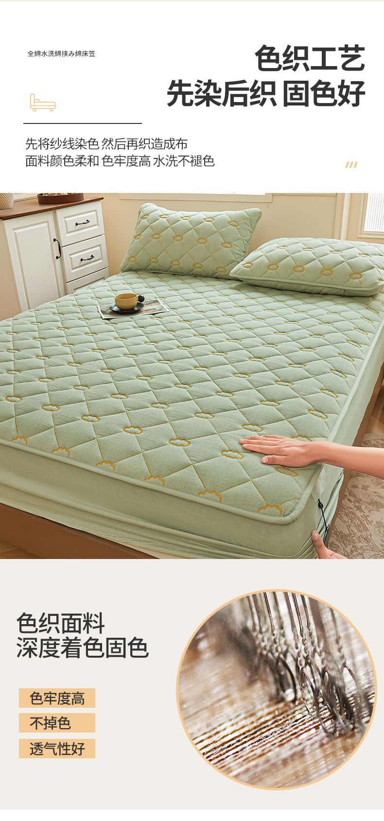 • 91家纺网 家纺一手货源 找家纺 3C 2024新款云朵全棉水洗棉床笠 云朵 抹茶绿