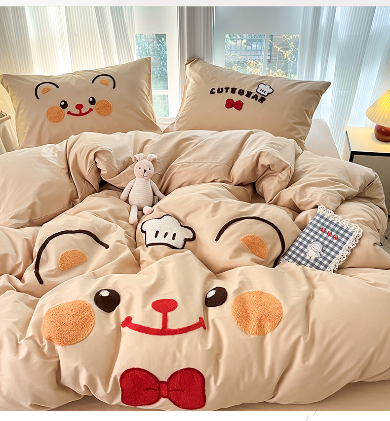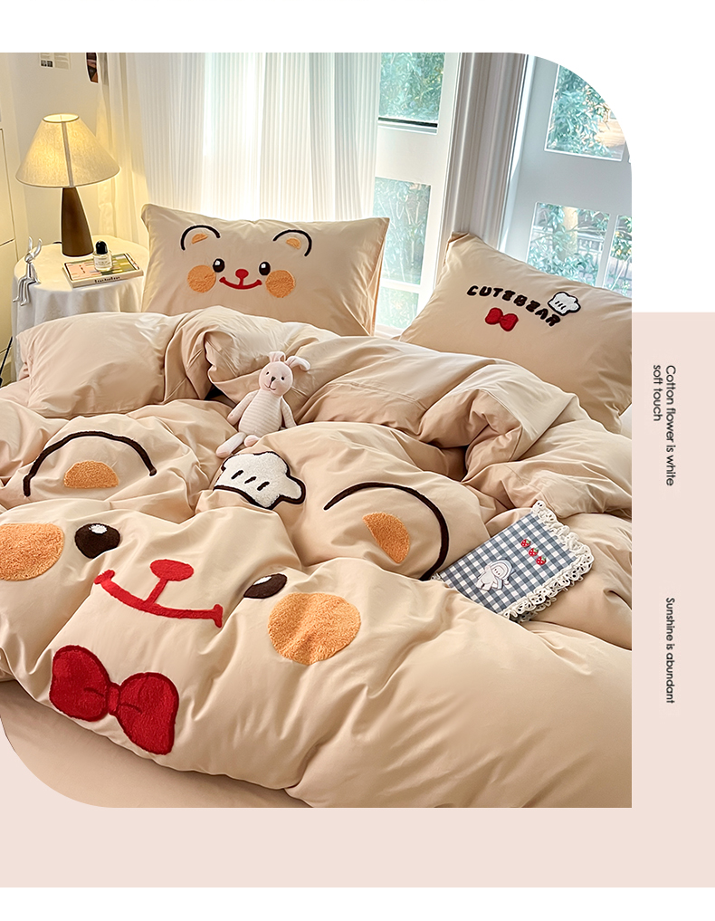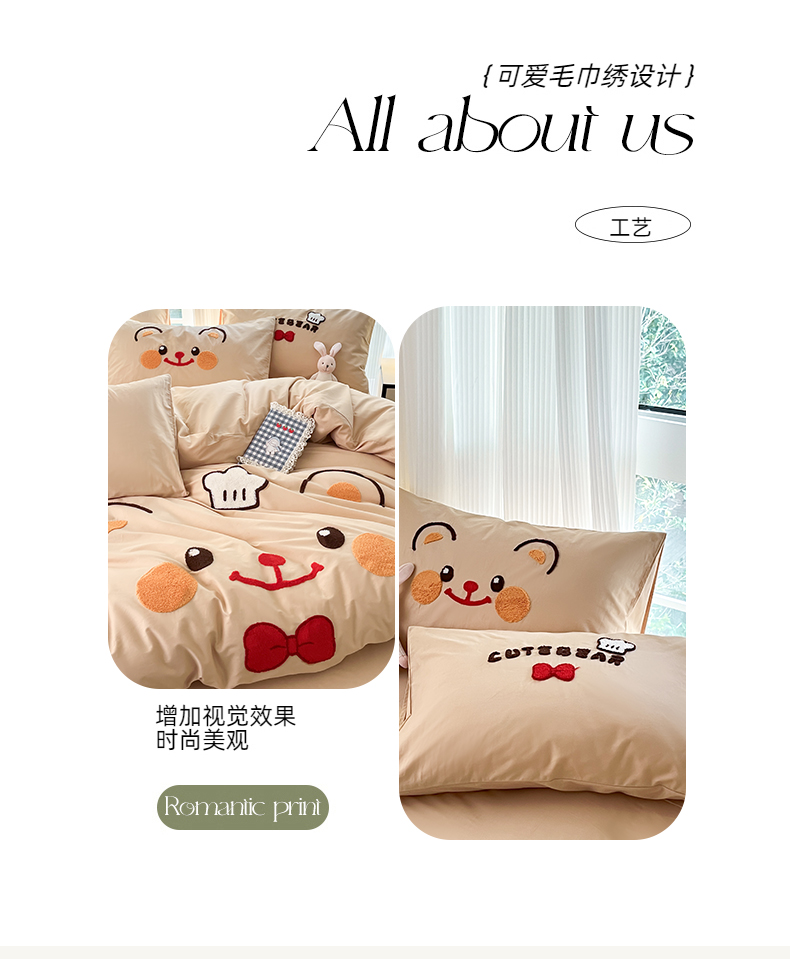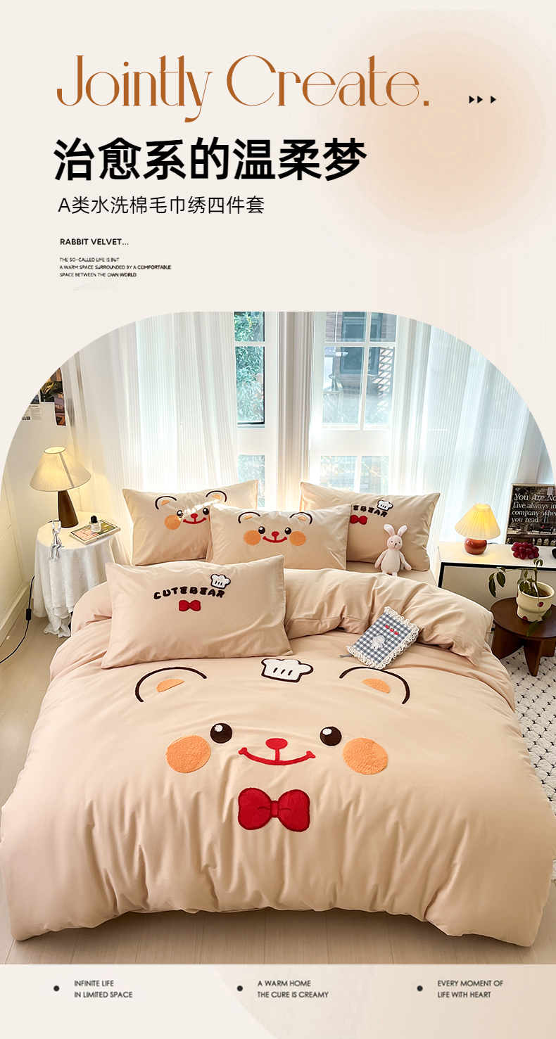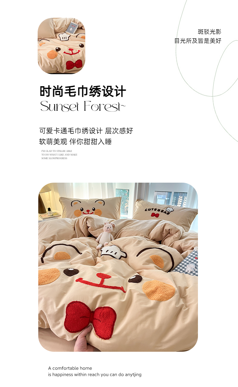 当前位置: 91家纺网 > 商品网购 > 床品套件 > 四件套 > 化纤普通四件套 > 玉海棠 2025新款水洗棉毛巾绣四件套系列(含买家秀) 黄油熊咖