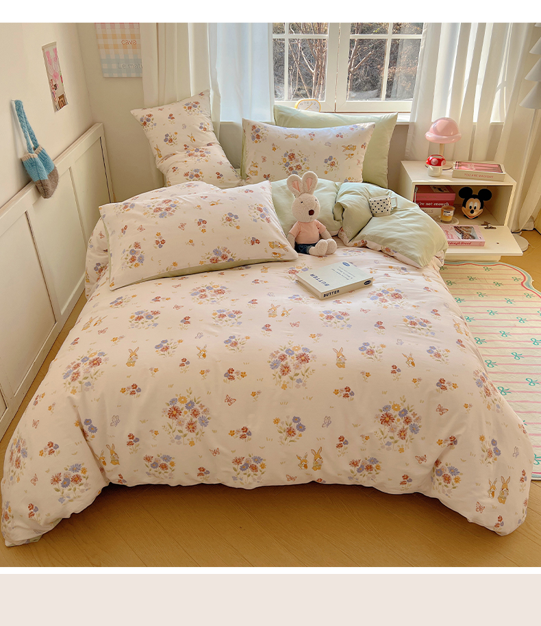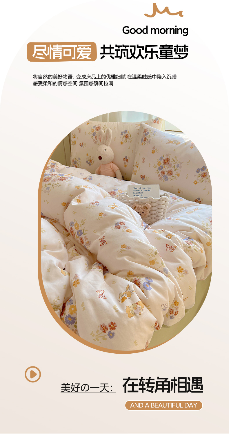 (总)雅居纺家纺 2026新款全棉小清新印花四件套,HI小狗,暴富,草莓蓝花,粉色熊熊,红红火火,简笔画小兔,蓝条花朵兔,绿色小兔,森林乐园,绅士快乐狗,贪睡猫猫,贪玩家族,贪玩小兔兔,祥瑞,小黑猫咪,幸福花朵,幸福兔-蓝,熊熊小汽车,紫色千鸟格