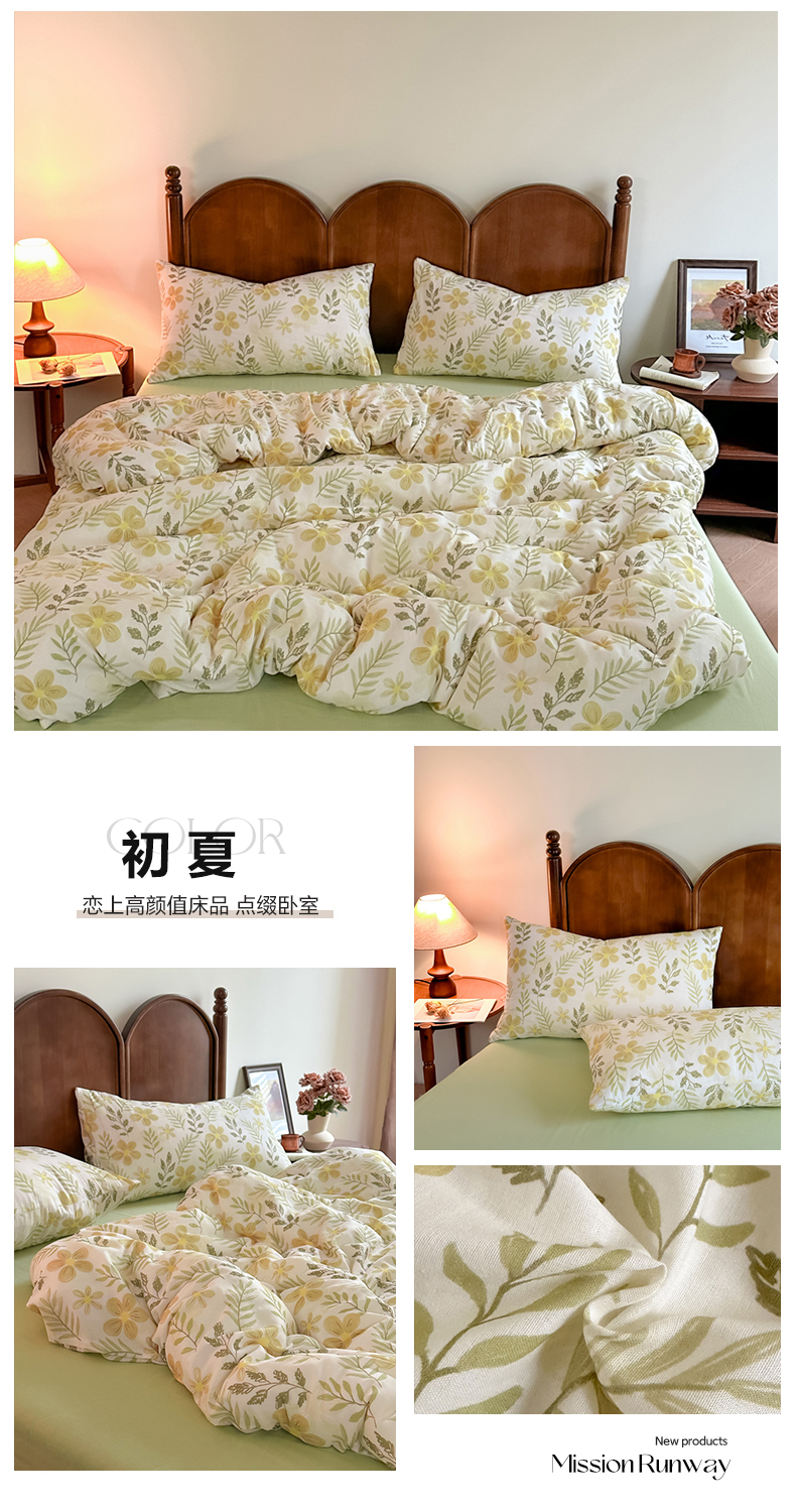 当前位置: 91家纺网 > 商品网购 > 床品套件 > 四件套 > 全棉普通四件套 > 2025新款A类母婴级有氧全棉纯棉双层纱纯棉印花四件套 场景二 初夏