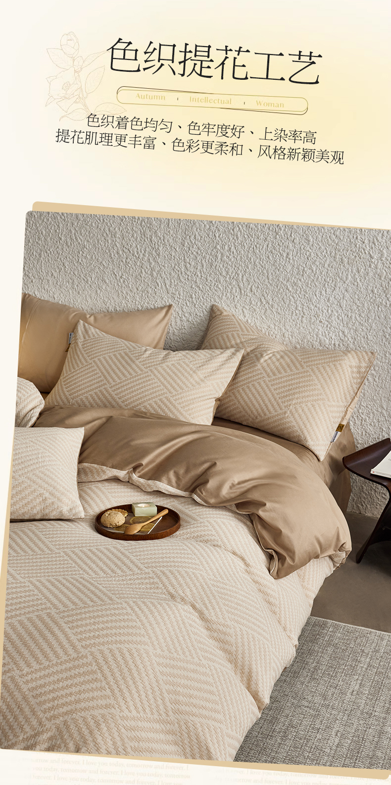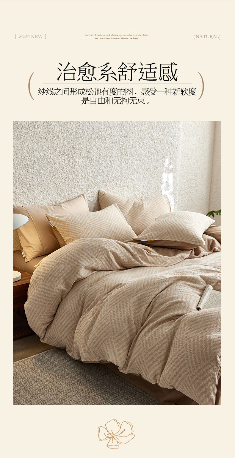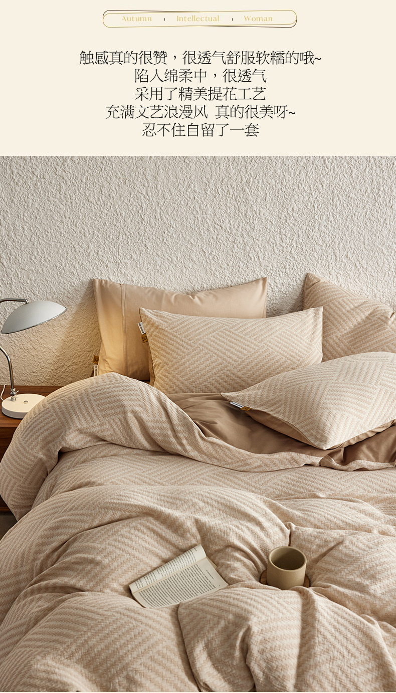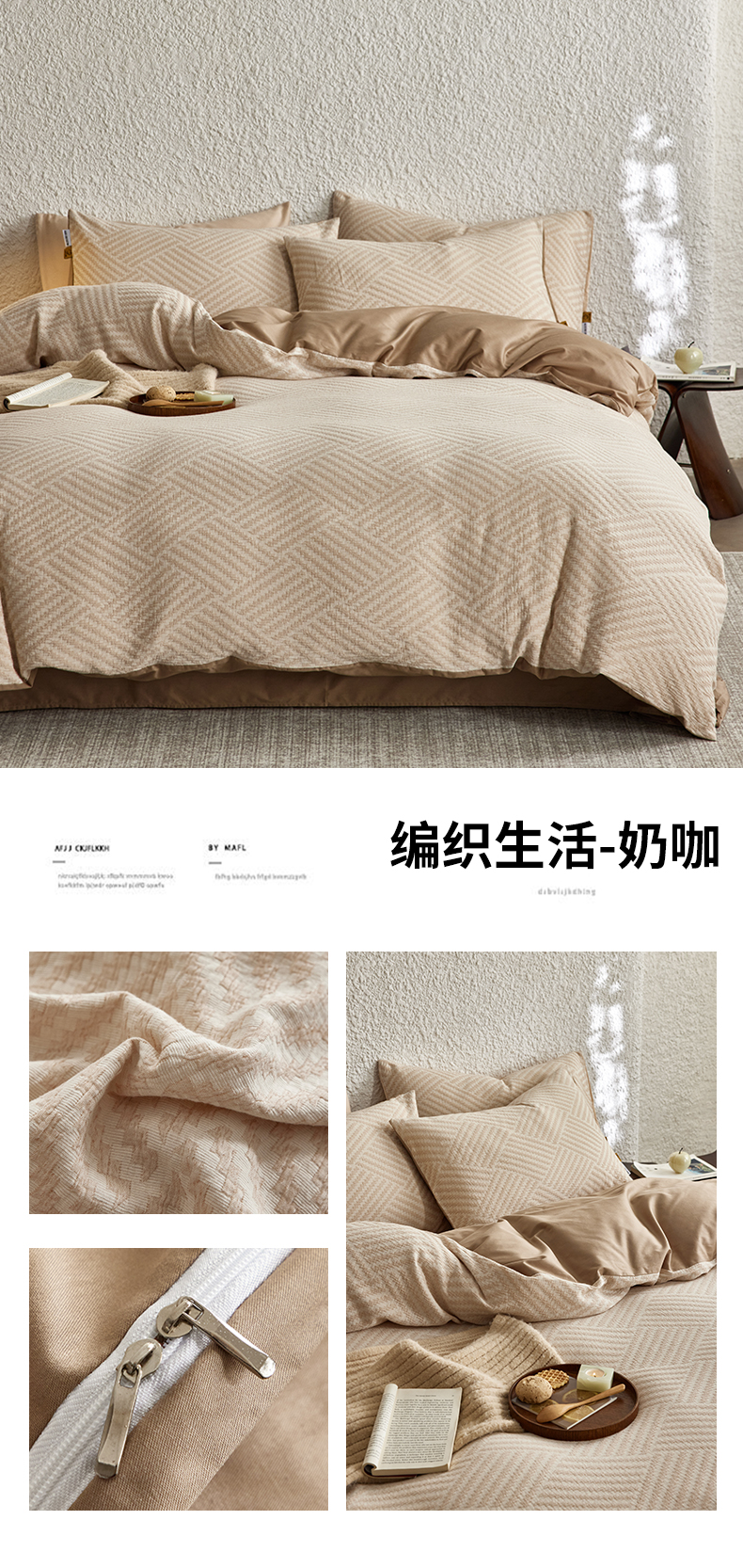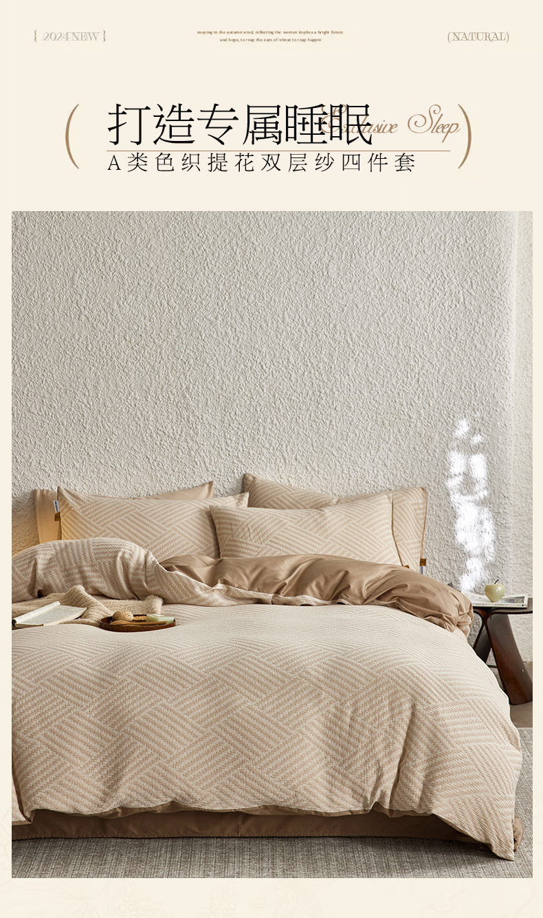当前位置: 91家纺网 > 商品网购 > 床品套件 > 四件套 > 凯磊家纺 2025新款色织提花双层纱四件套 编织生活-奶咖