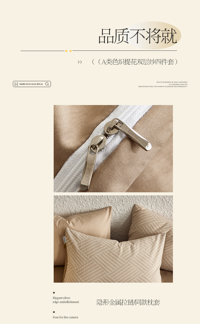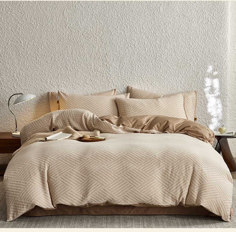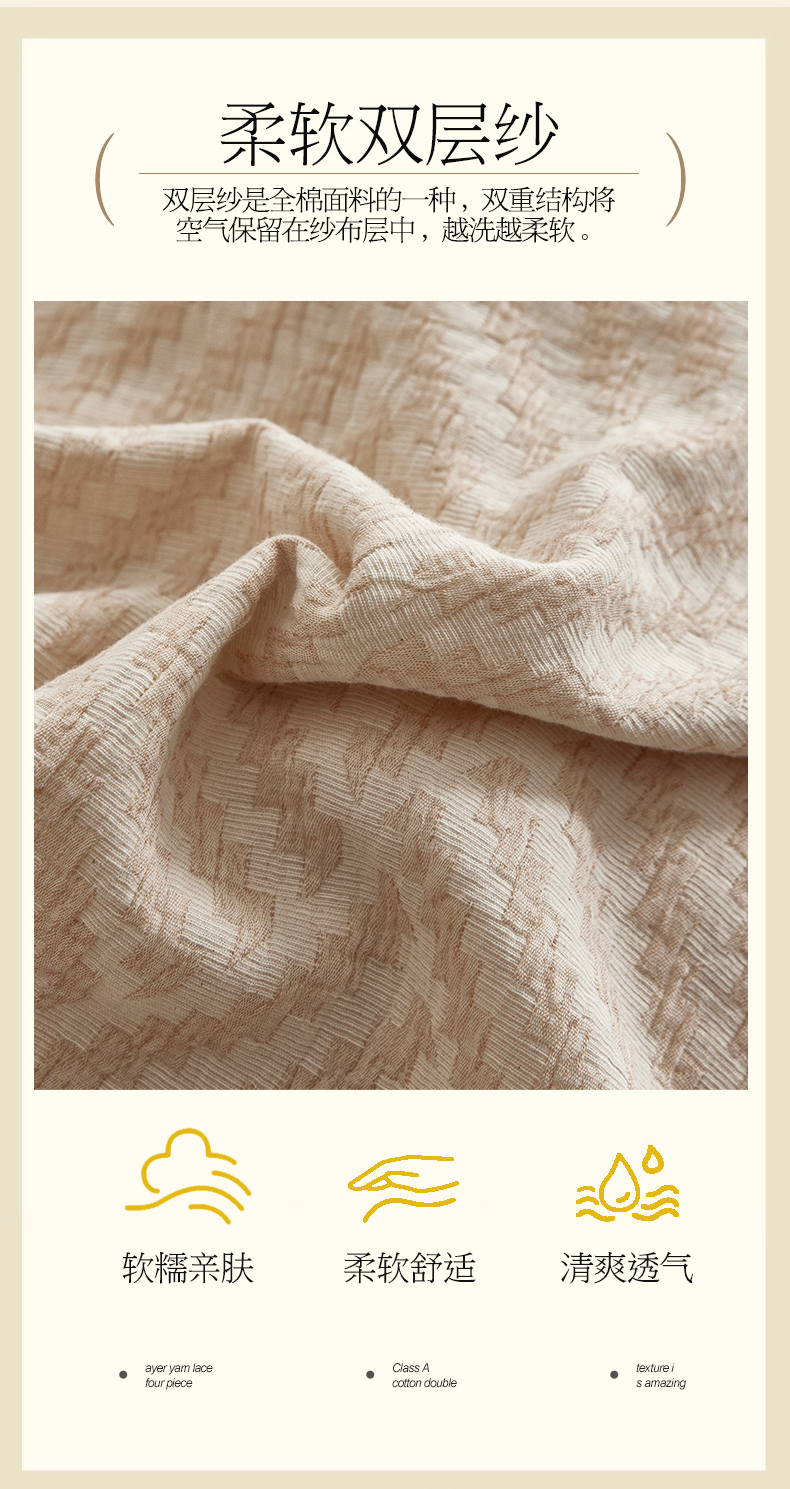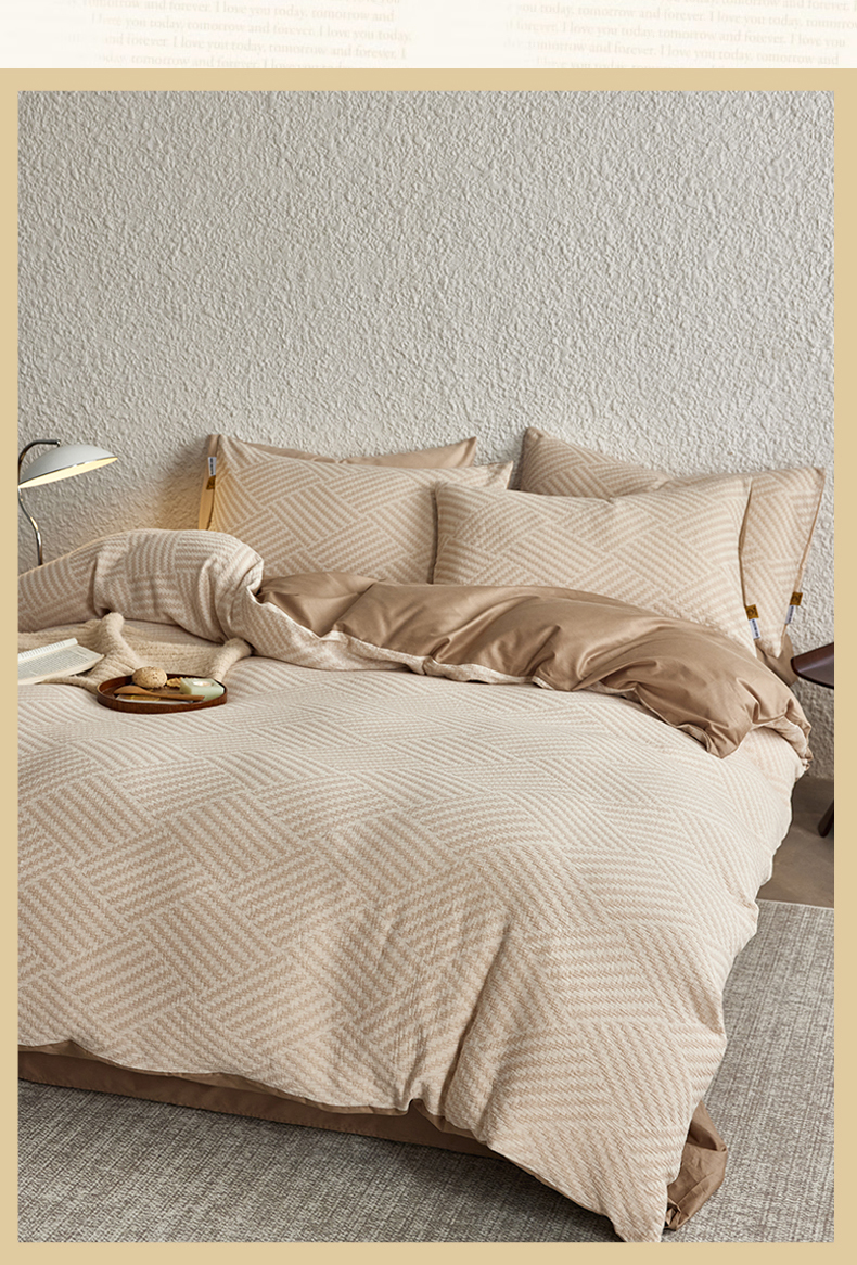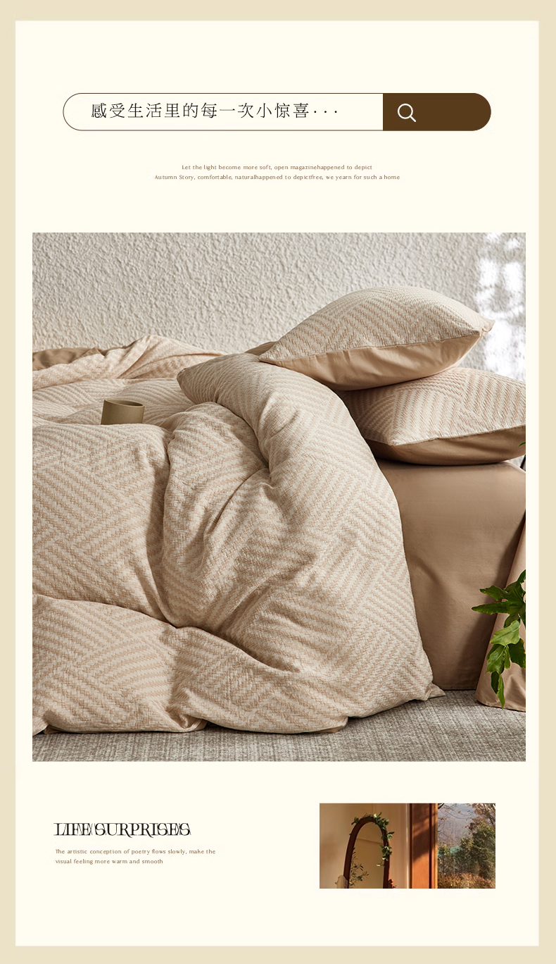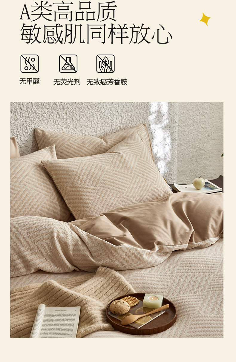 当前位置: 91家纺网 > 商品网购 > 床品套件 > 四件套 > 凯磊家纺 2025新款色织提花双层纱四件套 编织生活-奶咖