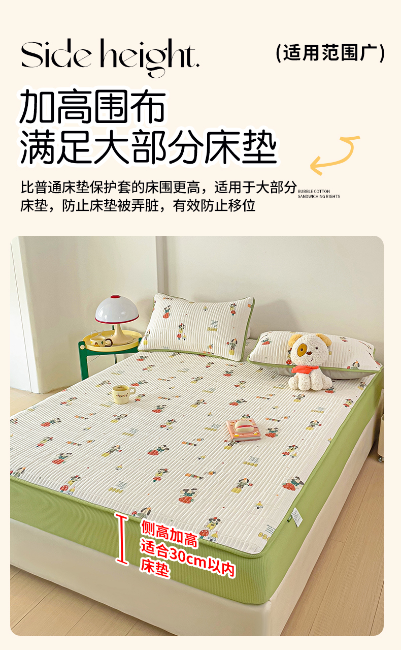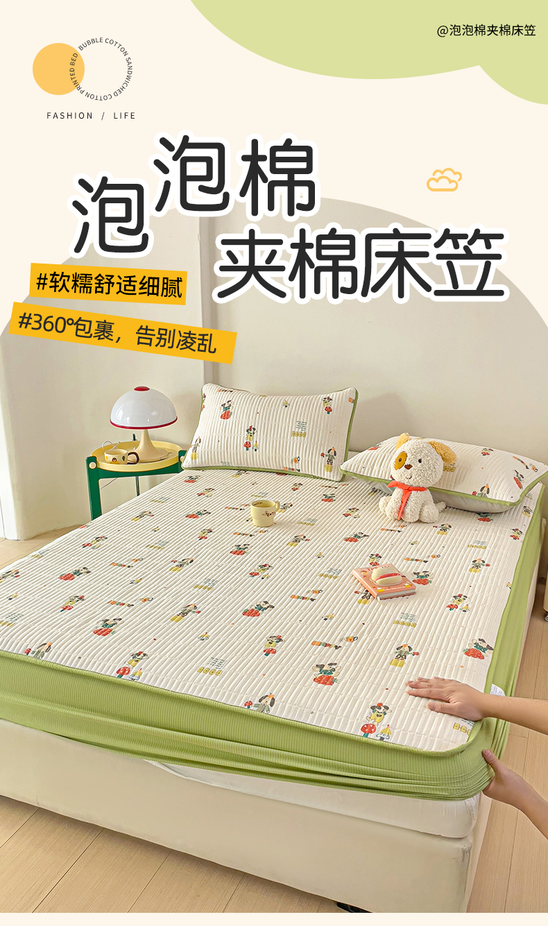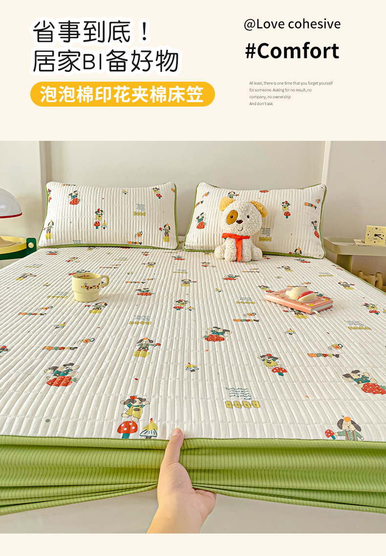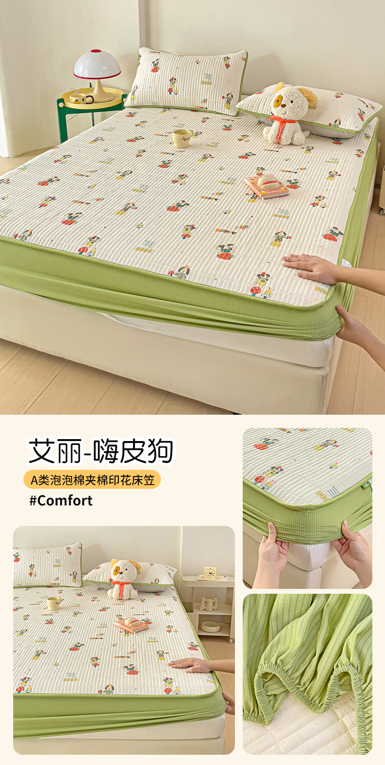 恬澳家纺 2025新款A类泡泡棉夹棉印花床笠 艾丽-嗨皮狗