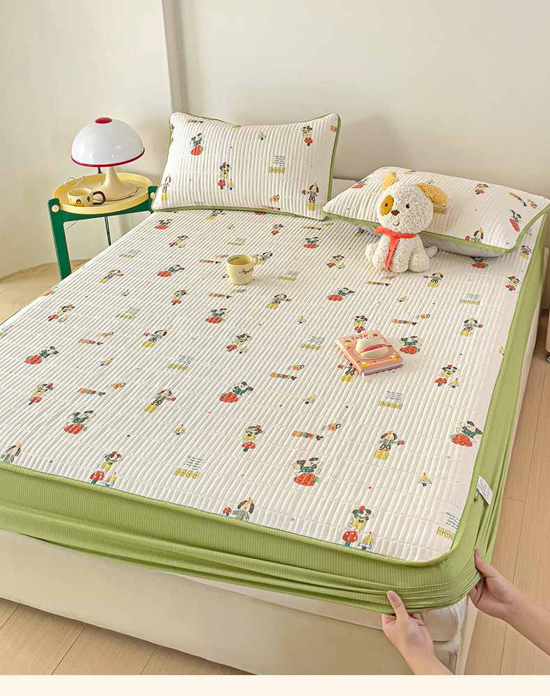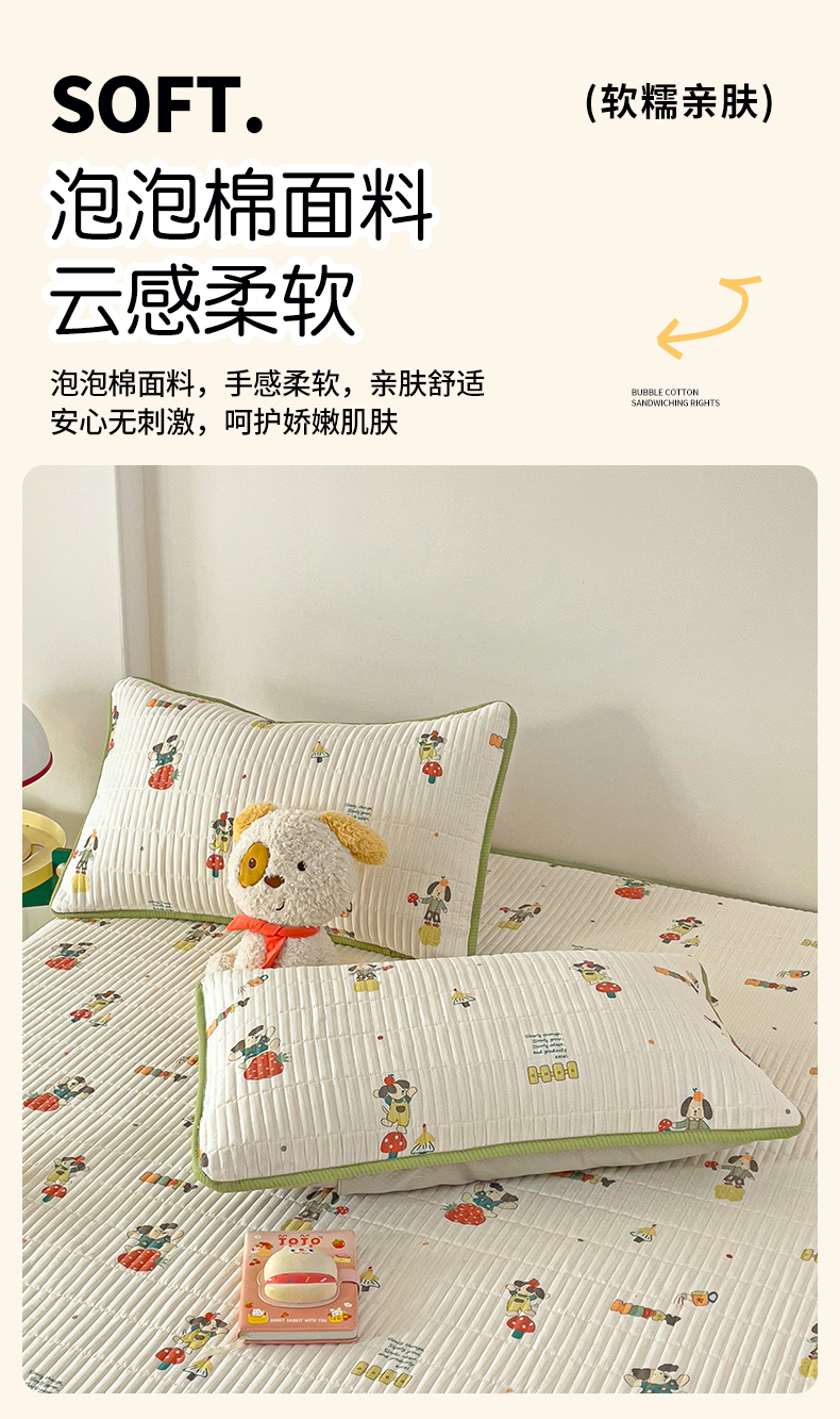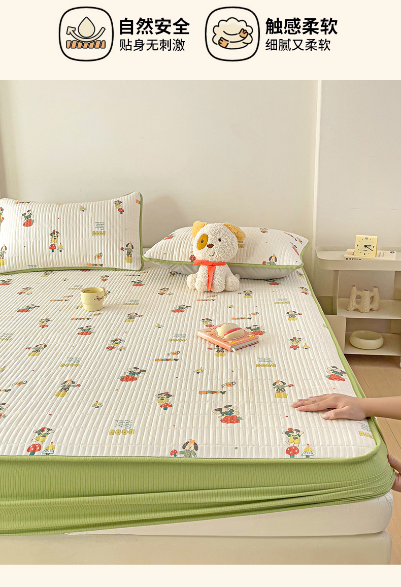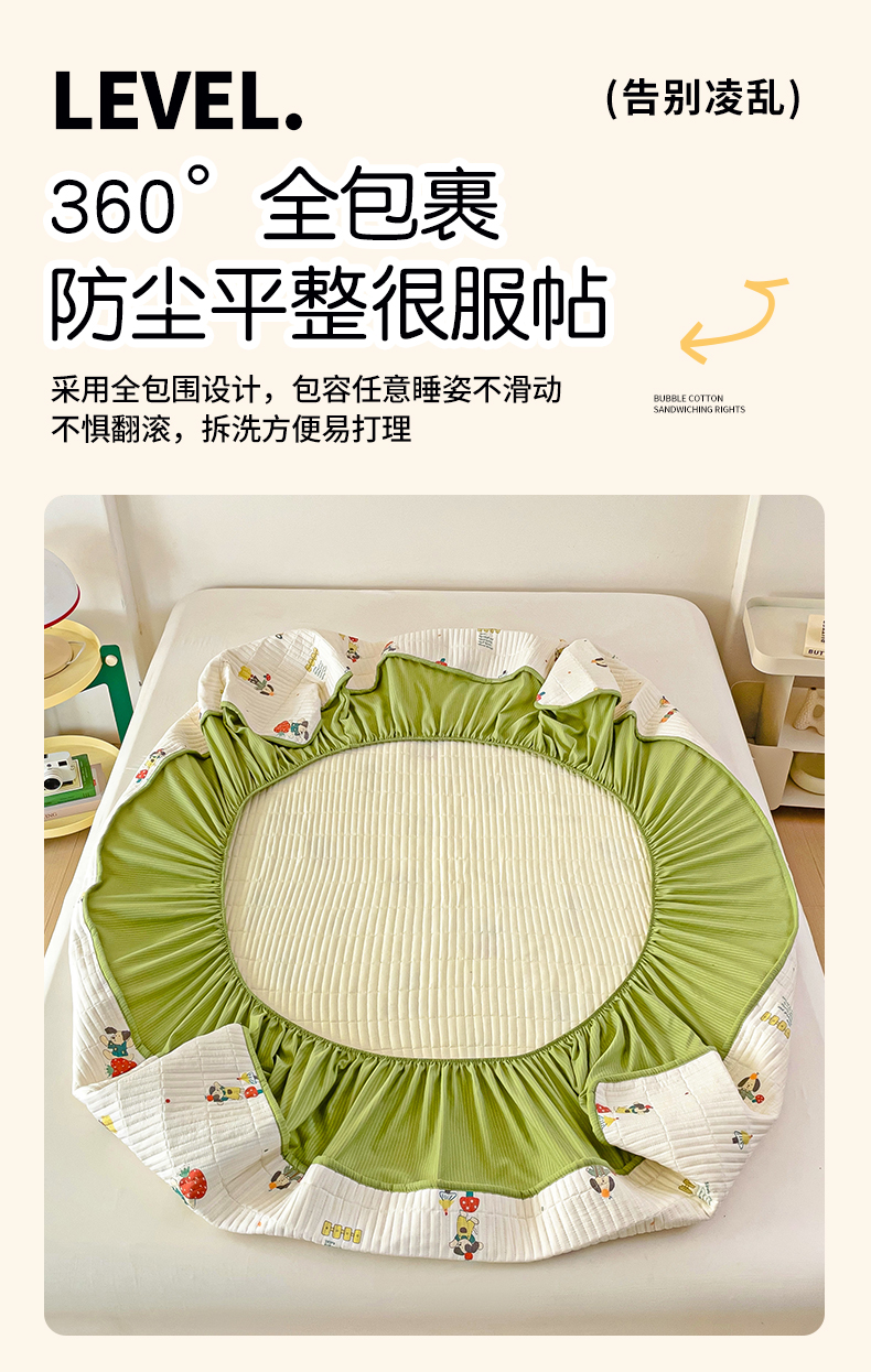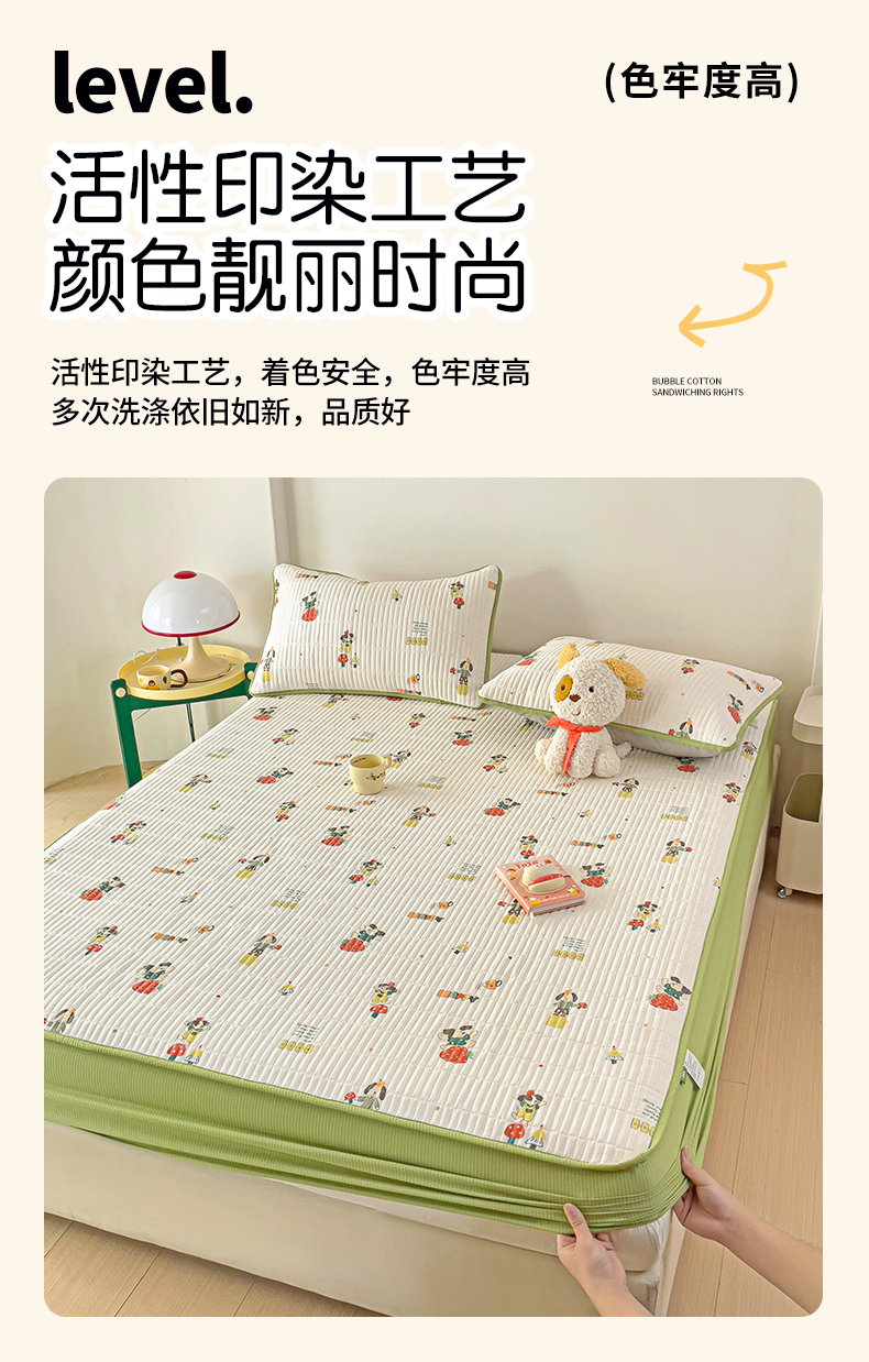 恬澳家纺 2025新款A类泡泡棉夹棉印花床笠 艾丽-嗨皮狗