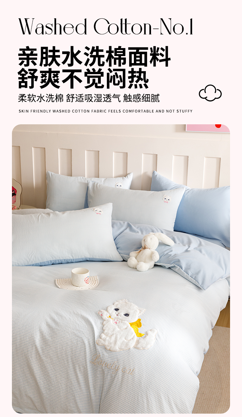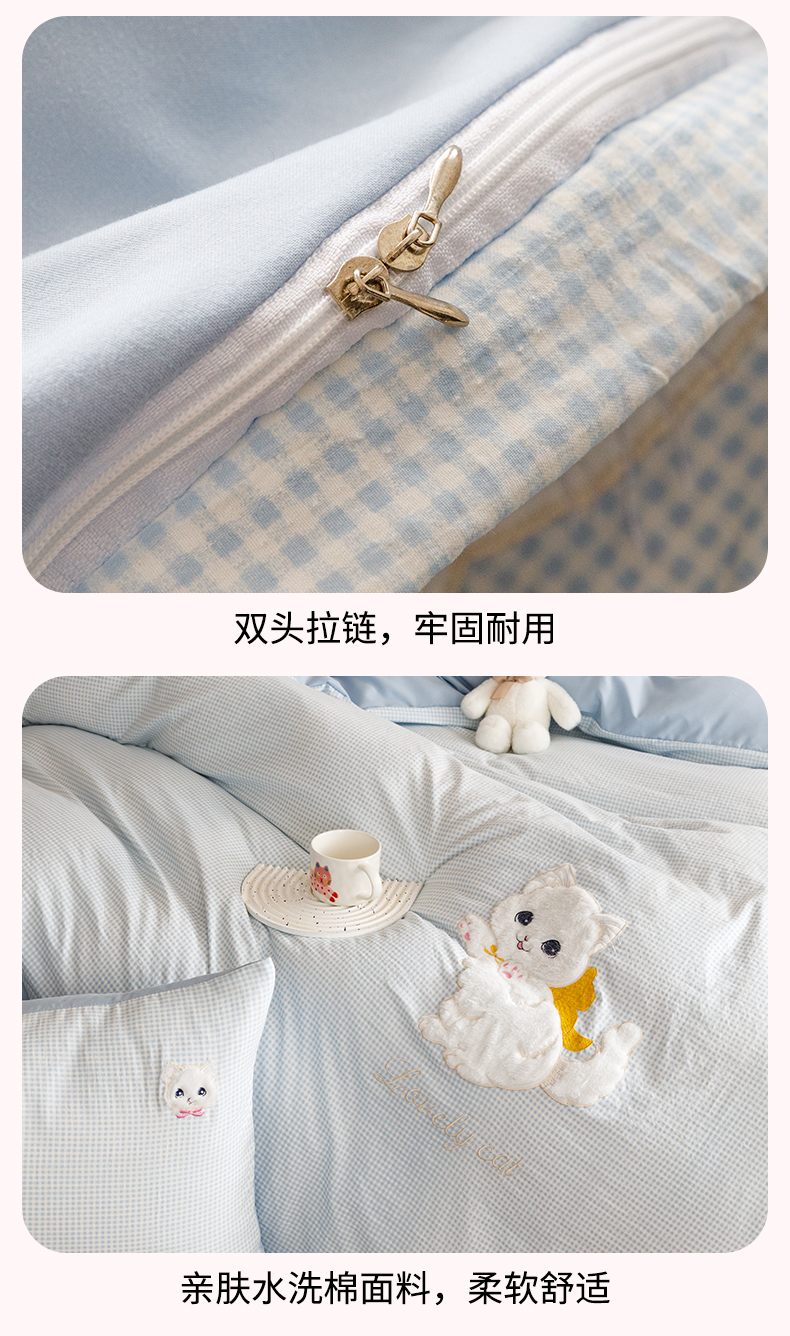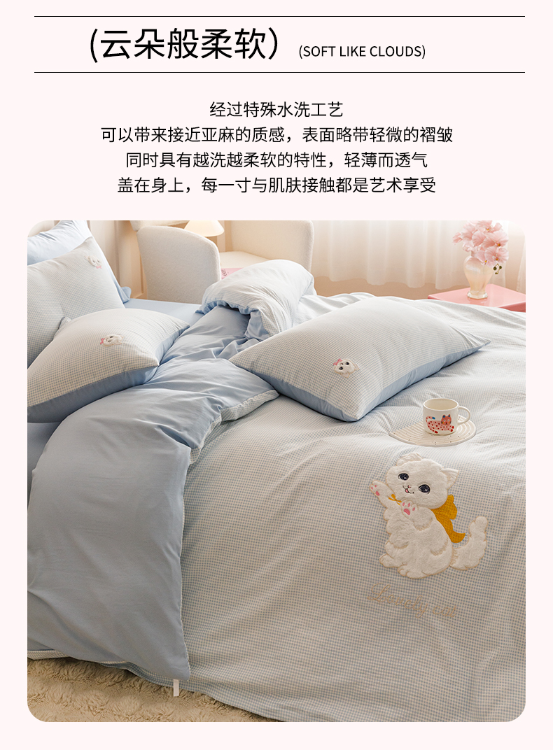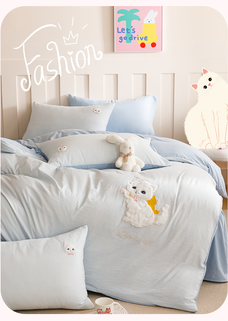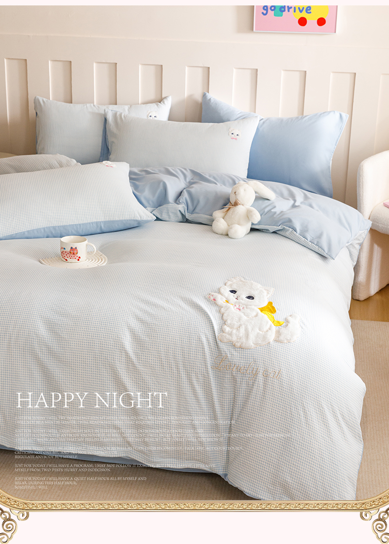 当前位置: 91家纺网 > 商品网购 > 床品套件 > 四件套 > 水洗棉四件套 > (买家秀 爆款花型不断货)无印风纯棉四件套全棉四件套水洗棉三件套床单四件套床笠四件套色织水洗棉四件套 蝴蝶猫咪蓝格