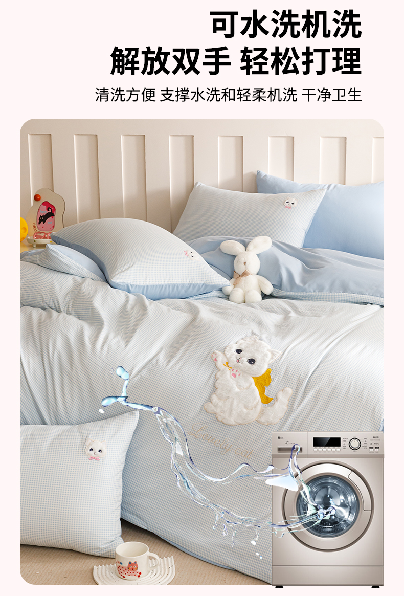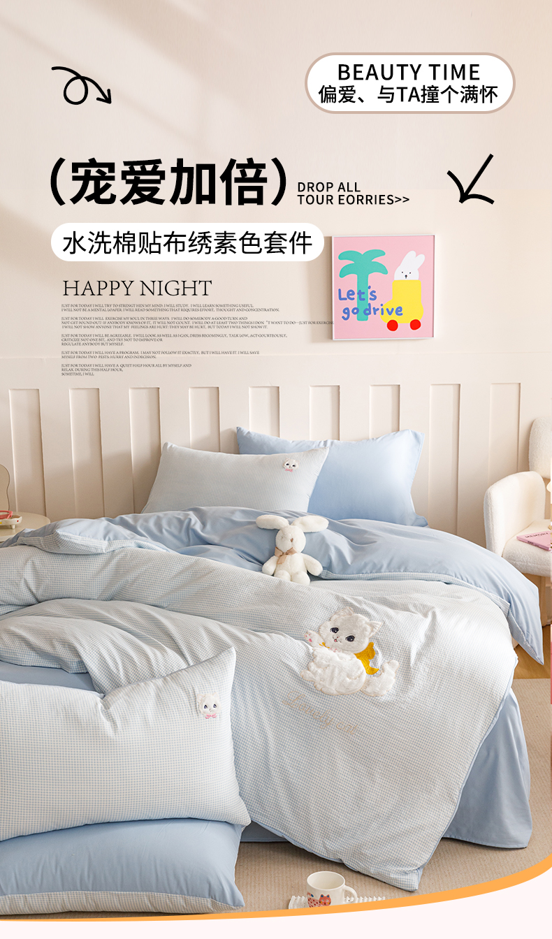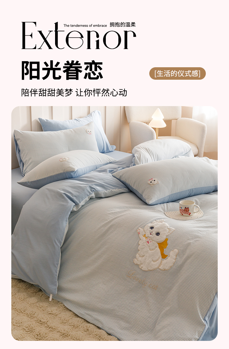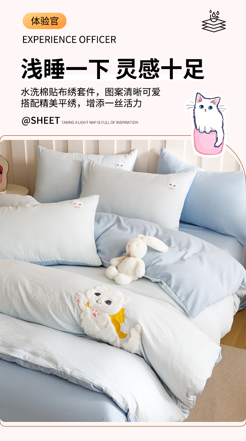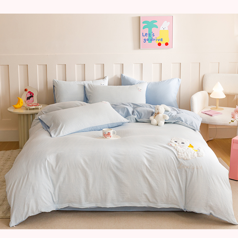 当前位置: 91家纺网 > 商品网购 > 床品套件 > 四件套 > 水洗棉四件套 > (买家秀 爆款花型不断货)无印风纯棉四件套全棉四件套水洗棉三件套床单四件套床笠四件套色织水洗棉四件套 蝴蝶猫咪蓝格