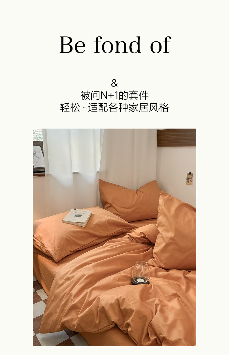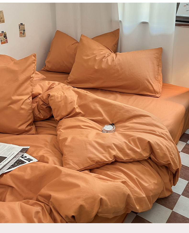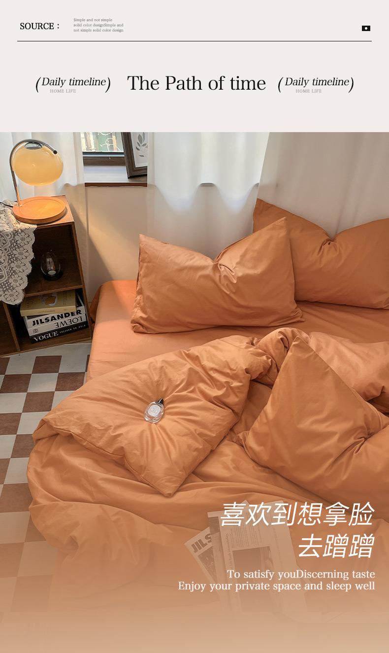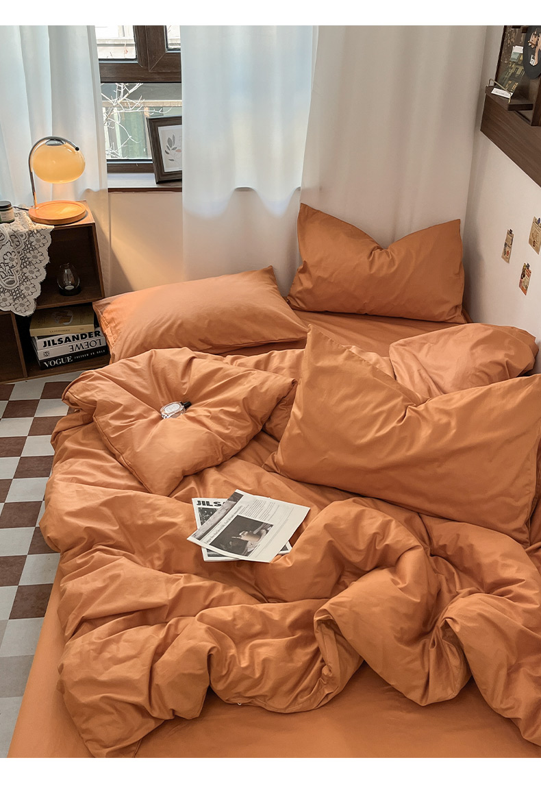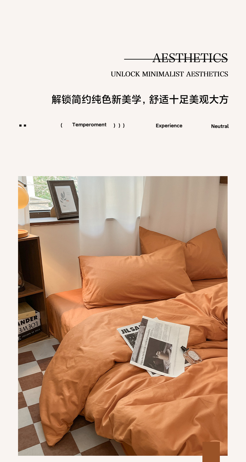 2025新款40支长绒棉ins美拉德色系纯色全棉四件套床笠极简三件套纯棉四件套系列--四件套 橘