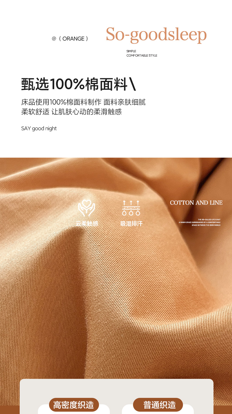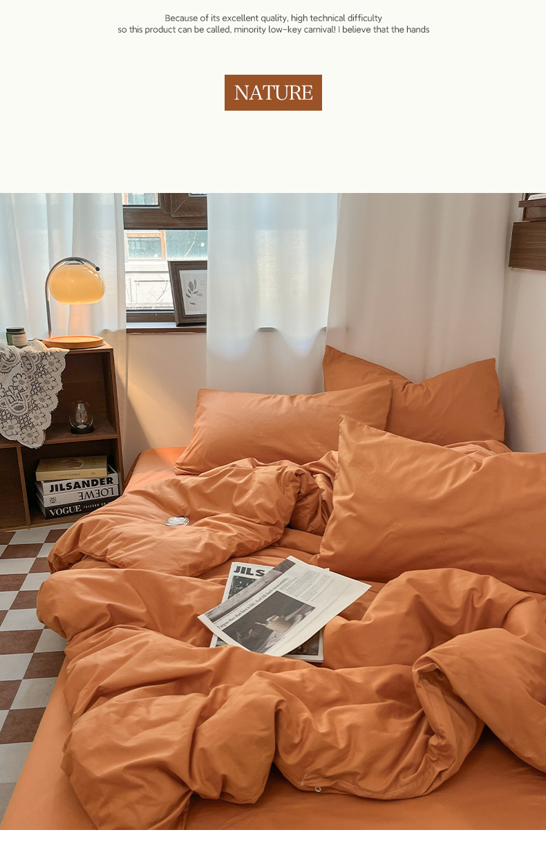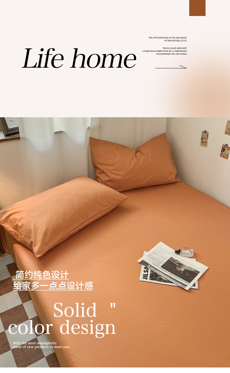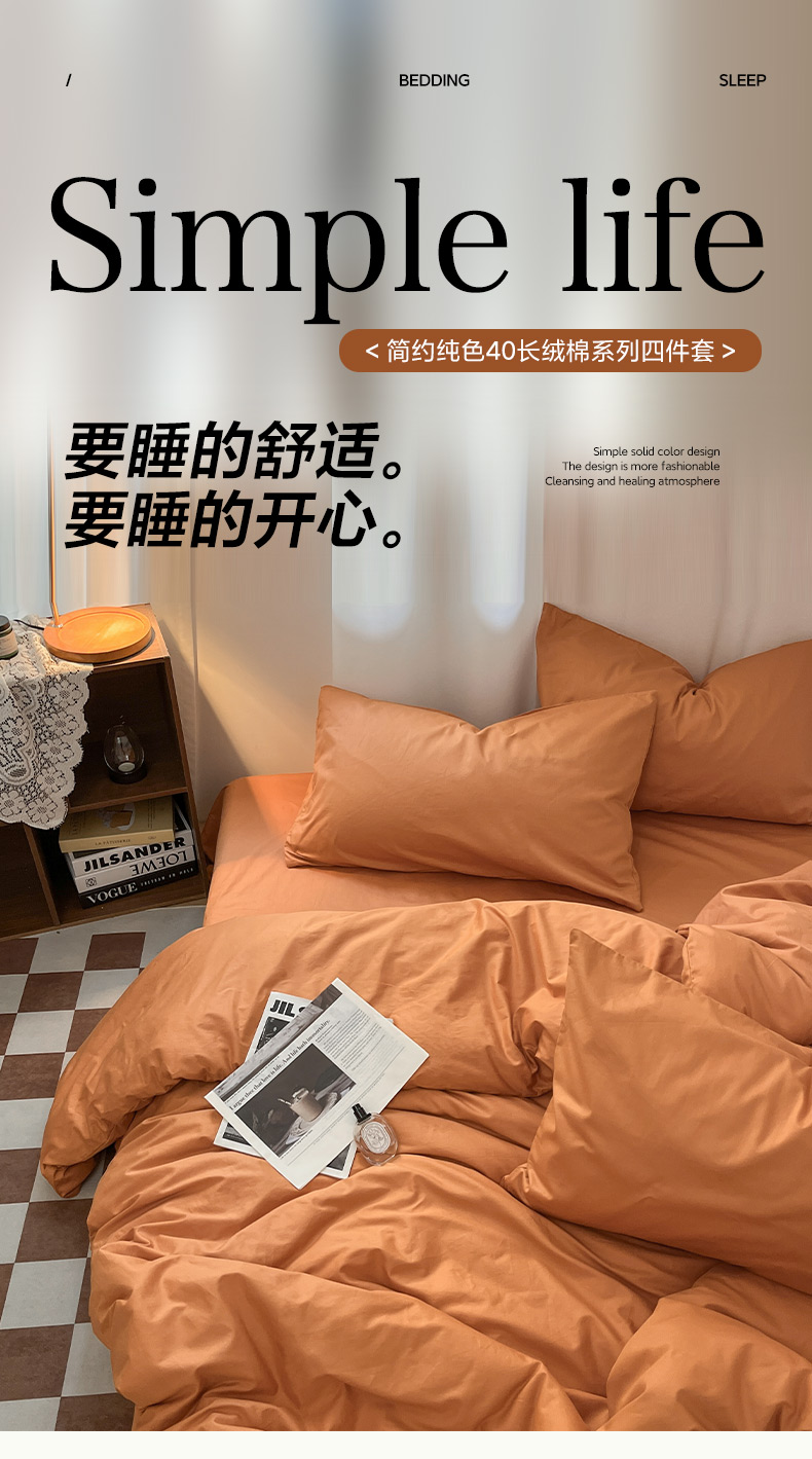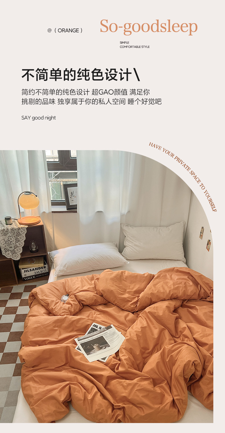 2025新款40支长绒棉ins美拉德色系纯色全棉四件套床笠极简三件套纯棉四件套系列--四件套 橘