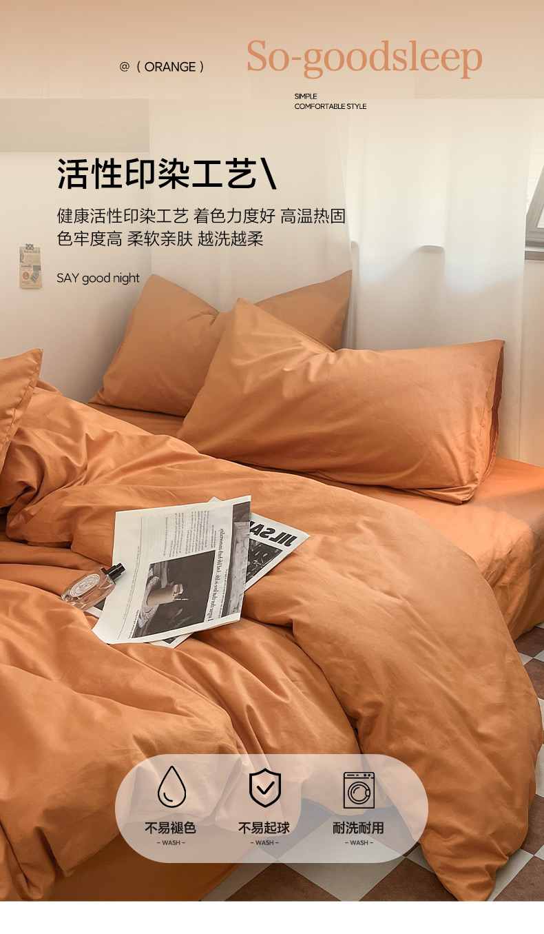 商品名称:2025新款40支长绒棉ins美拉德色系纯色全棉四件套床笠极简三件套纯棉四件套系列--四件套 橘