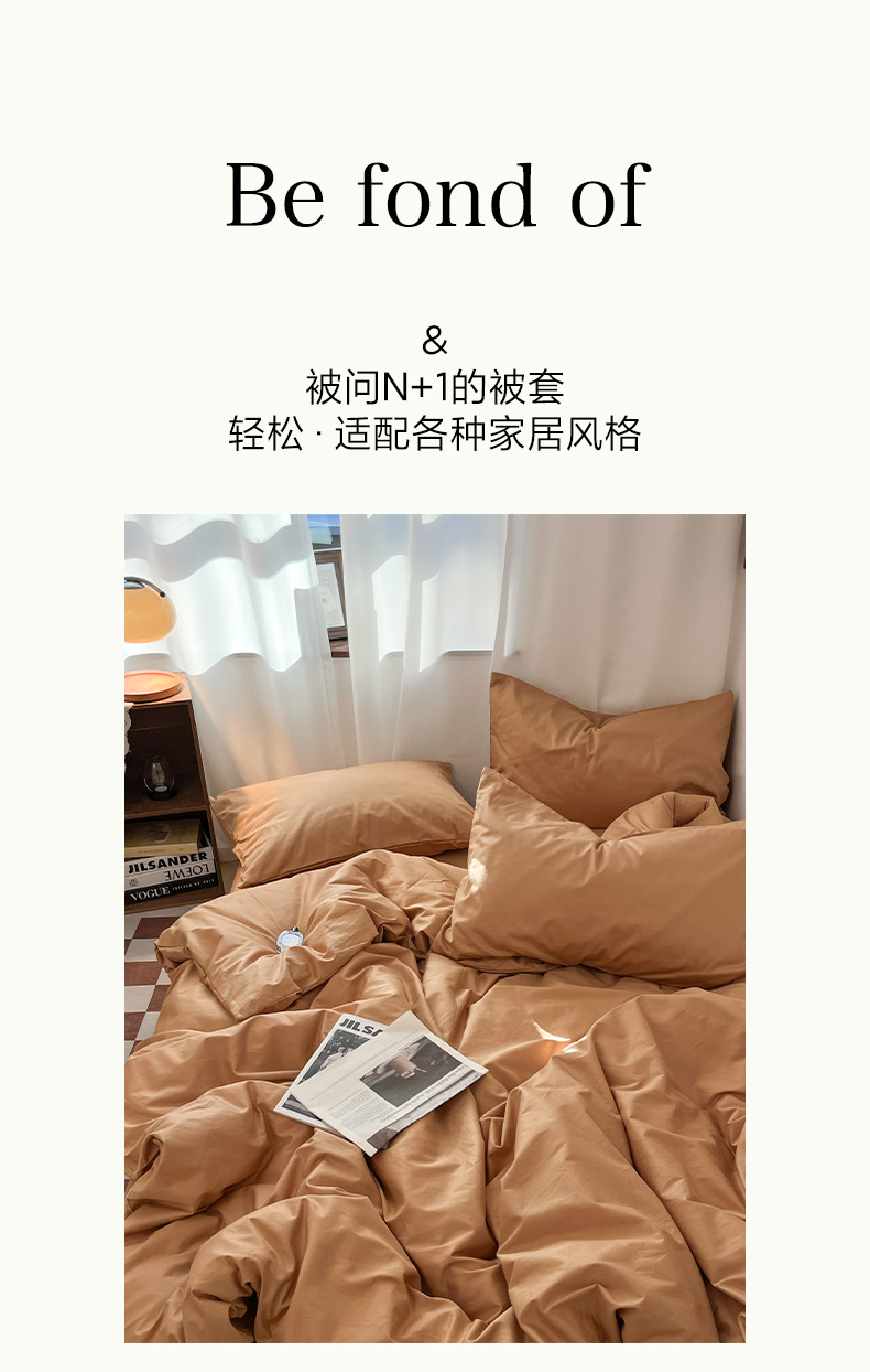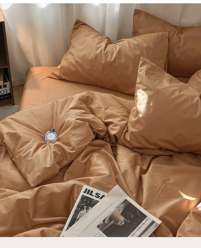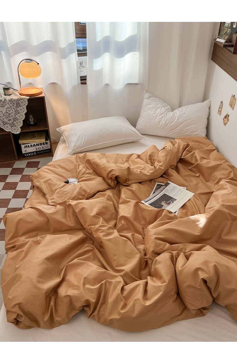 2025新款40长绒棉ins美拉德色系纯色全棉单品四件套床笠四件套系列--单被套 琥珀色
