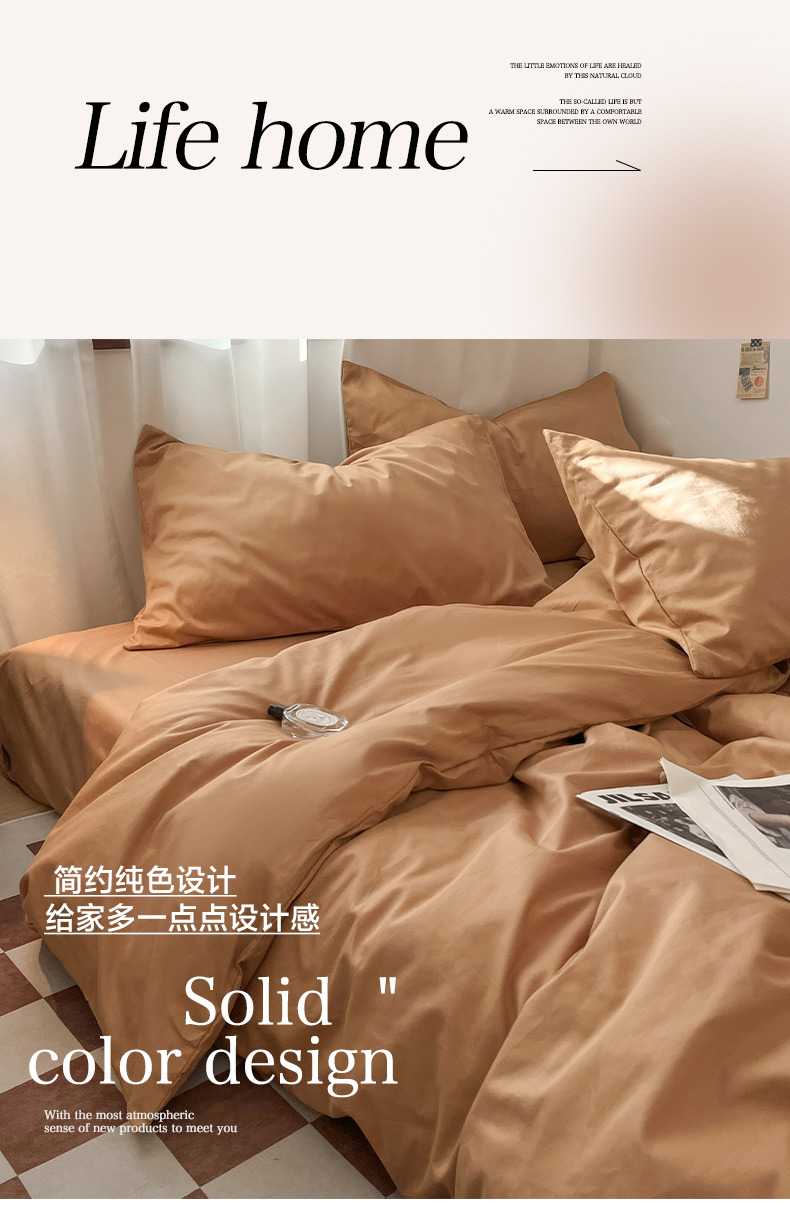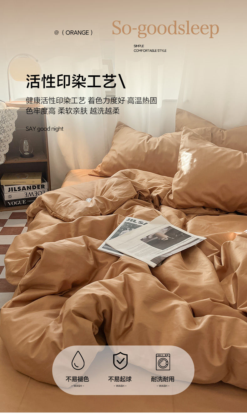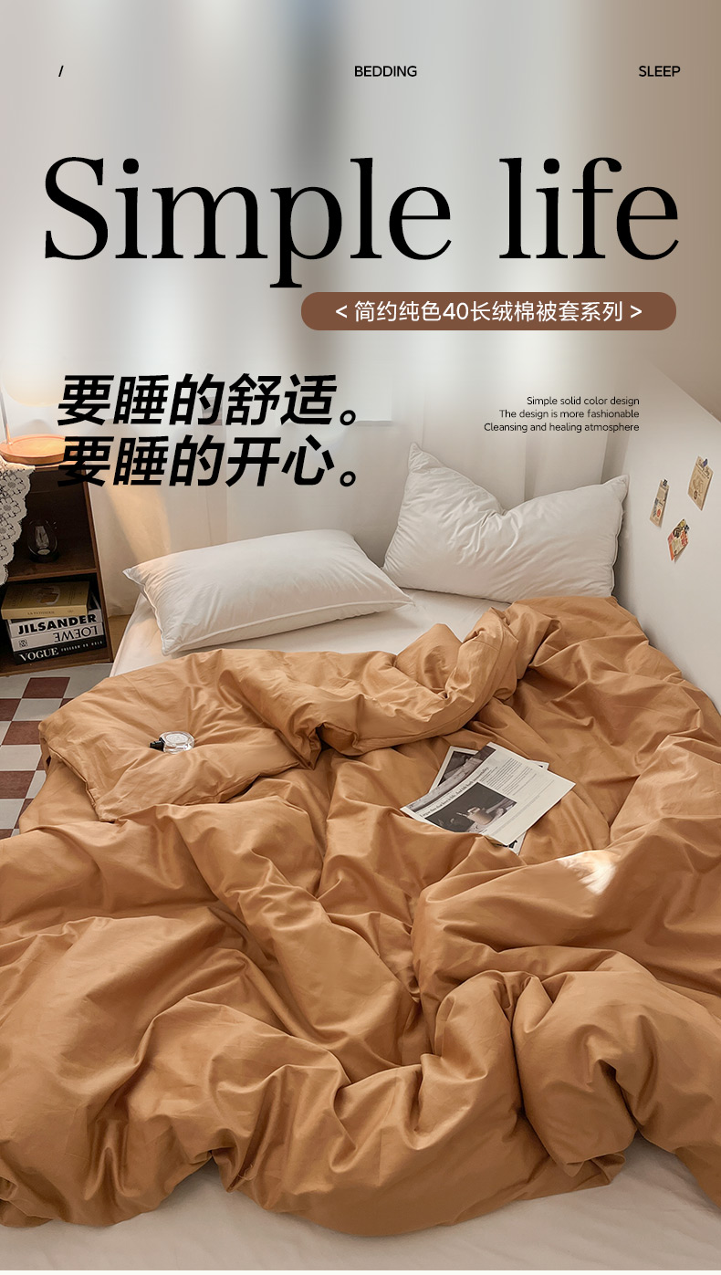 商品名称:2025新款40长绒棉ins美拉德色系纯色全棉单品四件套床笠四件套系列--单被套 琥珀色