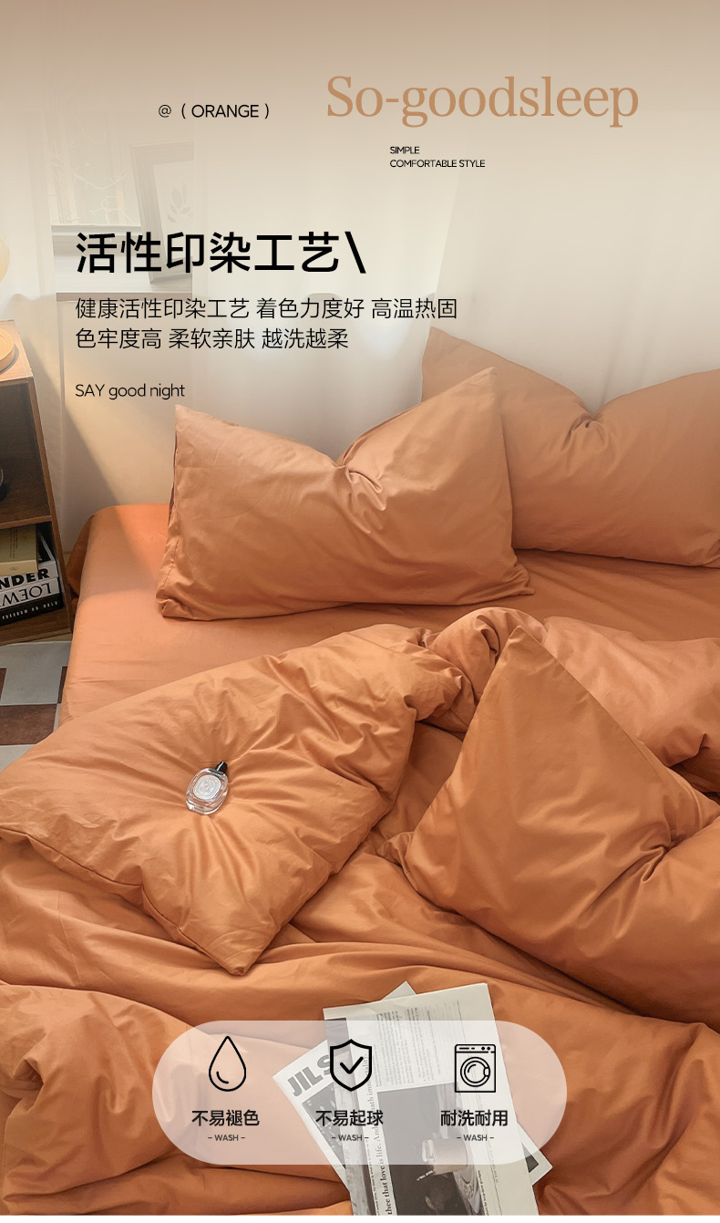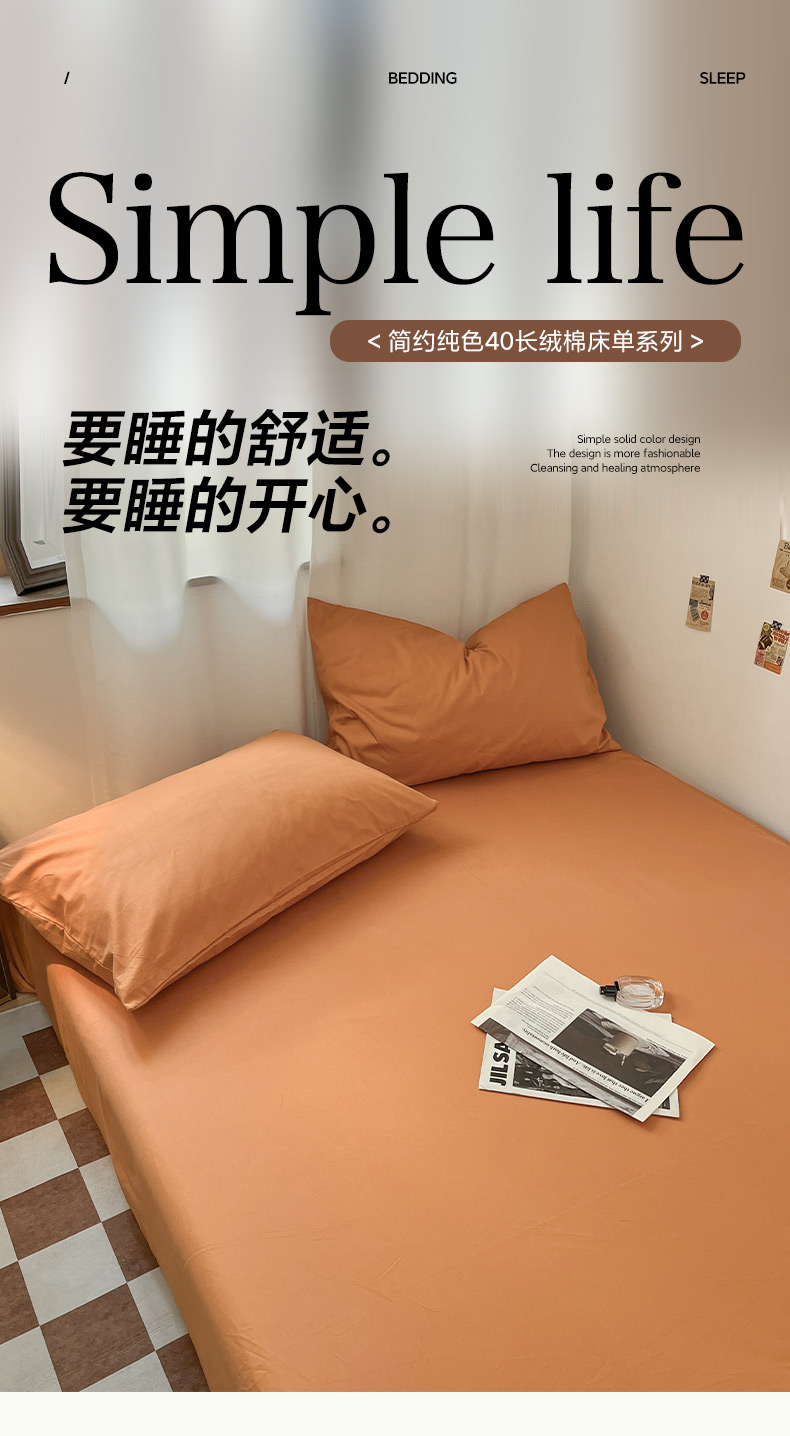 商品名称:2025新款40长绒棉ins美拉德色系纯色全棉单品四件套床笠四件套系列--单床单 橘