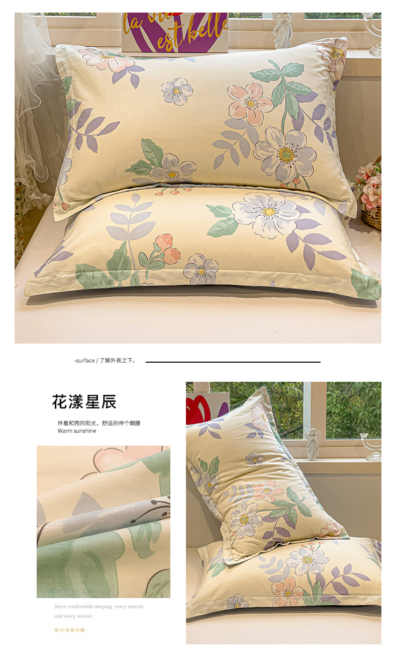 2025春夏新款全棉花卉系列印花单枕套 花漾星辰