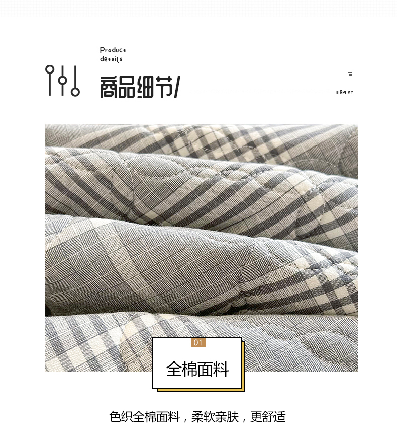 (总)糯米猪家纺 2023新款亲肤棉六面全包夹棉床笠--时尚格,水蓝,深蓝,灰色,白色,米色,粉玉