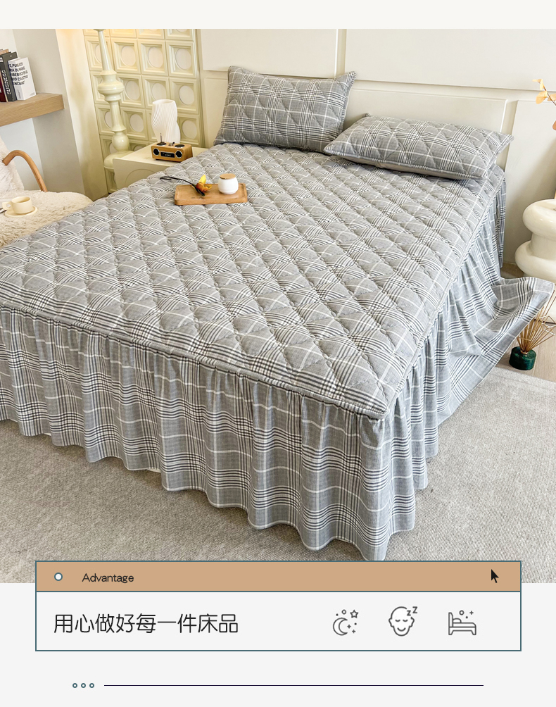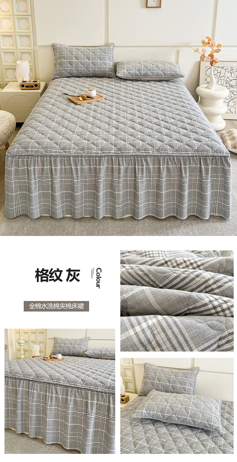 商品名称:糯米猪家纺 2025新款全棉色织水洗棉床裙 格纹 灰