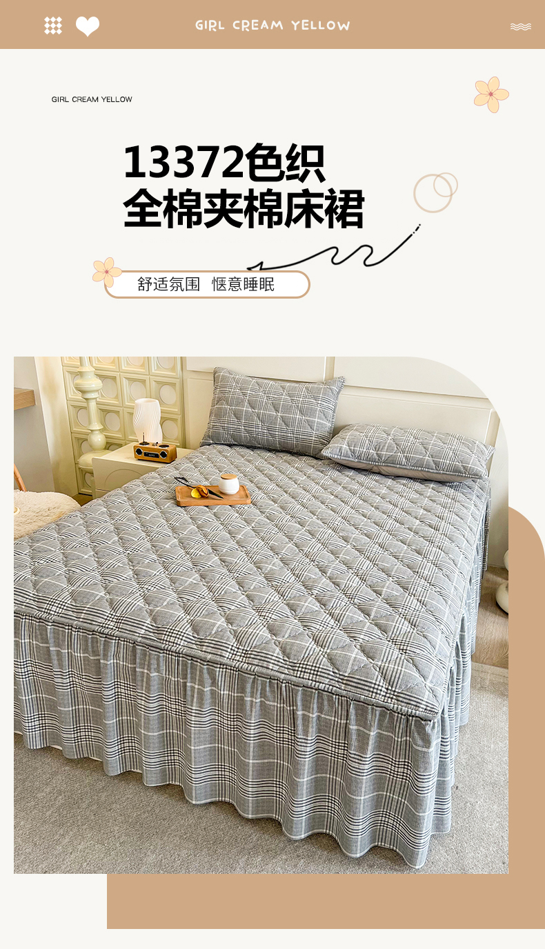 (总)糯米猪家纺 2025新款全棉色织水洗棉床裙,格纹 灰,简兮 兰,兰黄大格,晴空 灰,时尚 灰,雅致 兰