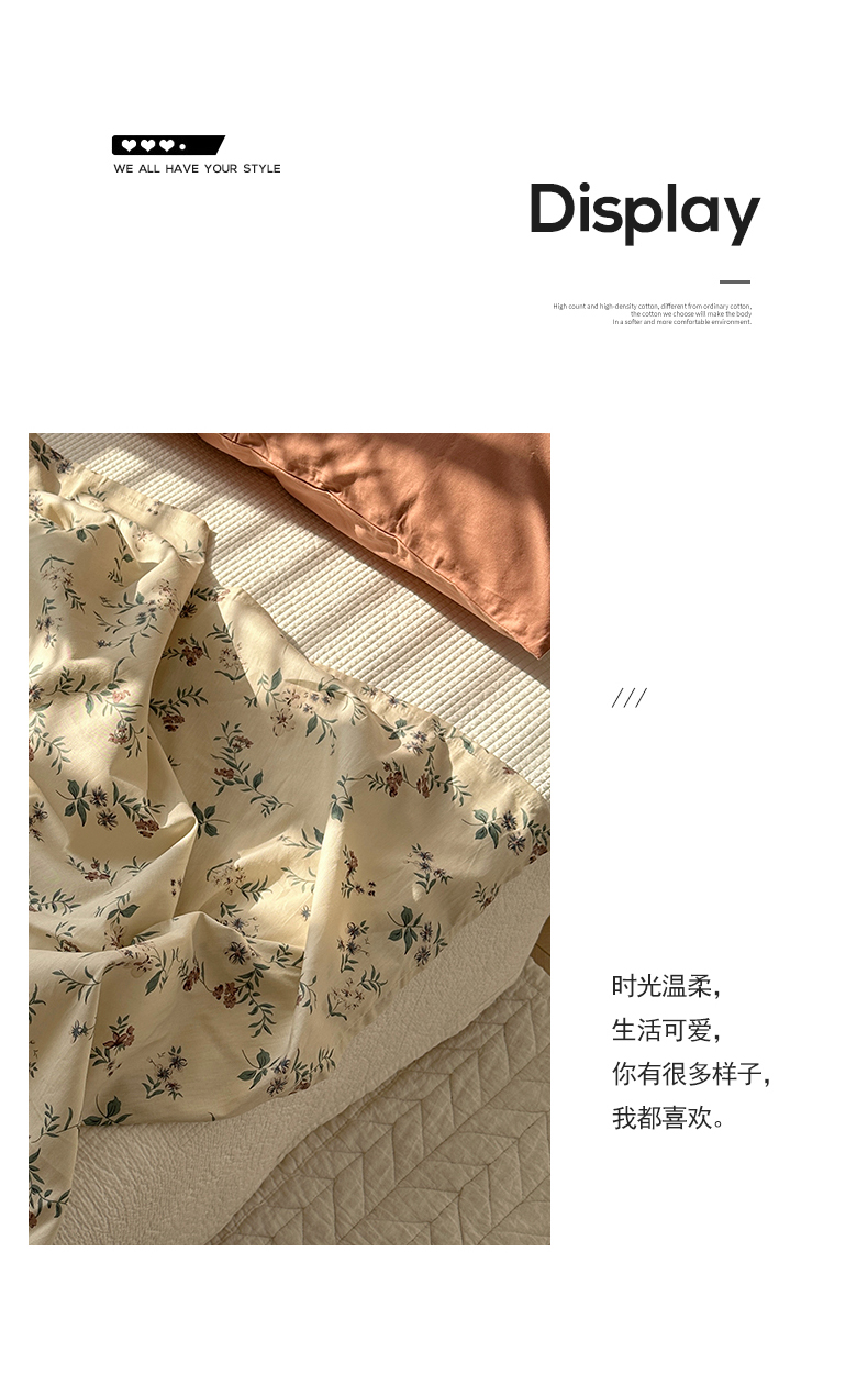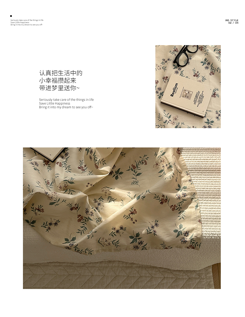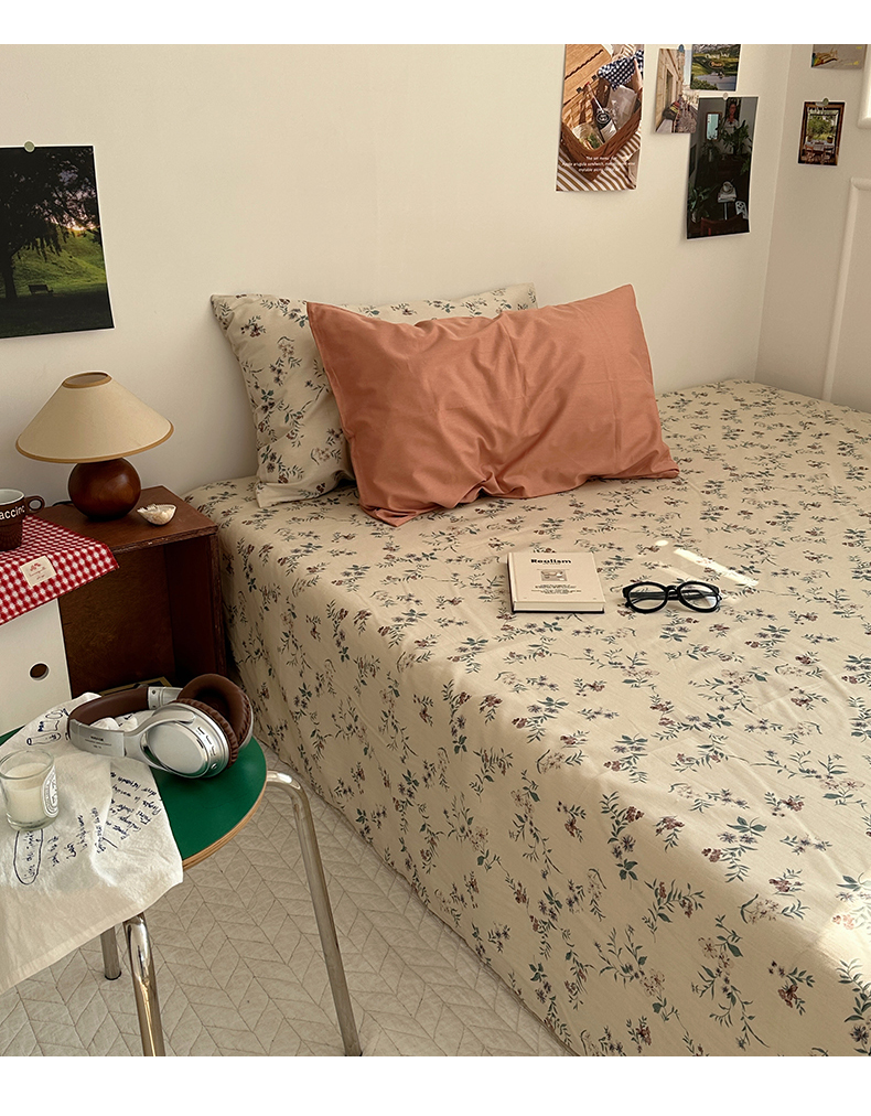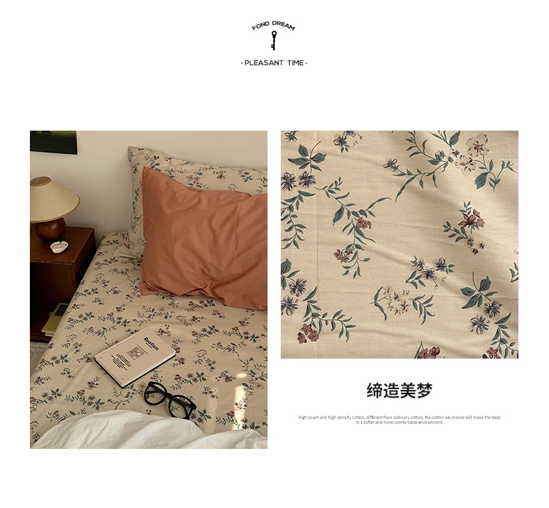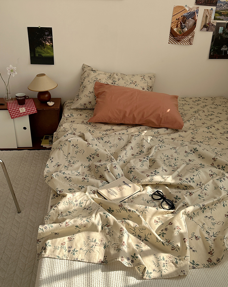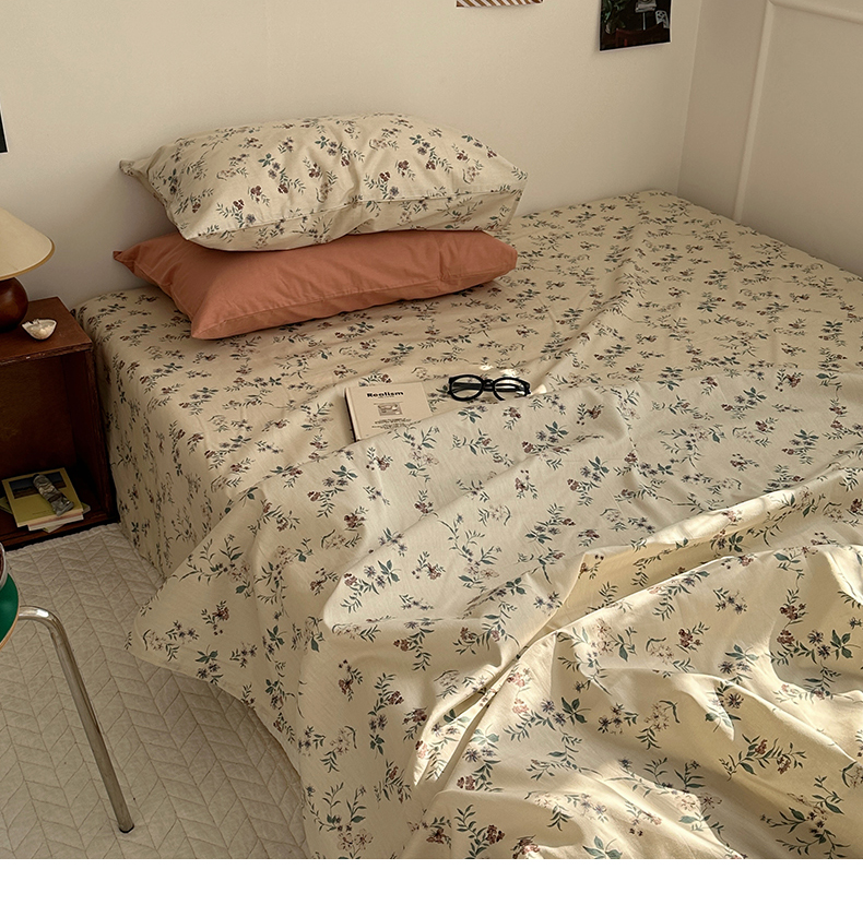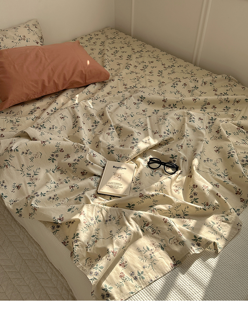 (总)尺素 2026田园小清新纯棉四件套出口韩国ins博主风全棉被套纯色加大床单1.8床笠印花枕套学生宿舍三件套,春不晚 桃粉,花似锦 奶白,紫鸢千夏紫