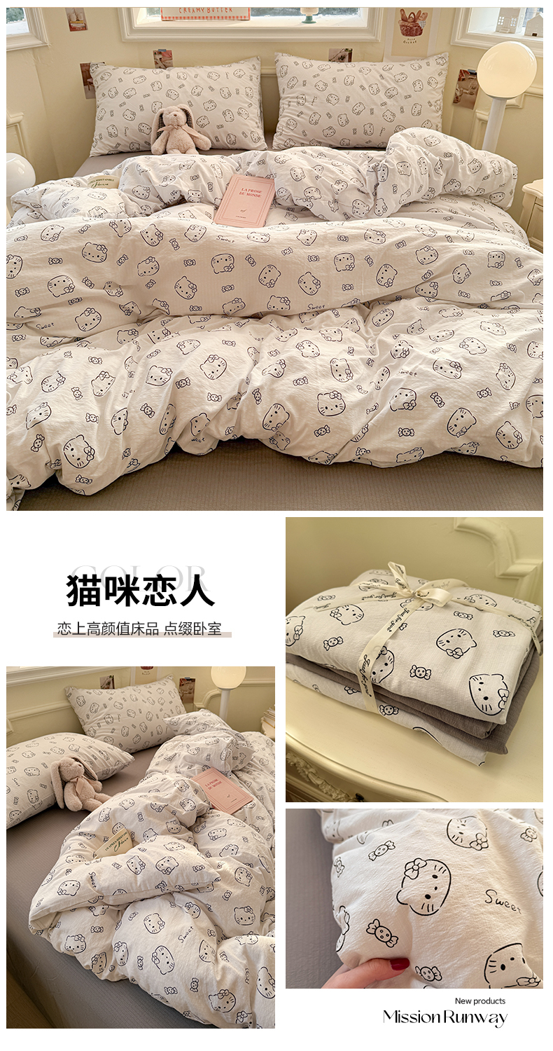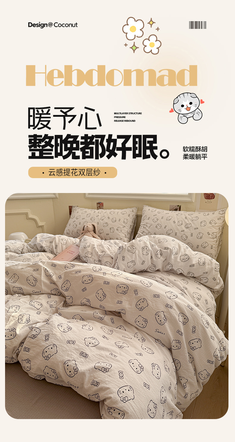 当前位置: 91家纺网 > 商品网购 > 床品套件 > 四件套 > 双层纱四件套 > 罗亿家纺 2025新款云感提花双层纱裸睡四件套 猫咪恋人