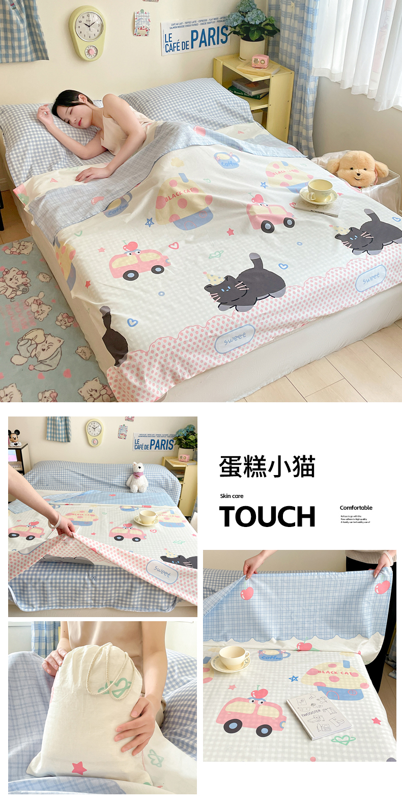 商品名称:Sweet dreams甜梦 2025新款全棉小清新卡通一体式旅行酒店睡袋 蛋糕猫猫