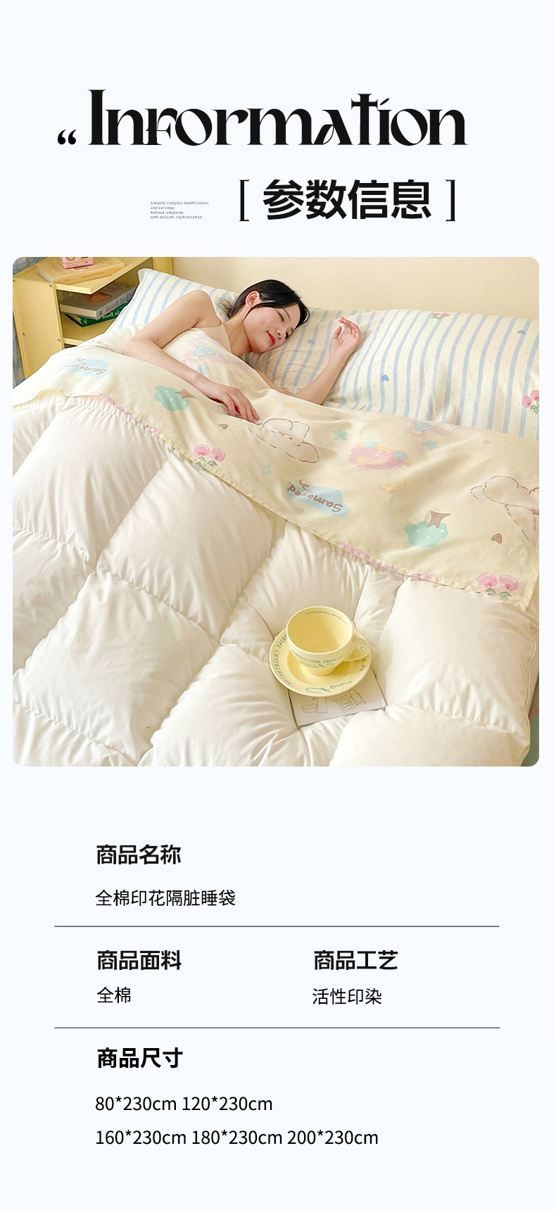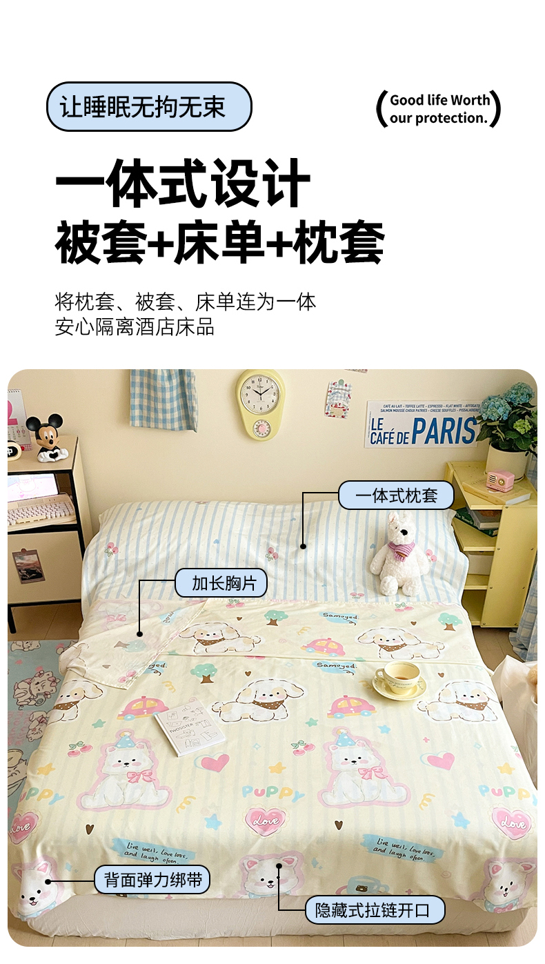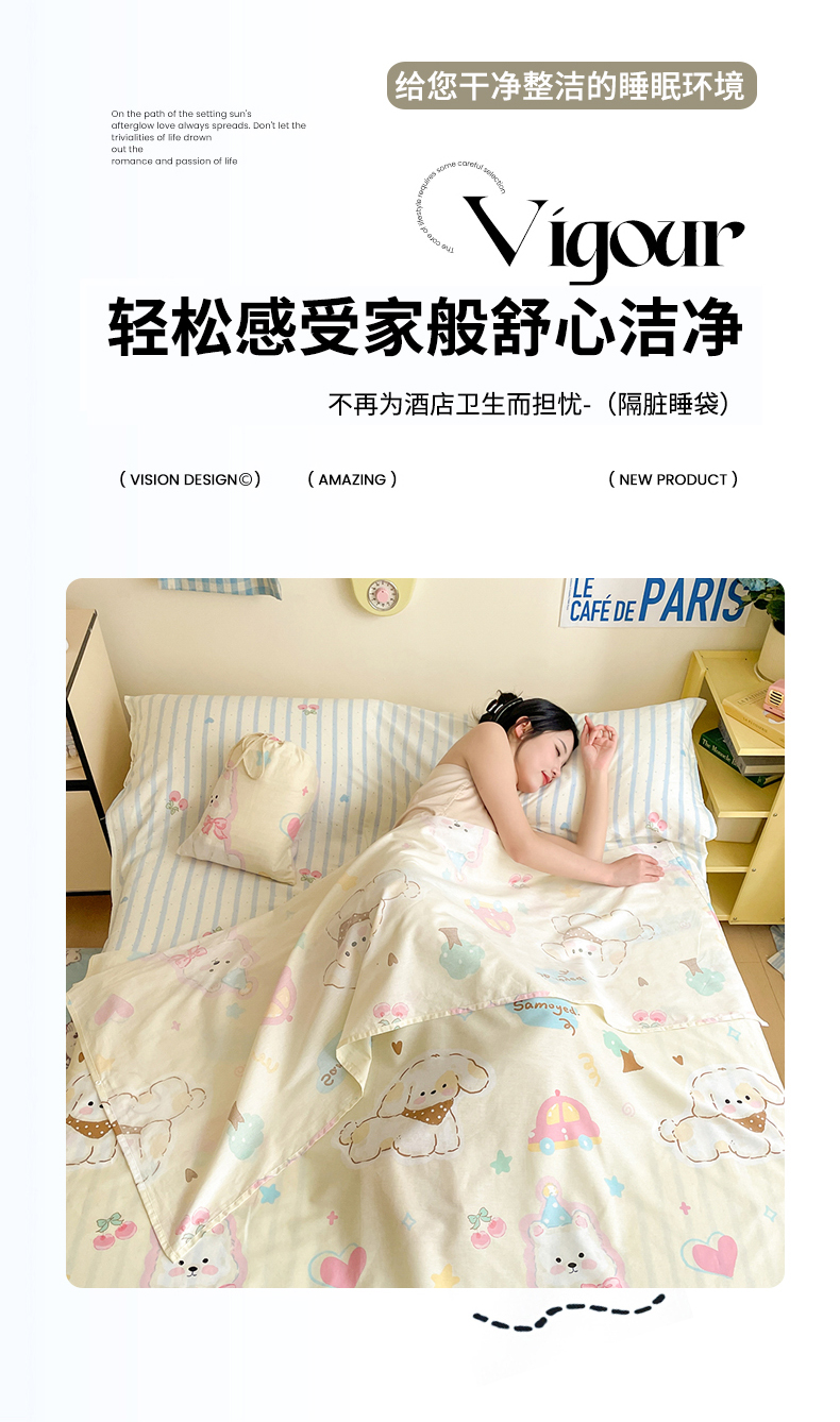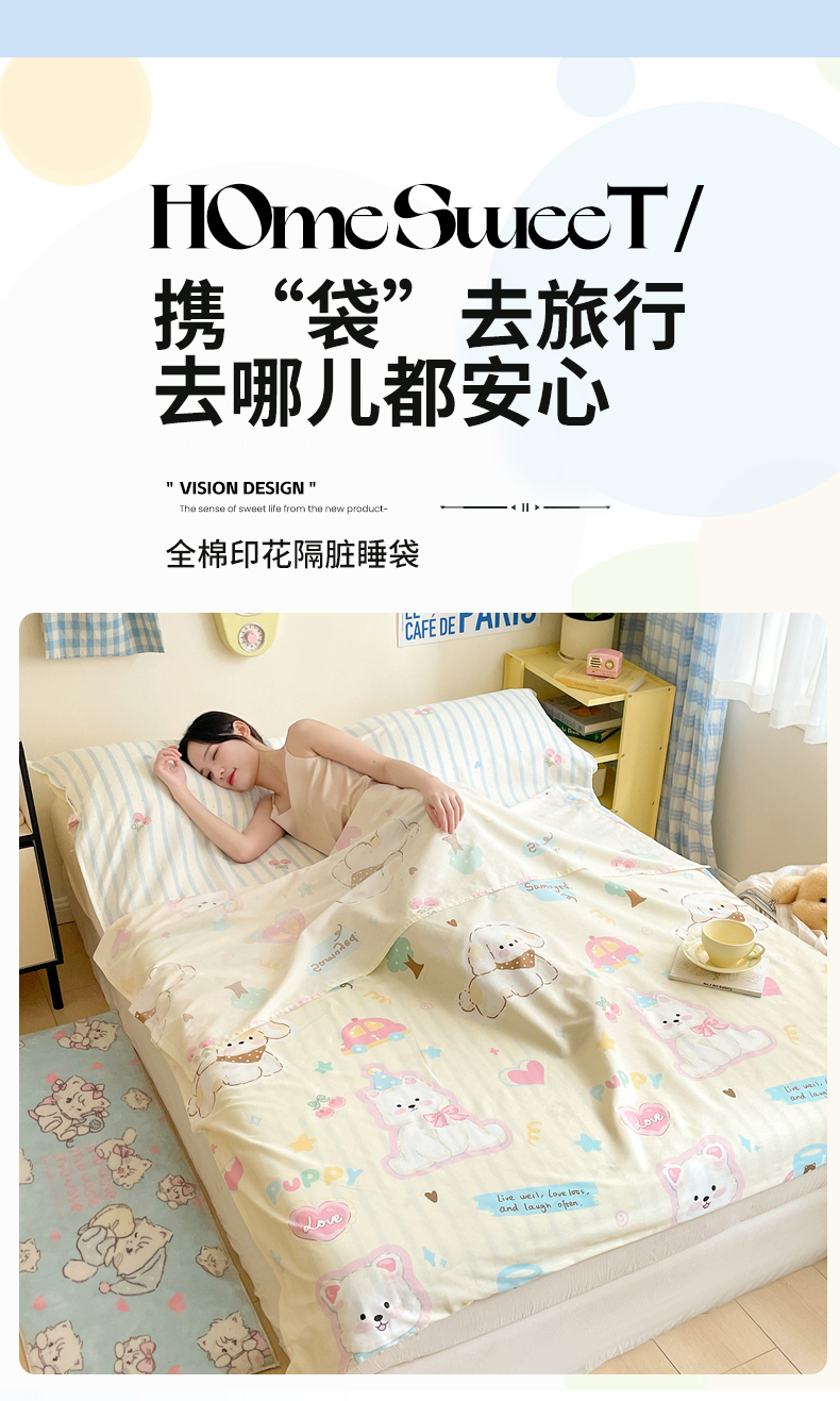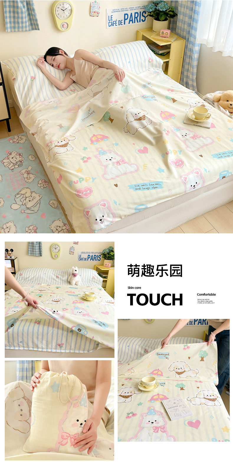 商品名称:Sweet dreams甜梦 2025新款全棉小清新卡通一体式旅行酒店睡袋 萌趣乐园