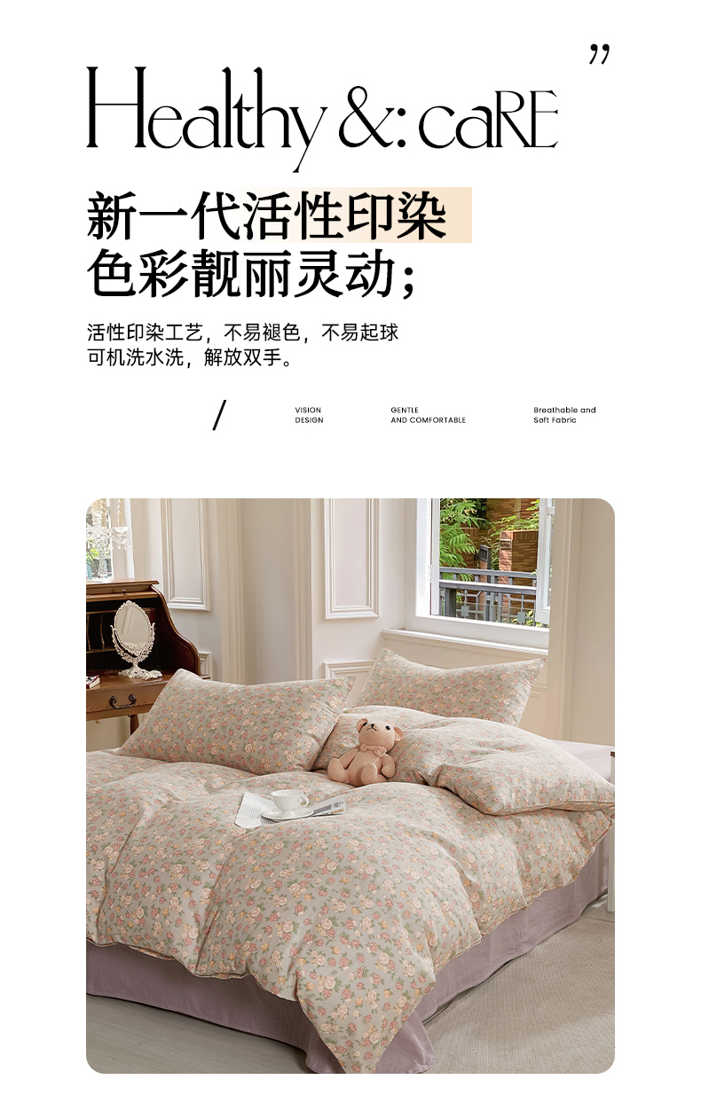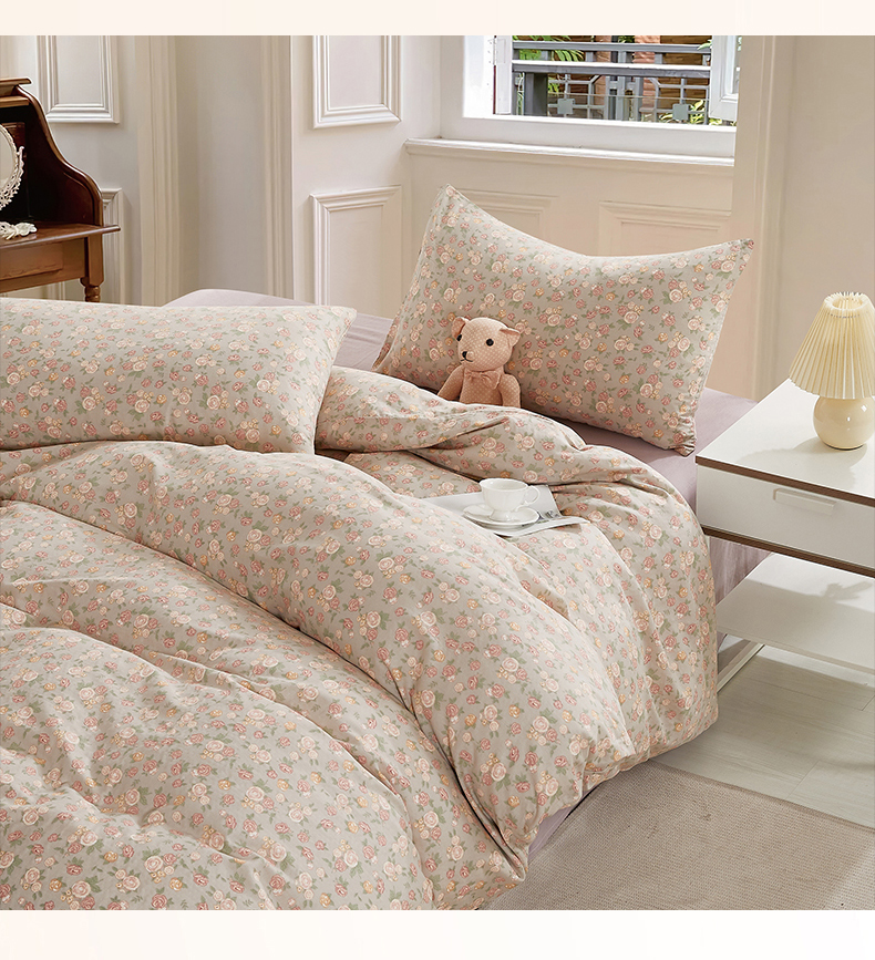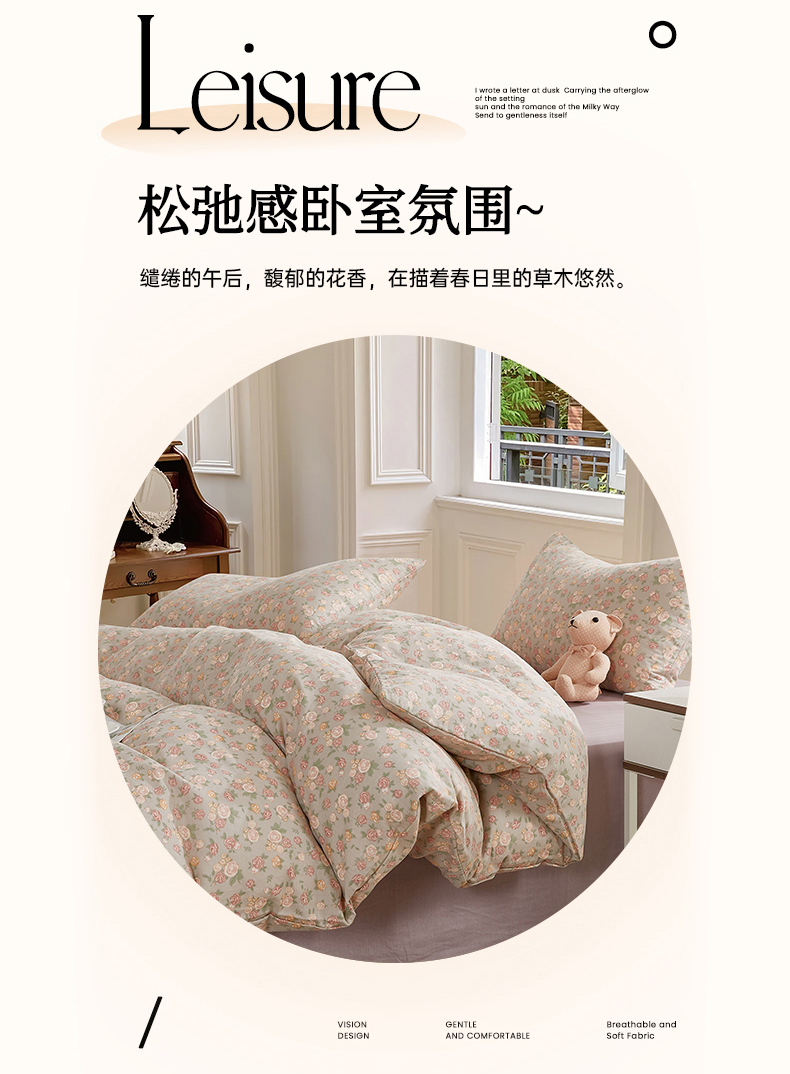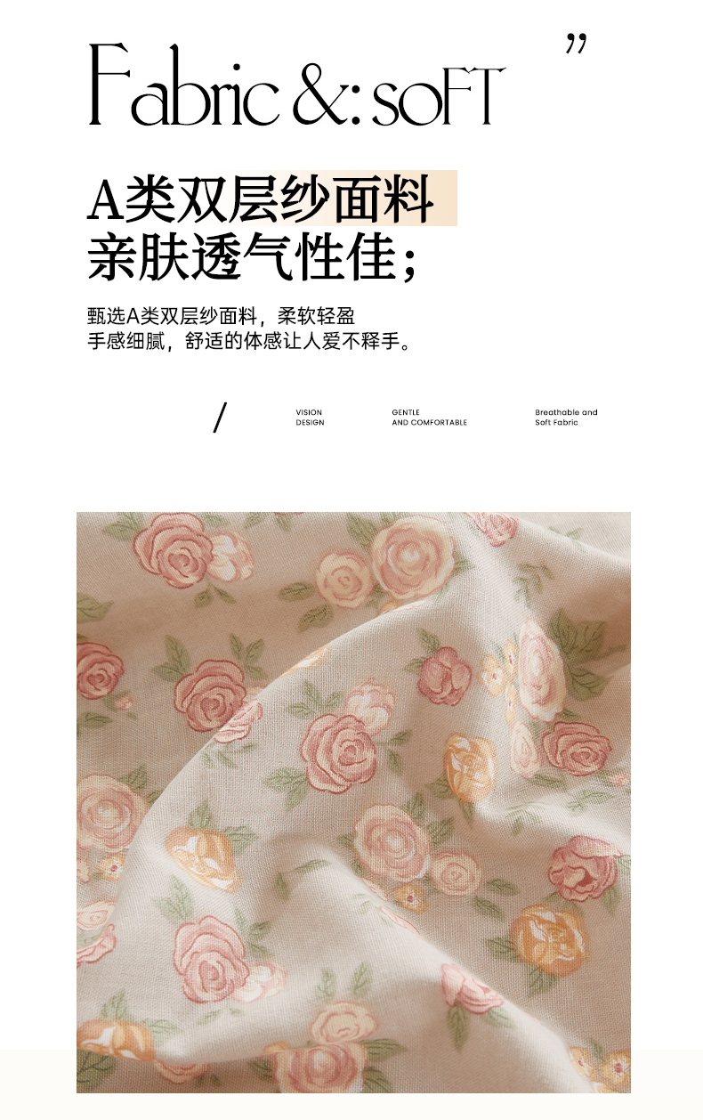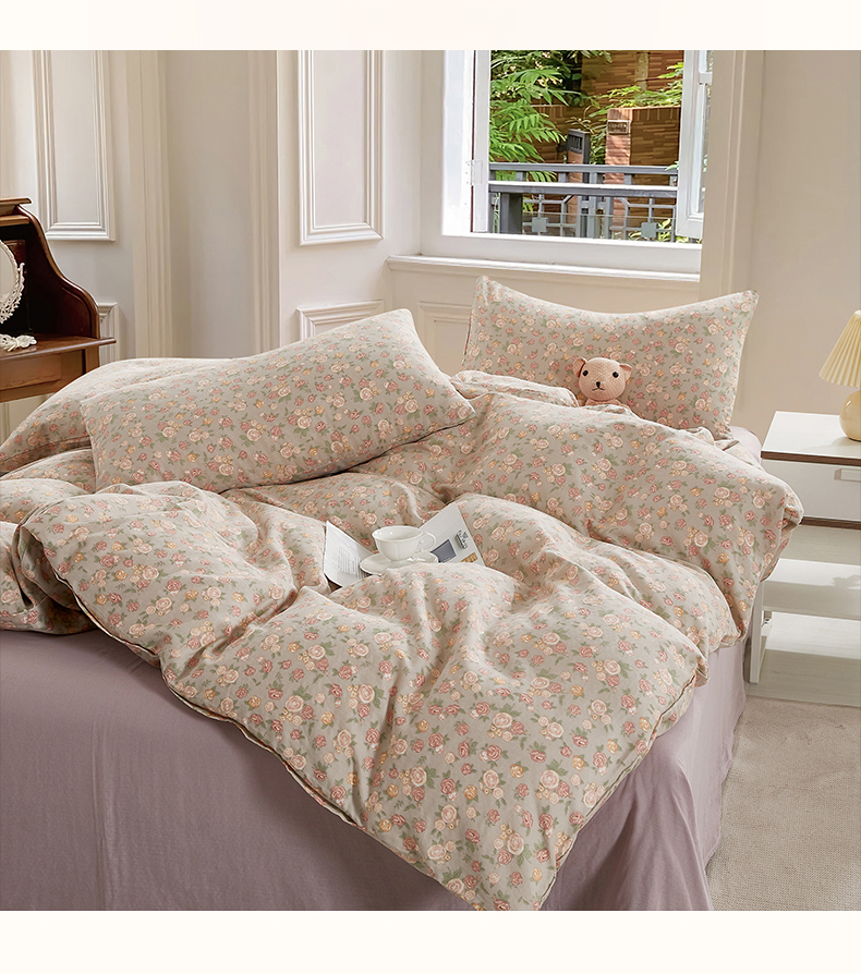 棉小二 2025新款双层纱印花系列四件套 朝花-米咖