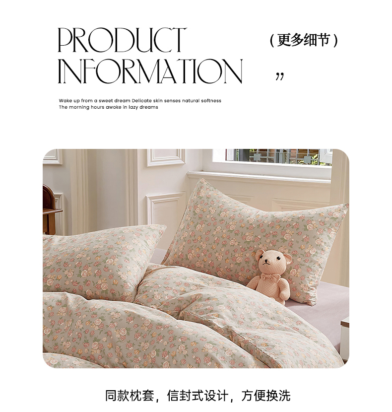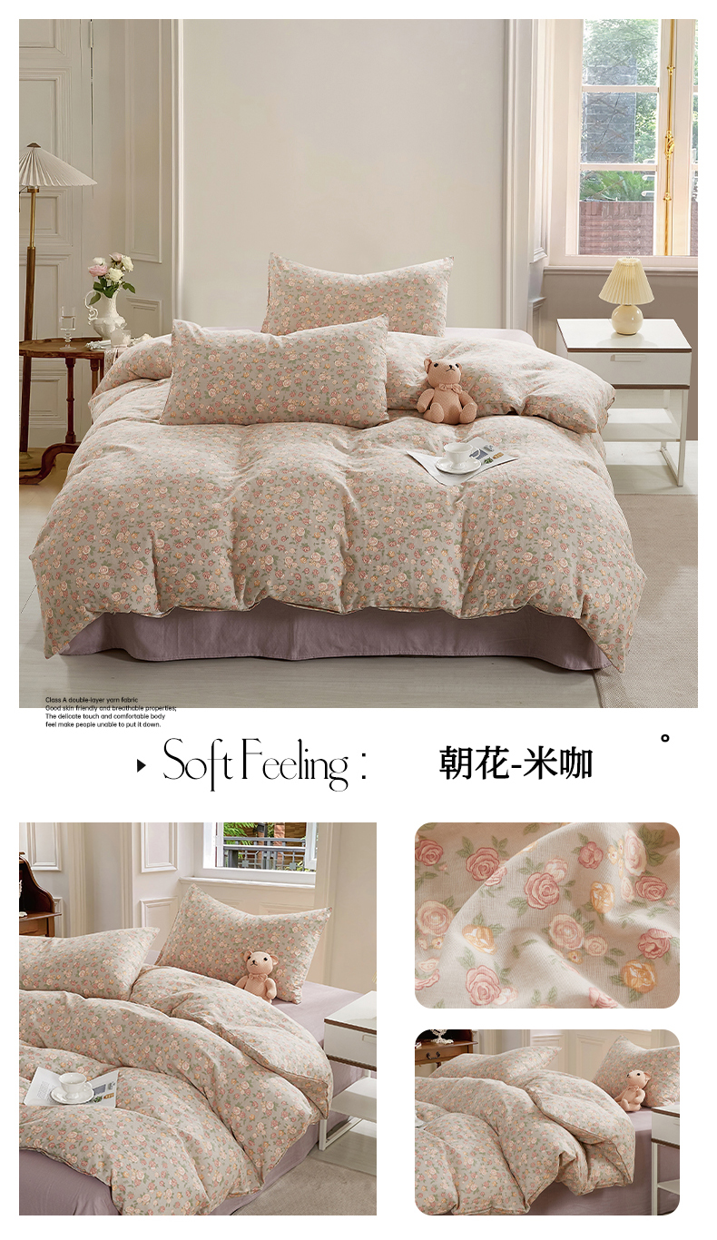 商品名称:棉小二 2025新款双层纱印花系列四件套 朝花-米咖